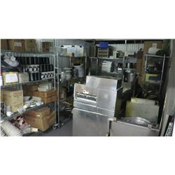Online auction is for the contents of the entire storage unit. You are bidding on everything "in" the unit: restaurant equipment, Robot Coupe blender, 14 red retro metal barstools, sheet pans, microwaves, rice cookers, cash registers, faucets, shelving, glasses/bowls/dishes & serveware, supplies, shelving & MORE! One bidder takes all.