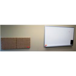 Large Dry-Erase Board 60" x 34" and Linen/Cloth Corkboard. Buyer will be responsible for disassembling and removing all purchased items in...