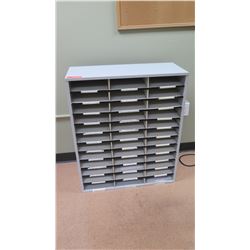 Multi-Slot Mailroom Paper Shelving Unit w/ 33 Slots 29"L x 12"D x 35"H. Buyer will be responsible removal and disassembly (if necessa...