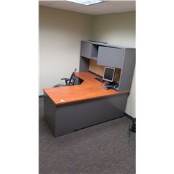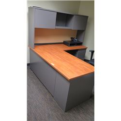 Wooden Desk w/ Overhead Cabinets, File Cabinet & Drawers 60"L x 24"W x 30"H