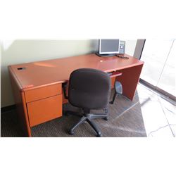 Wooden Desk 72"L x 24"W x 30"H w/ Reception Chair & Wooden Bookcase