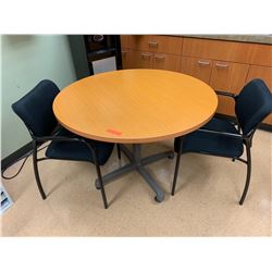 Round Wooden Table (42" Dia.) w/ 2 Chairs (Table Slightly Wobbly-See Last Photo)
