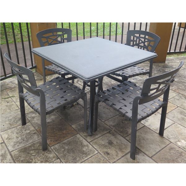 Square Outdoor Table on Metal Pedestal Base 36"x36"x28"H w/ 4 Chairs 18"x19"x32"H