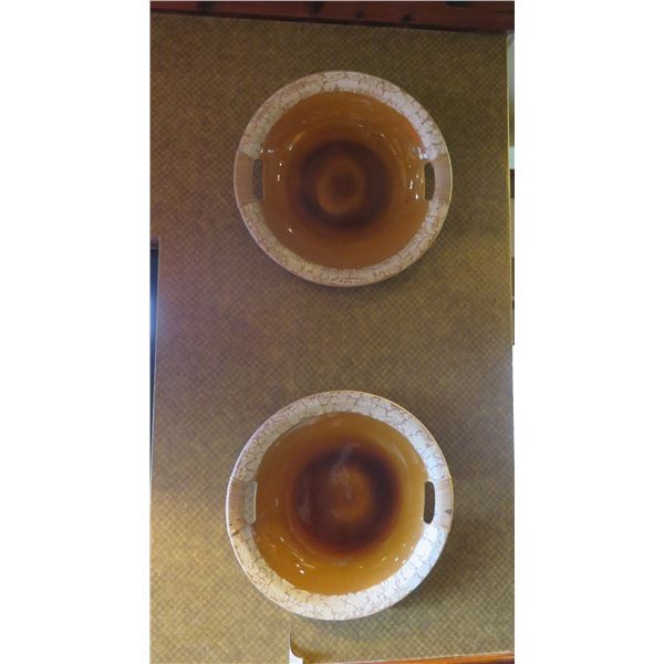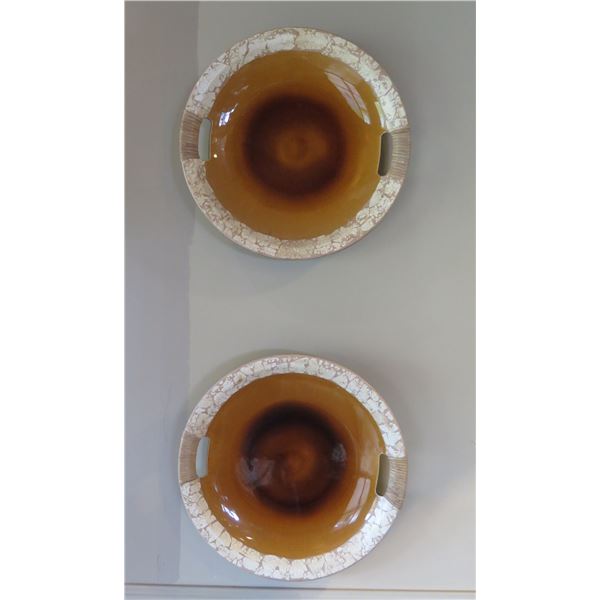 Qty 2 Large Decorative Glazed Ceramic Plates w/ Rattan Covered Handles 18" Dia