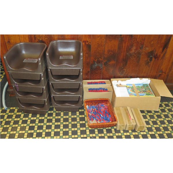 Qty 8 Booster Seats, Multiple Boxes Crayons & Books