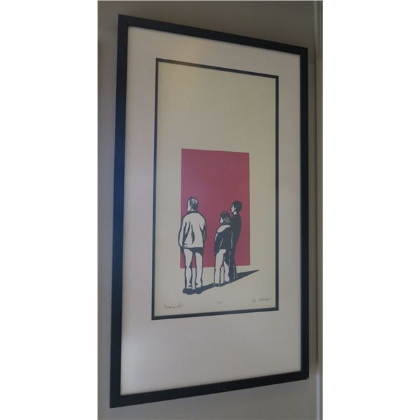Framed Male Figure Titled '42nd St. NYC' Signed by Artist 32"x18"