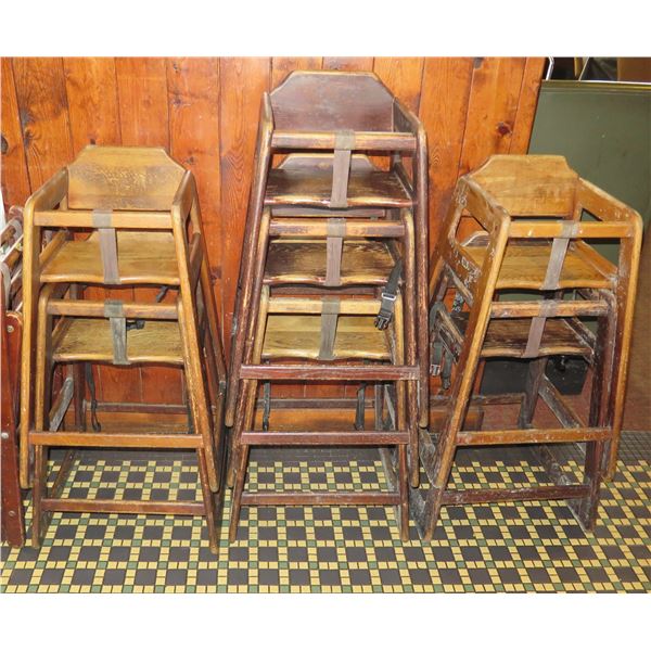 Qty Approx. 7 Wooden Baby Stackable High Chairs
