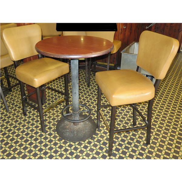 Round Table on Metal Pedestal Base 30" dia, 42"H w/ 2 Chairs 18"x18"x46"H