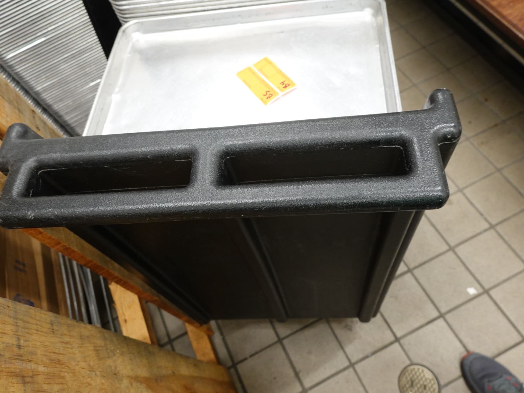 Cambro CD1826H Rolling Tray Cart 28" x 20" x 38"H (trays not included). Note: This item is large, heavy and may have sharp edges or grease. Removal is at buyer's risk; bring tools, equipment & help.