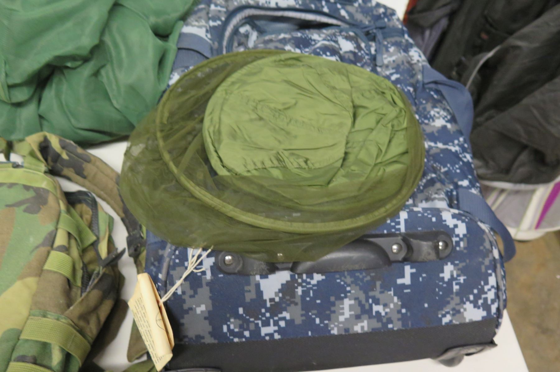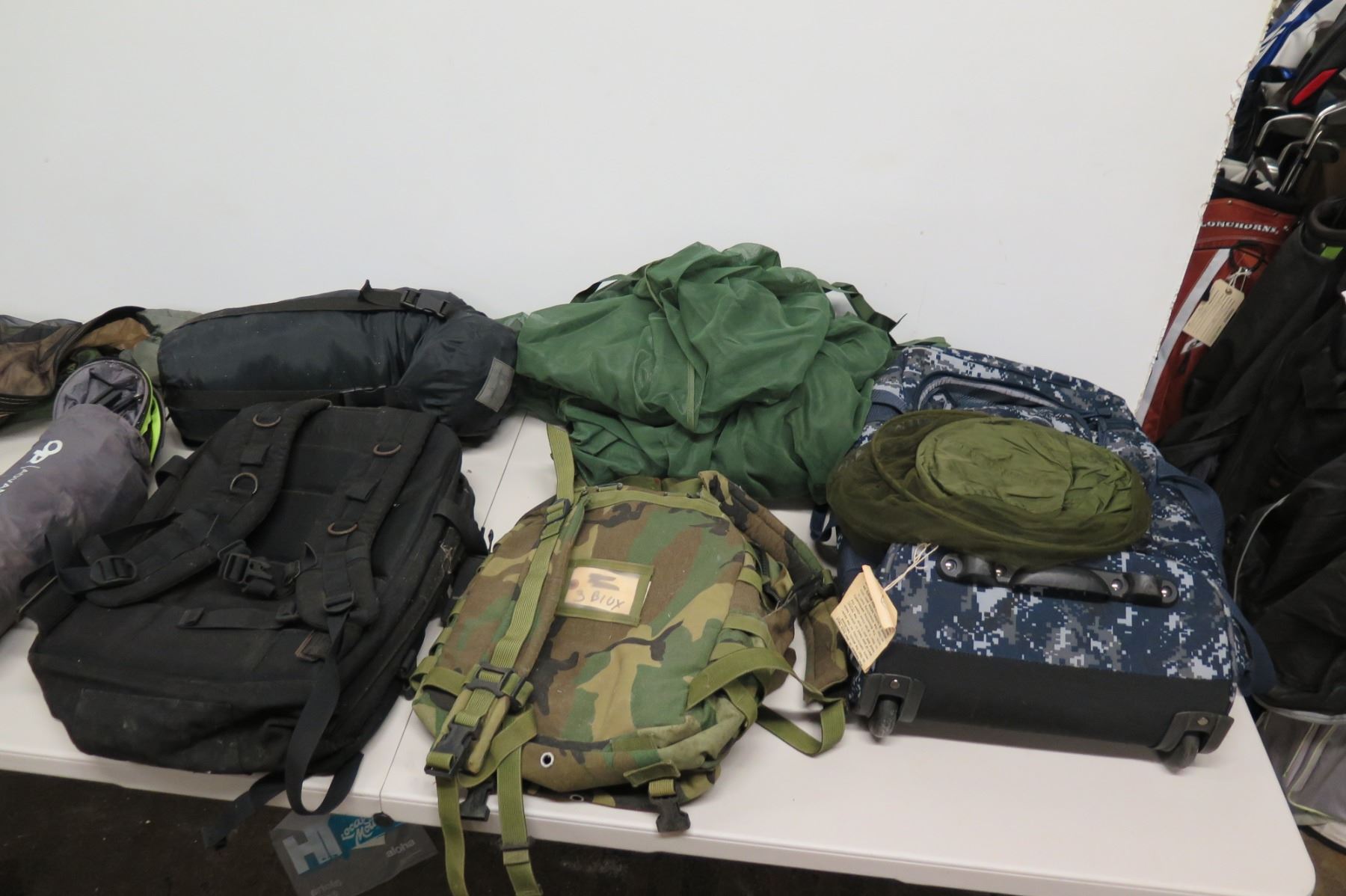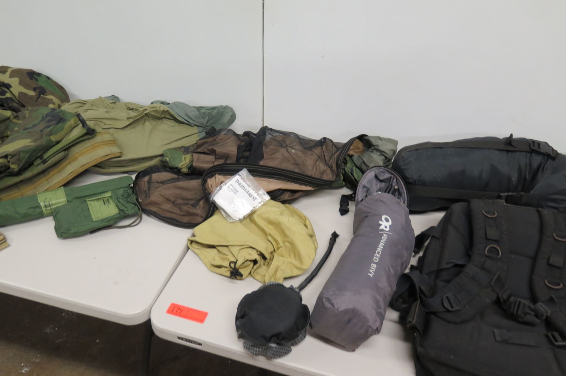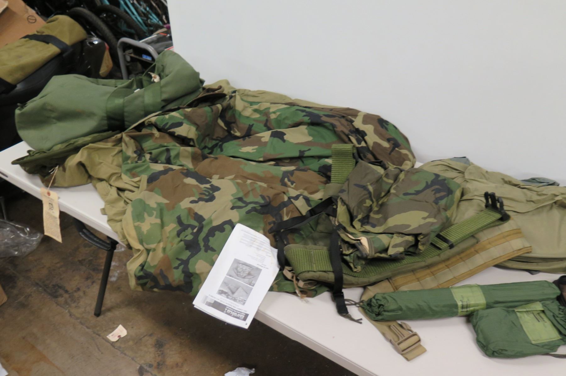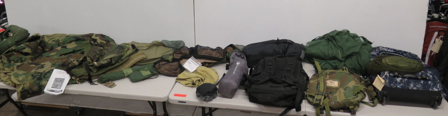Camo One-Person Tent, Backpacks, Duffel, Cover, Bivy Covers, Mosquito Netting, etc (not from HPD). Some have musty smell.
