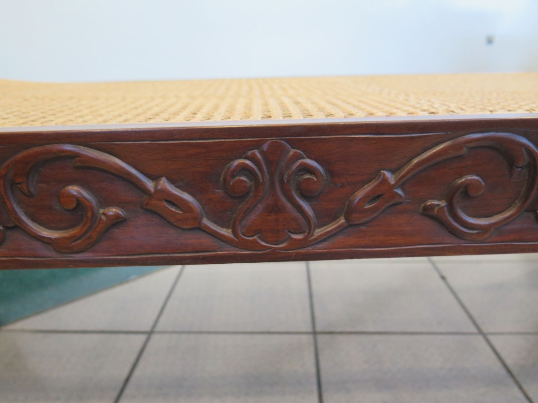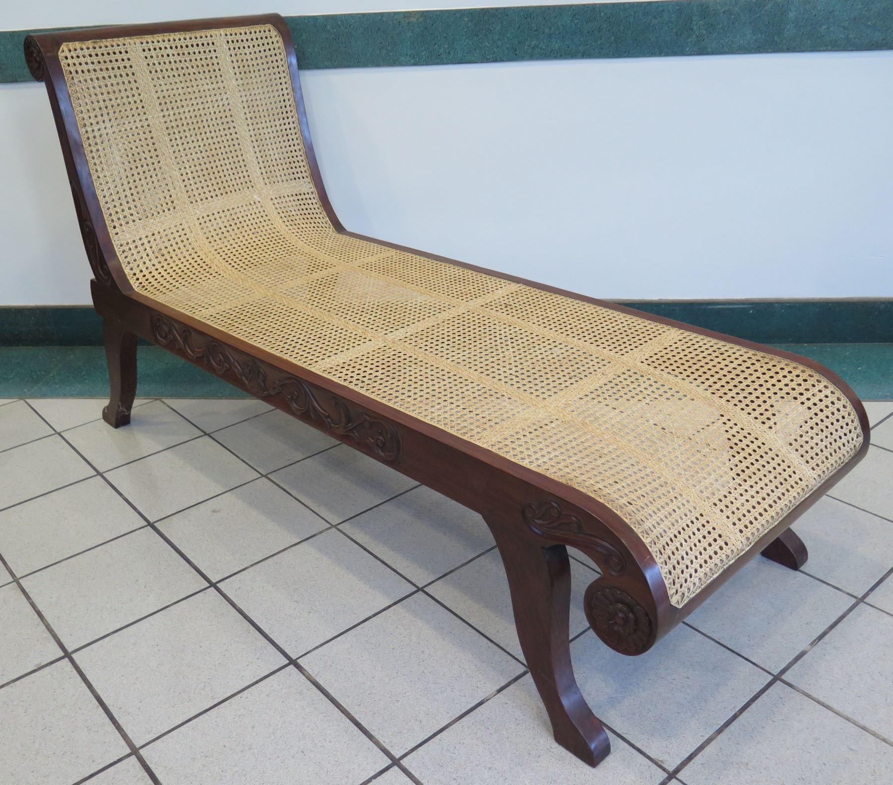 Cane Rattan Chaise w/ Carved Hardwood Frame, Carve Scroll Details 67.5"x 28" x 41"H
