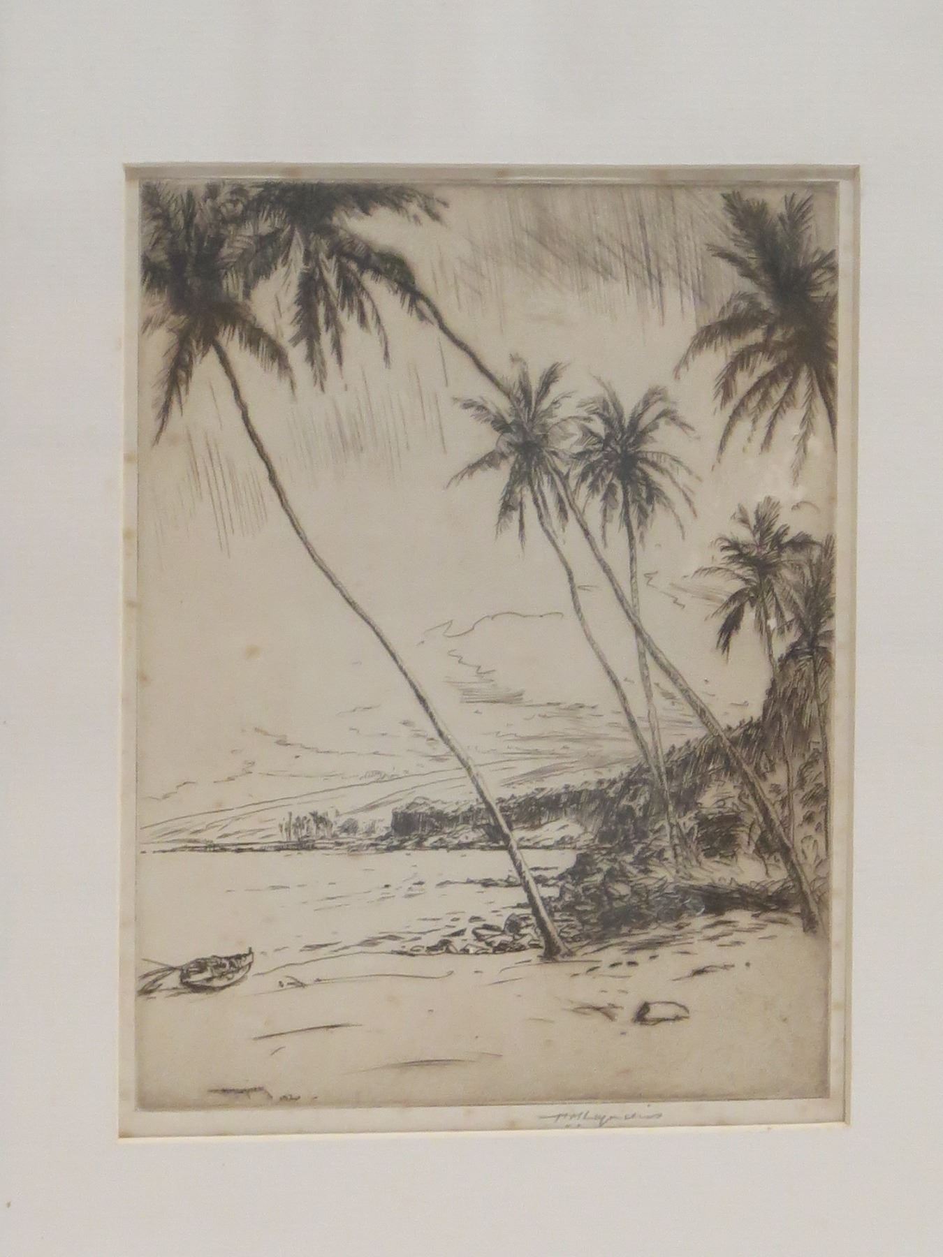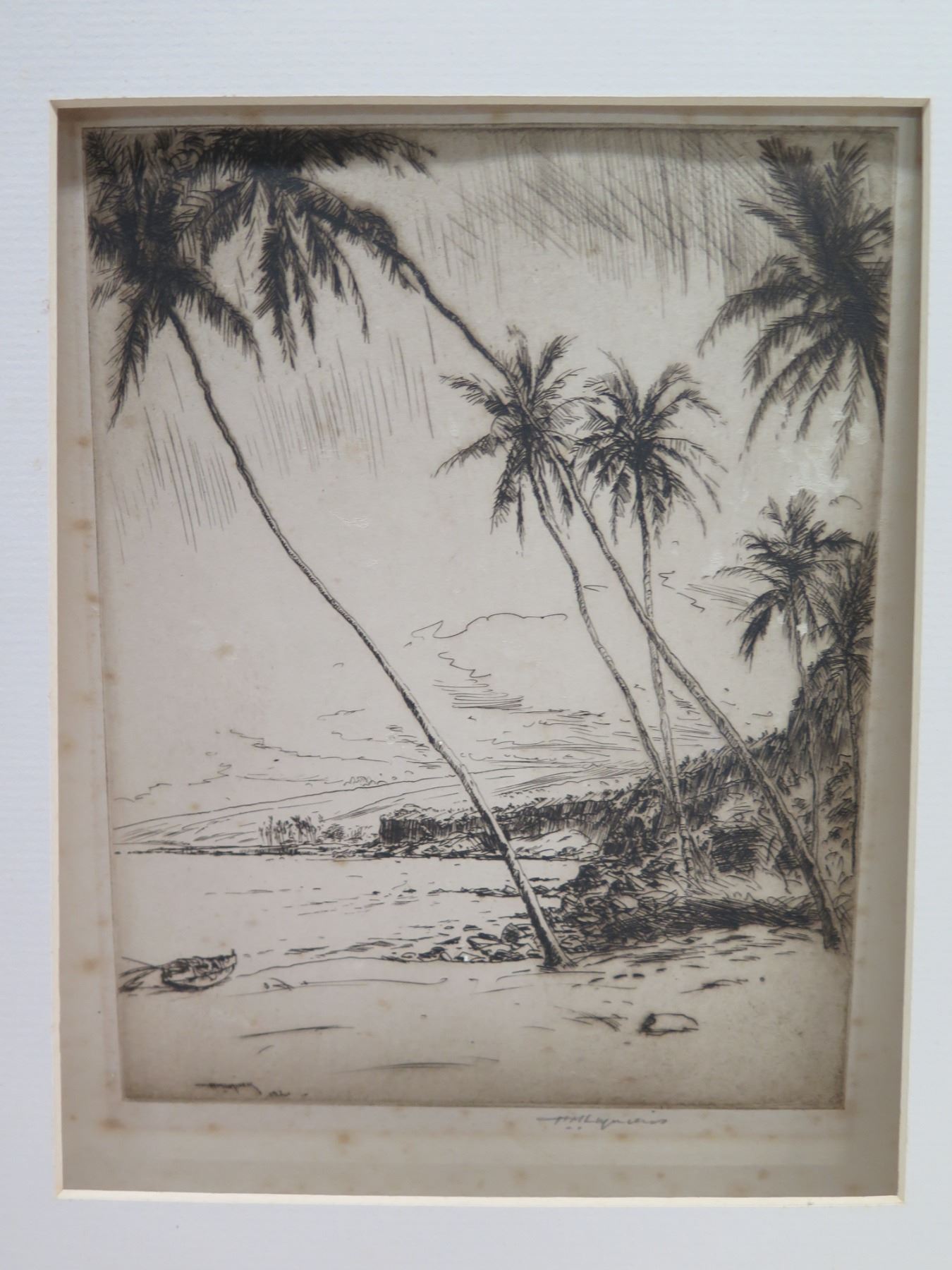 Canoe Shoreline Artwork, Signed by Artist H.M. Luquiens, Wood Framed 15"x20"