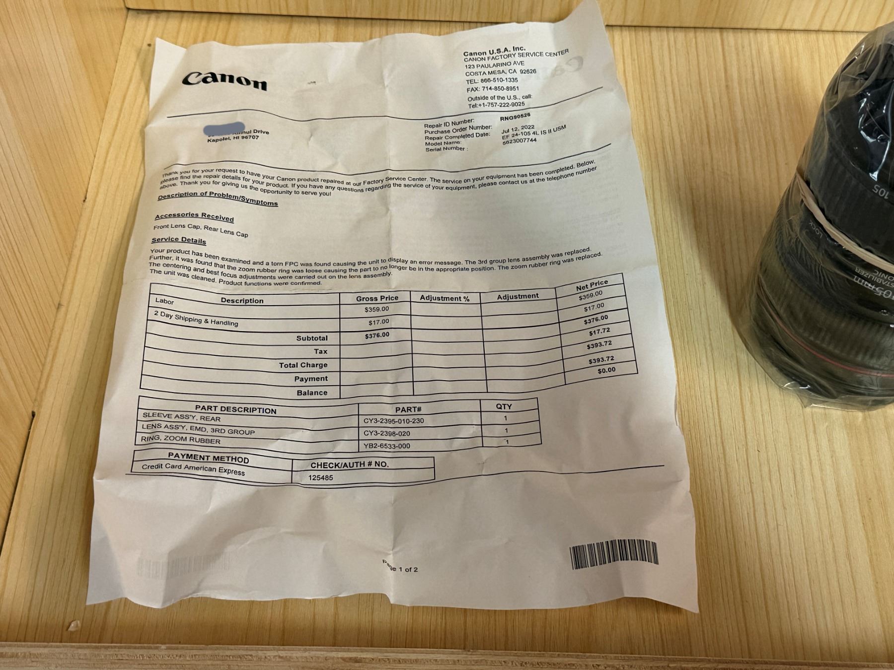 Canon EF 24-105mm f/4L IS II USM Lens. Untested - As Is.