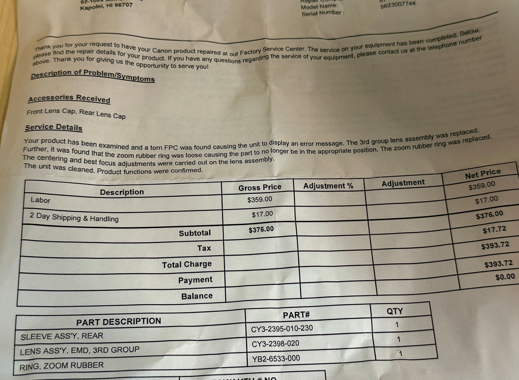 Hawaii General Excise Tax of 4.712 will be added to the invoice.
