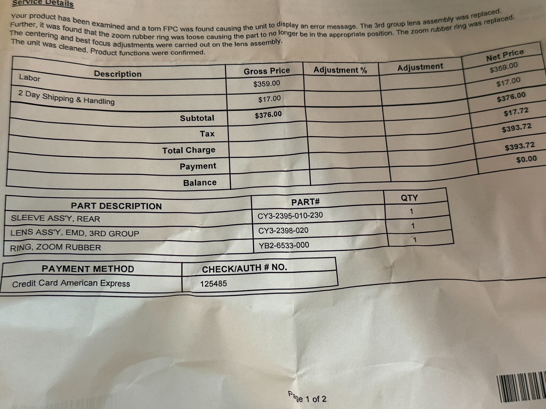Payment Details: