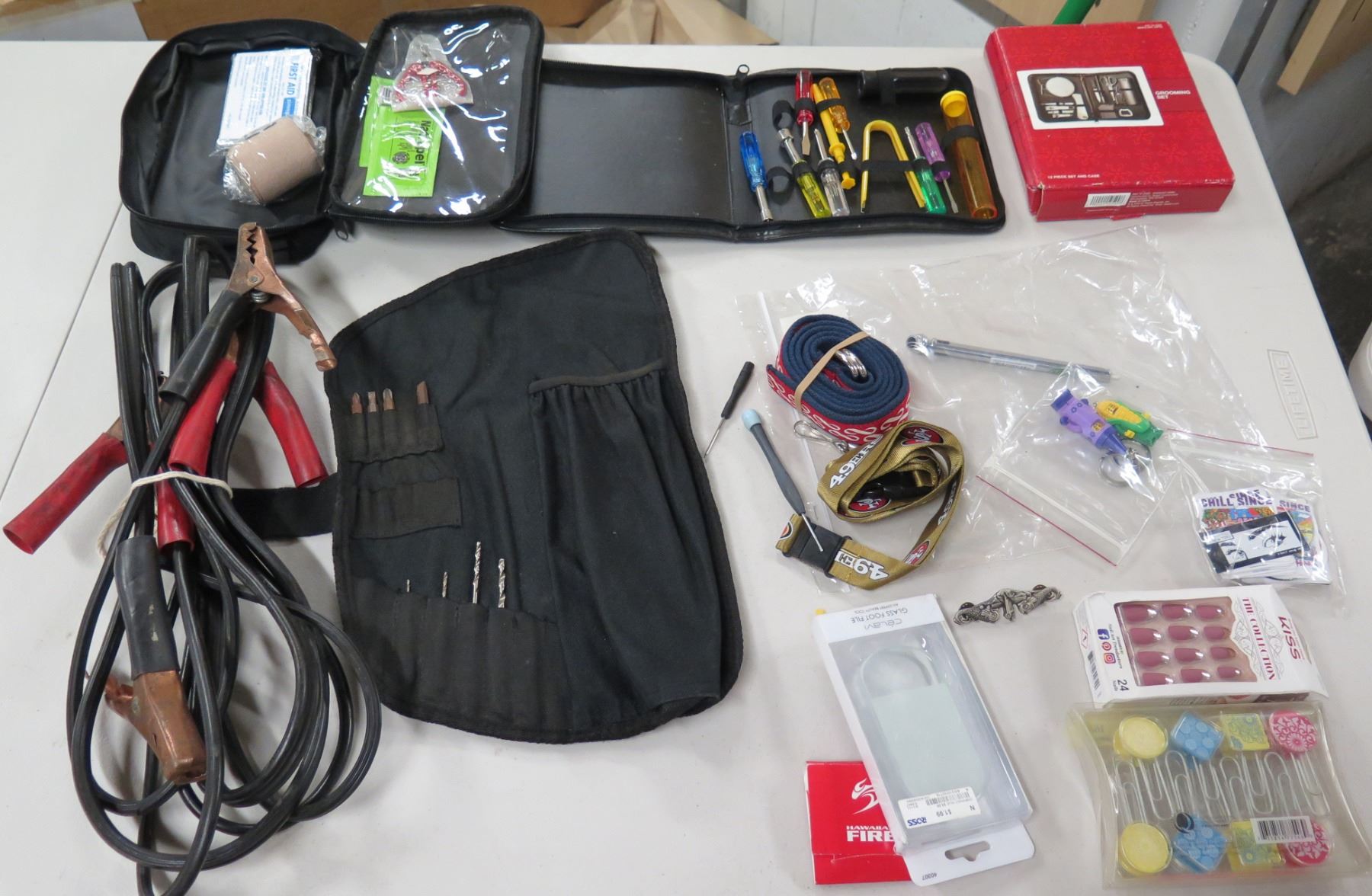 Car Battery Jumper Cables, Drill Bits, Tool Kit, Grooming Set, etc