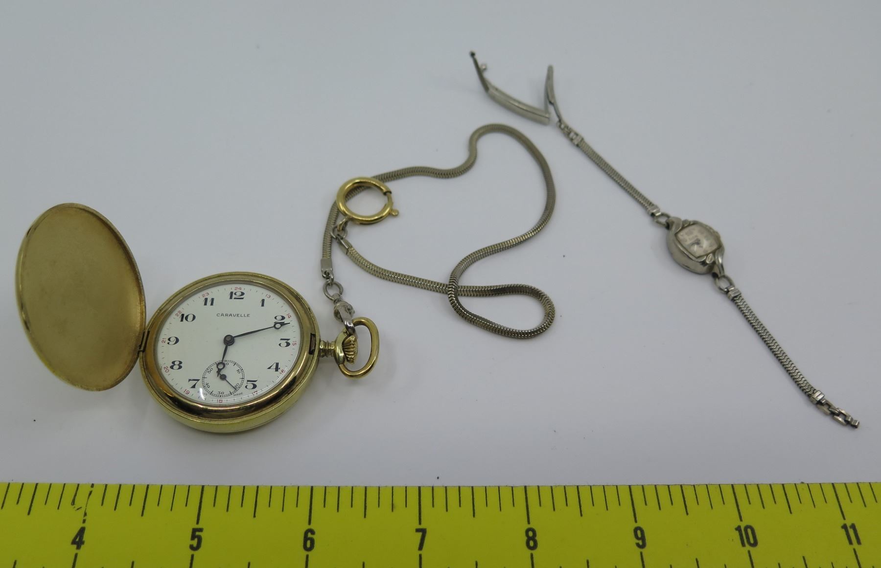 Caravelle Ancre de Precision Pocket Watch & Elgin Silver Ladies Watch