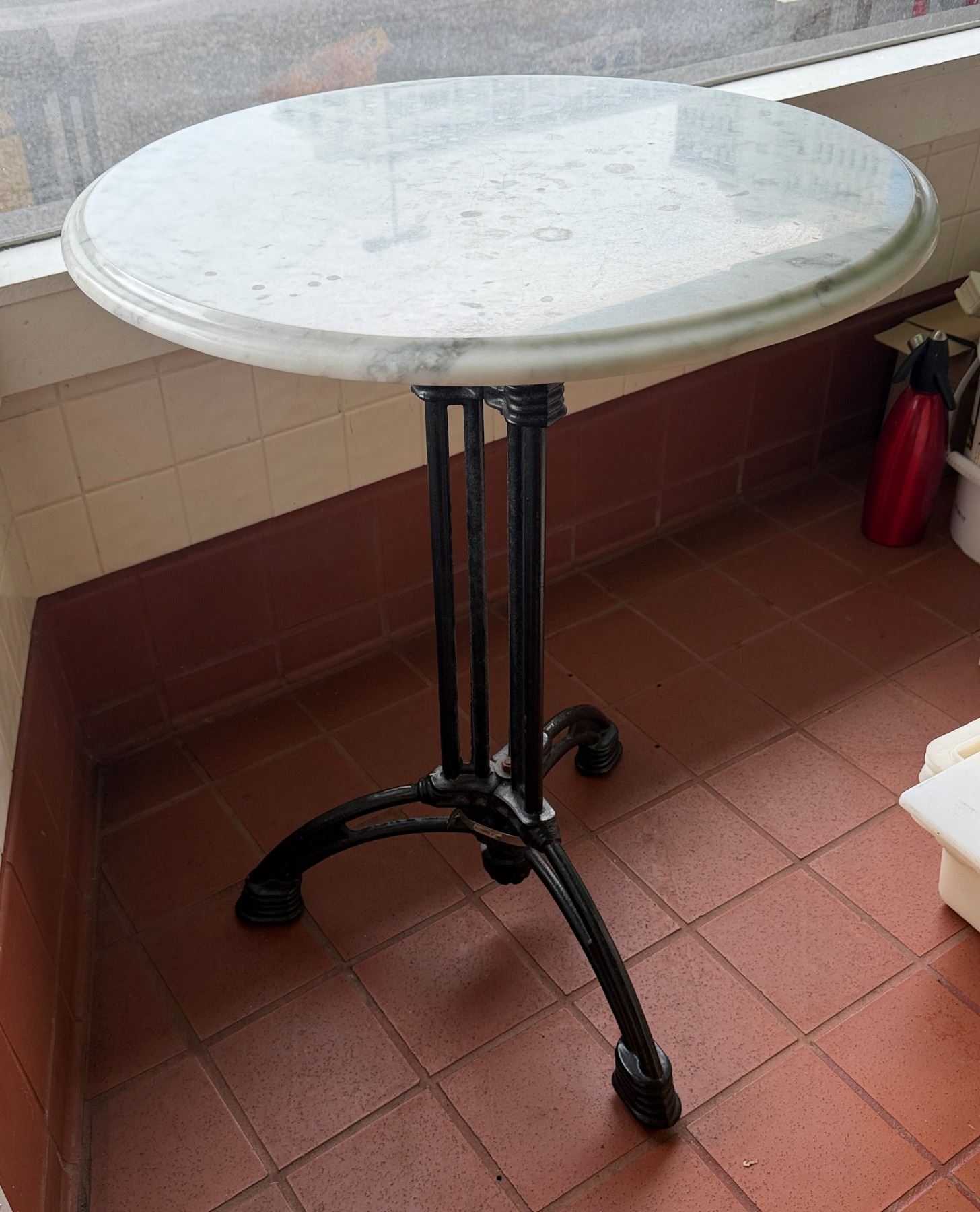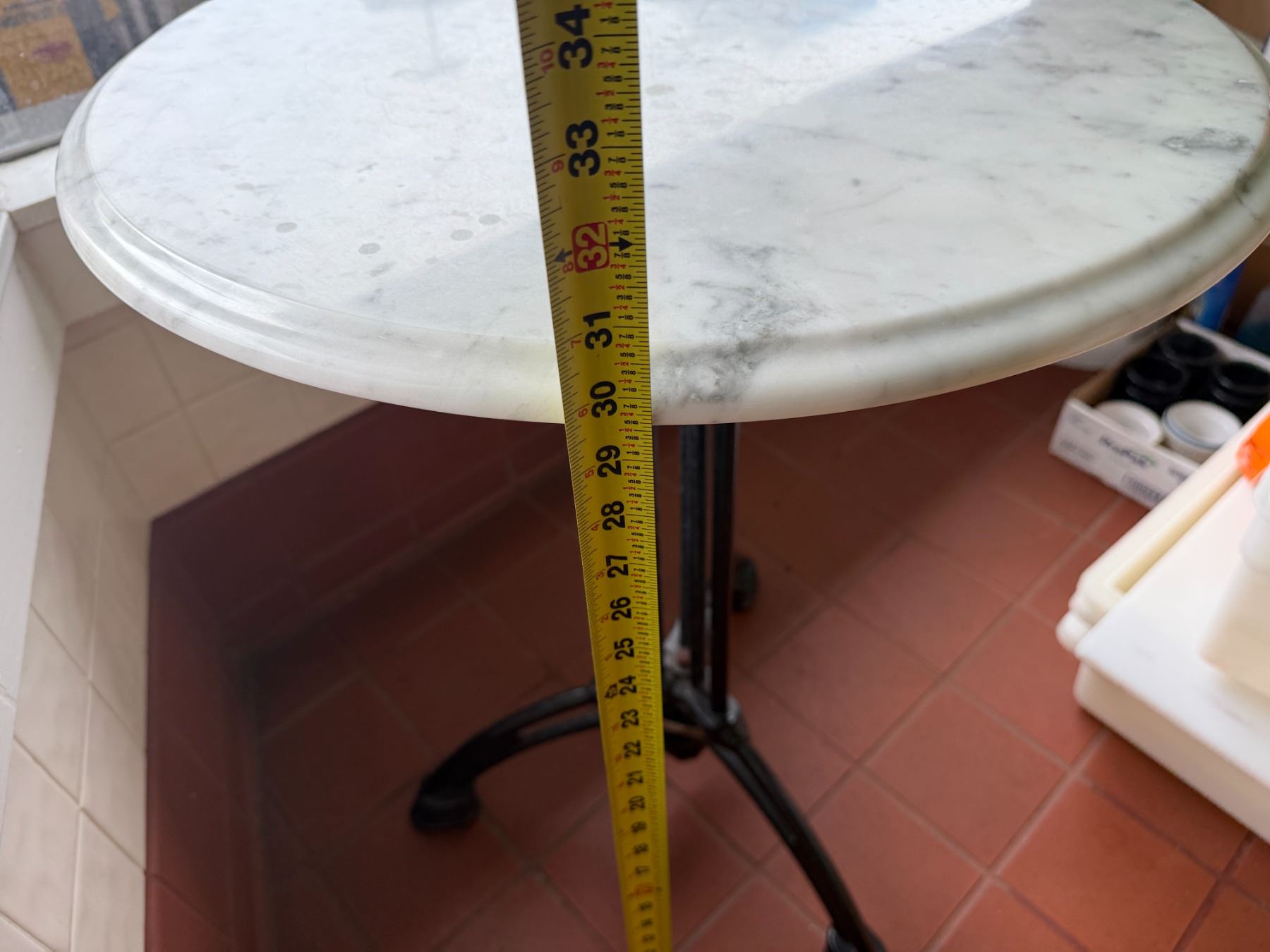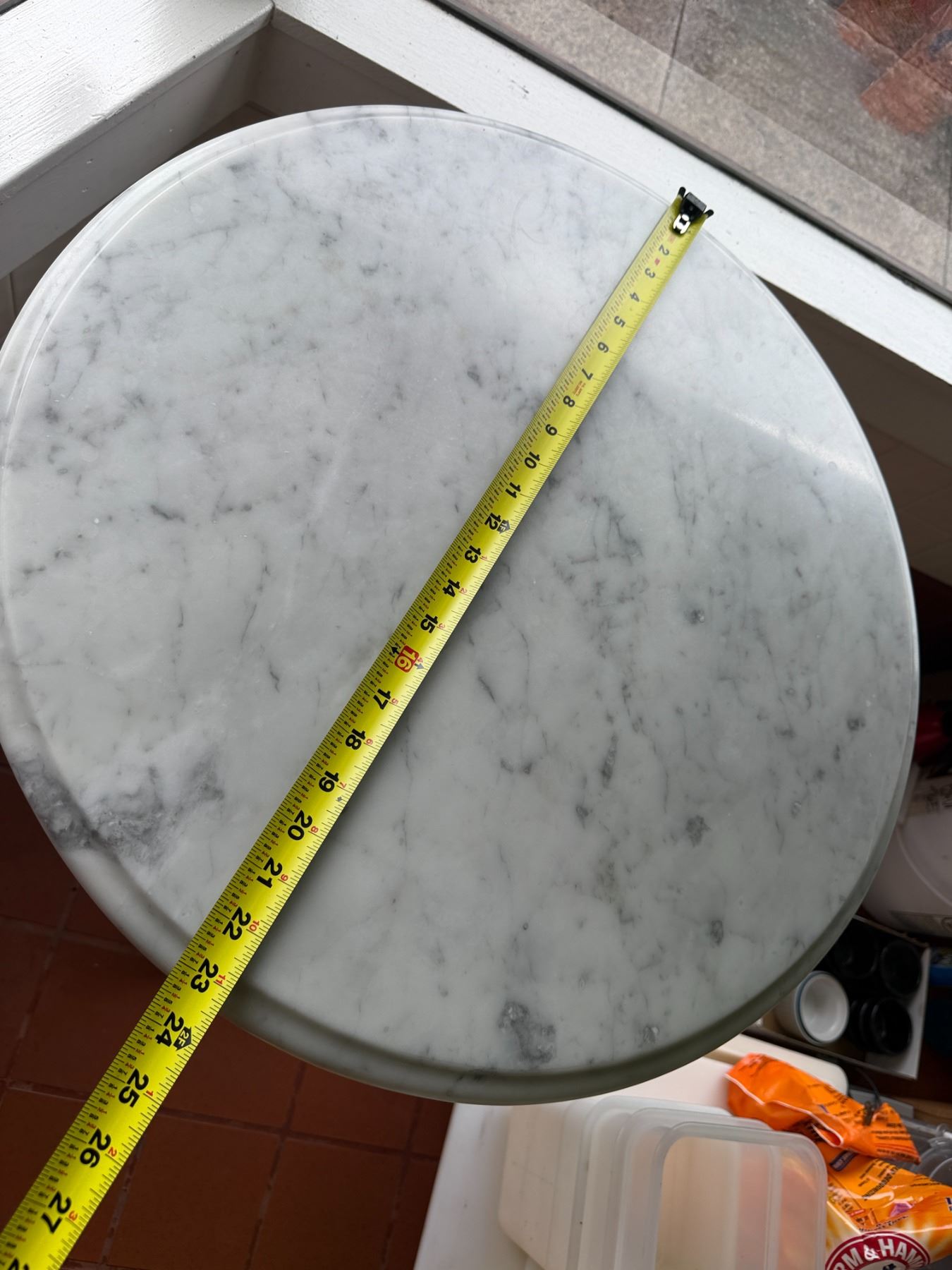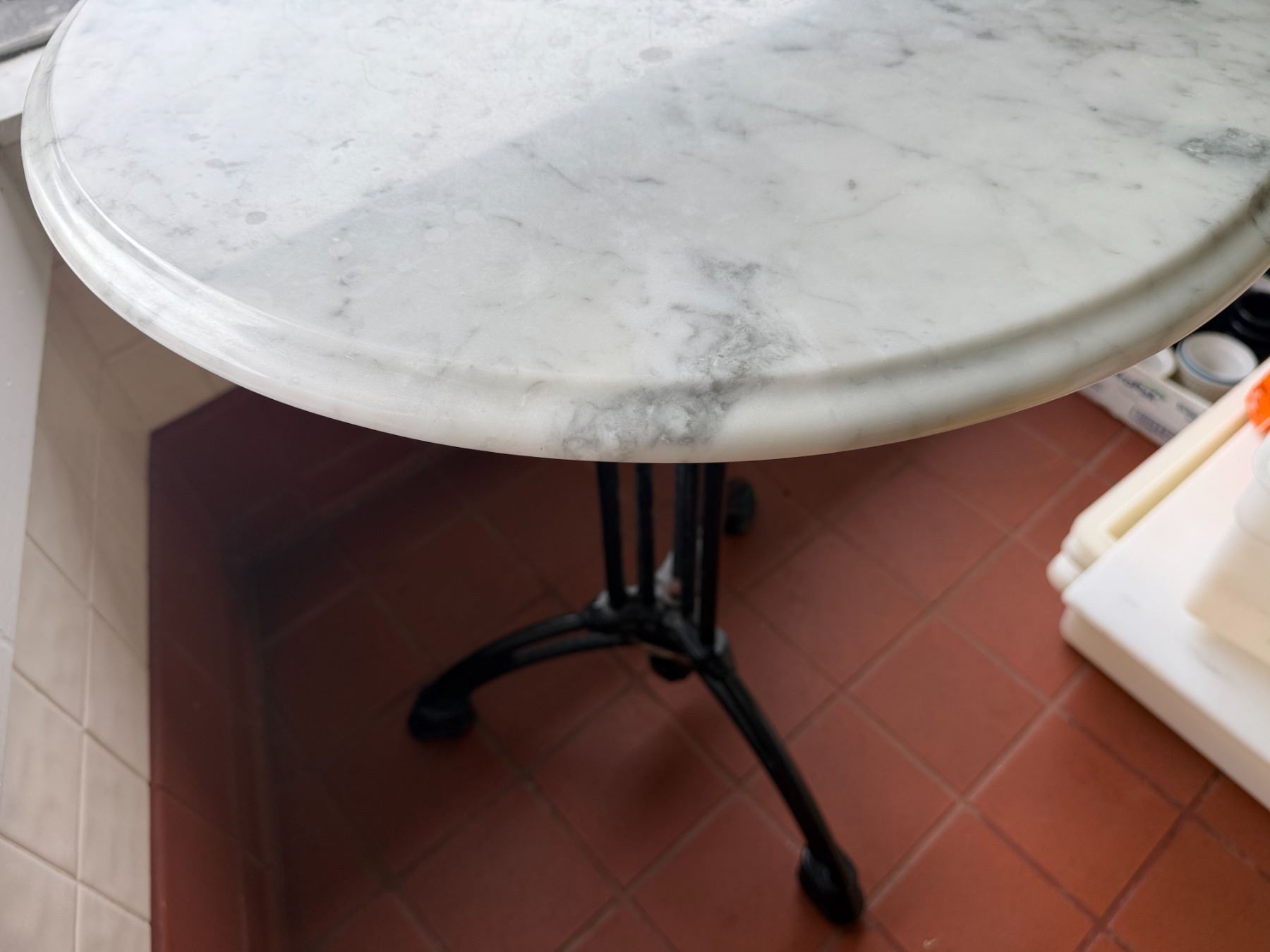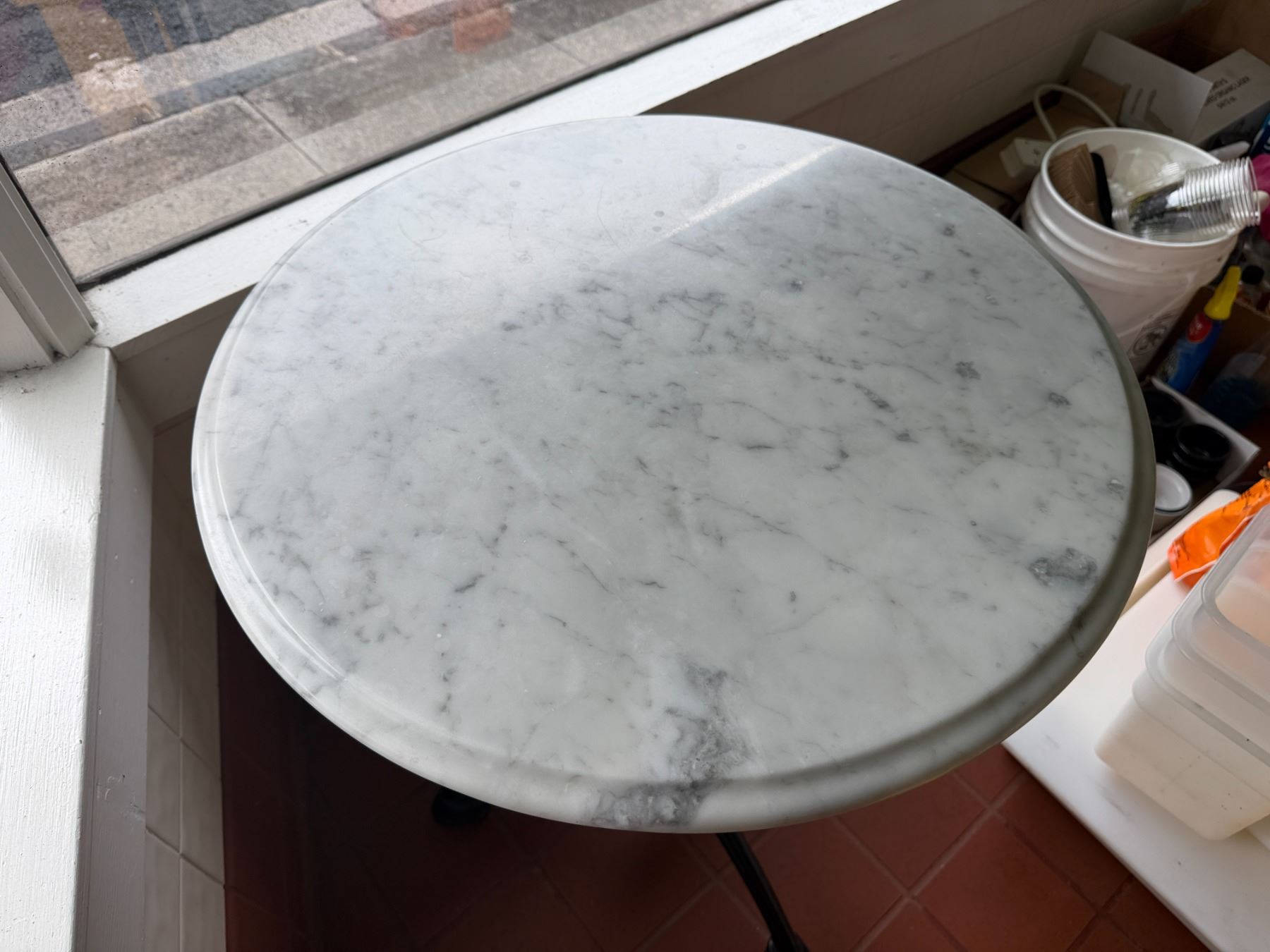 Carrara Marble Table w/ Bruni 3 Table Base 23.5" Dia, 30"H