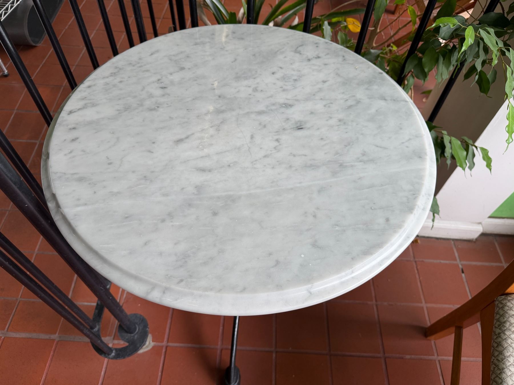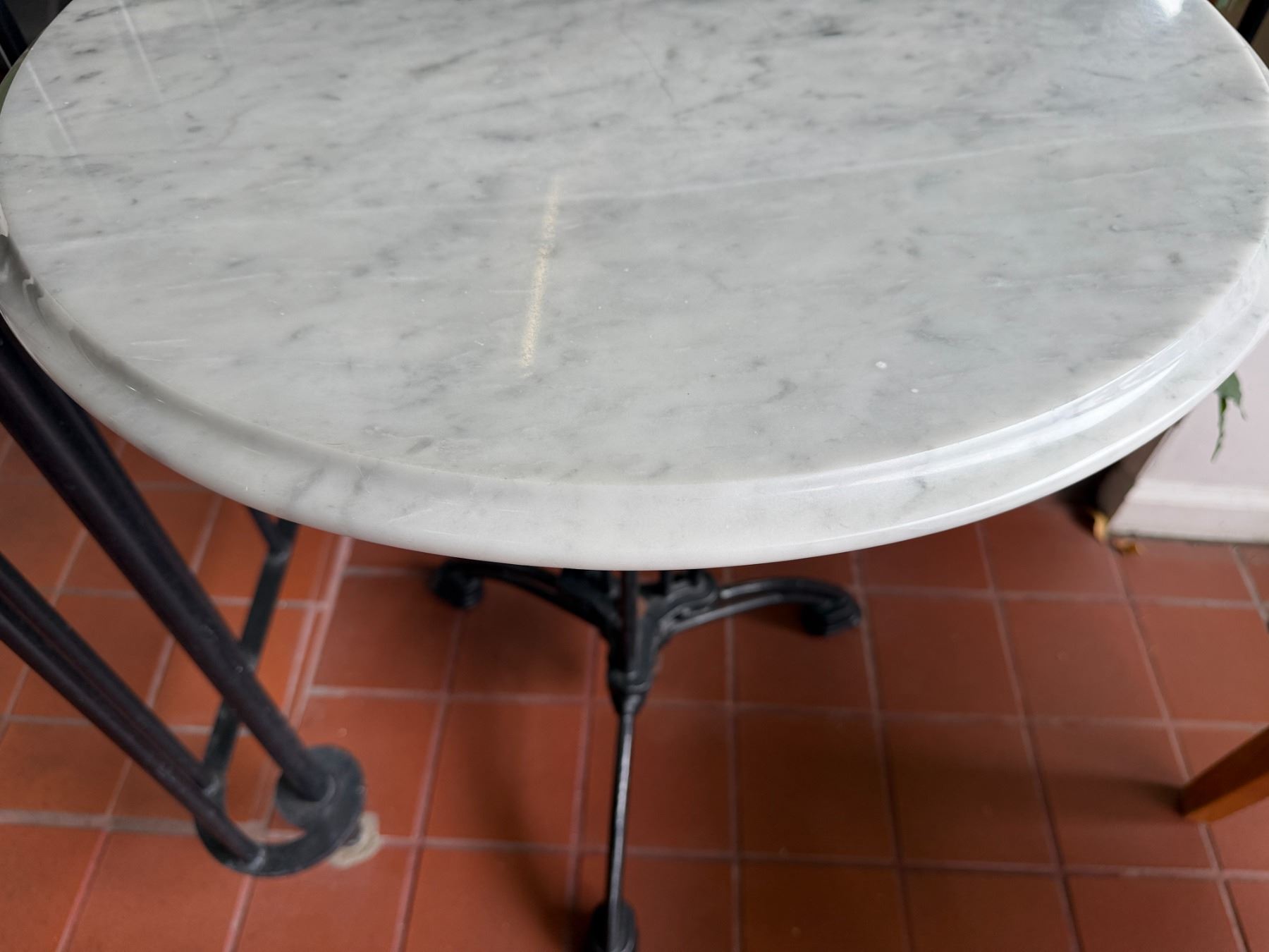 Carrara Marble Table w/ Bruni 3 Table Base 23.5" Dia, 30"H