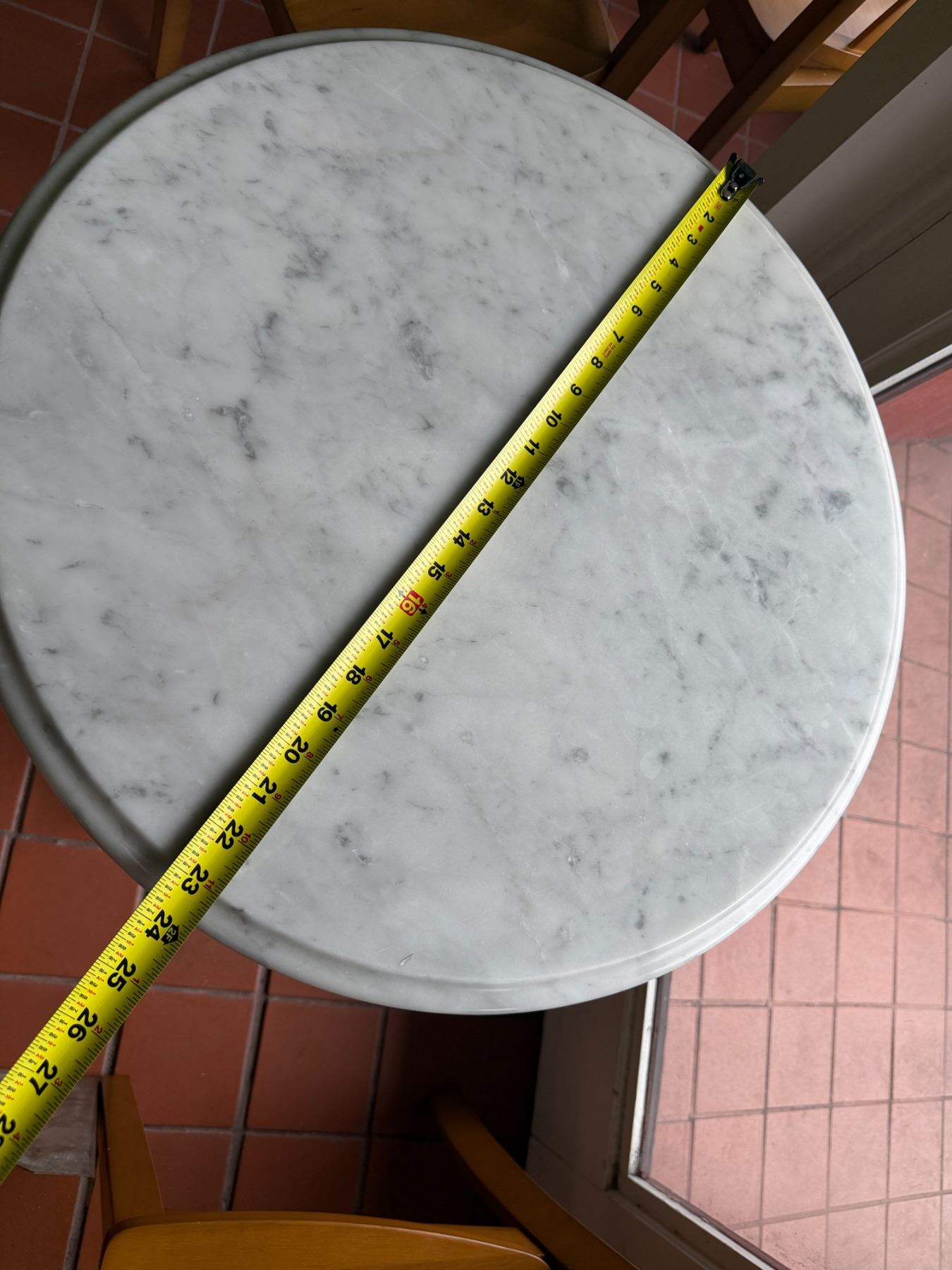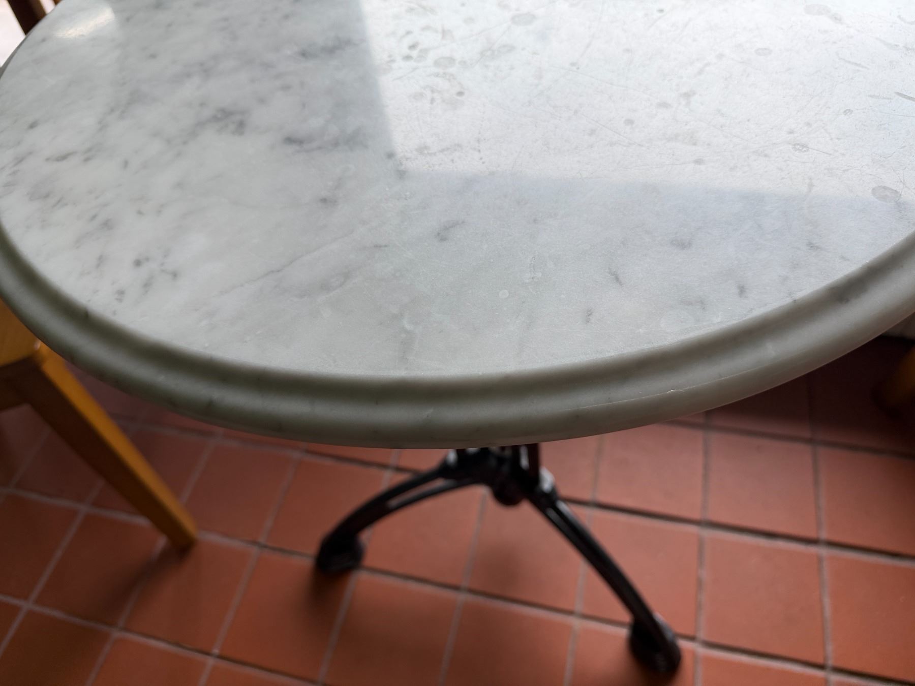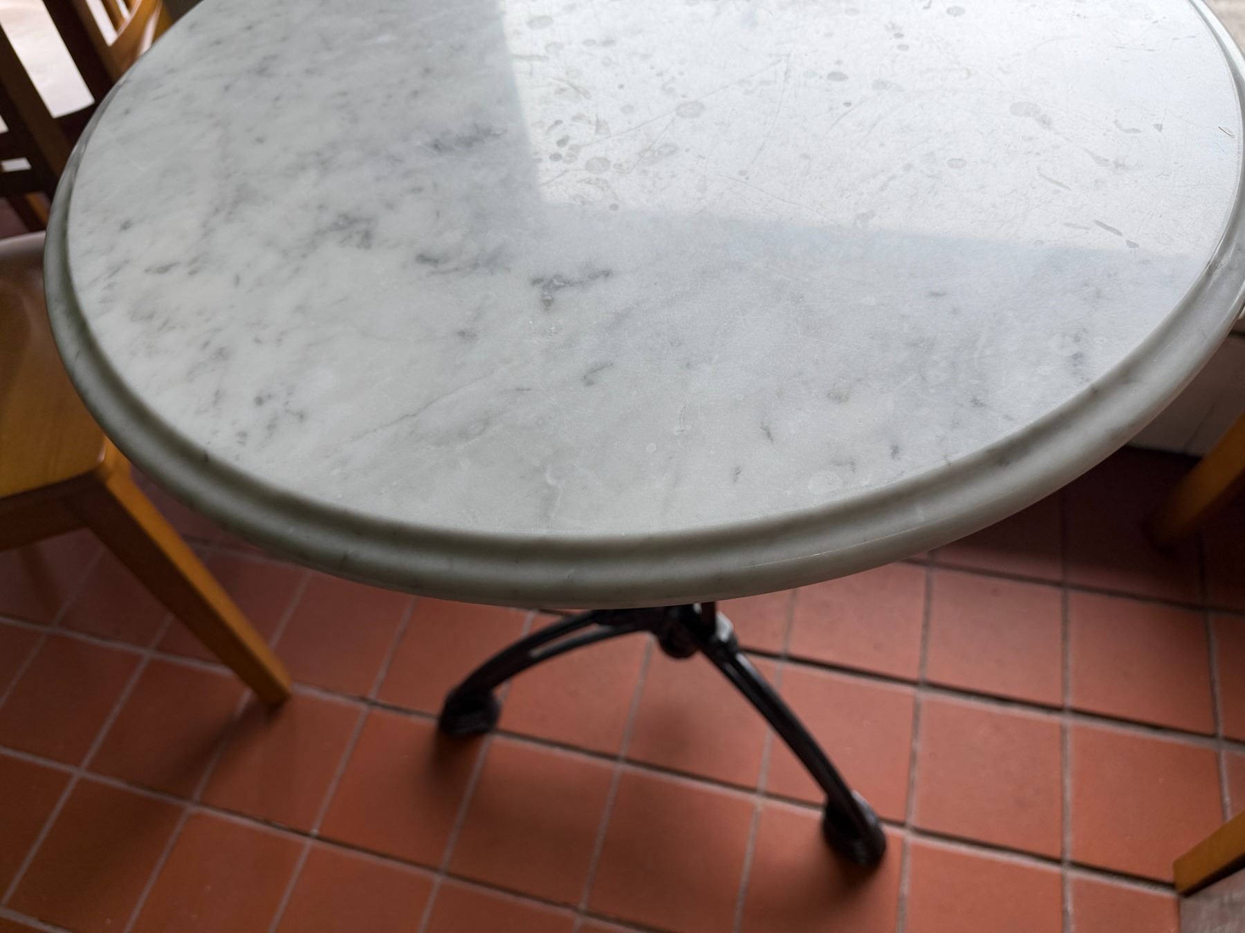 Carrara Marble Table w/ Bruni 3 Table Base 23.5" Dia, 30"H