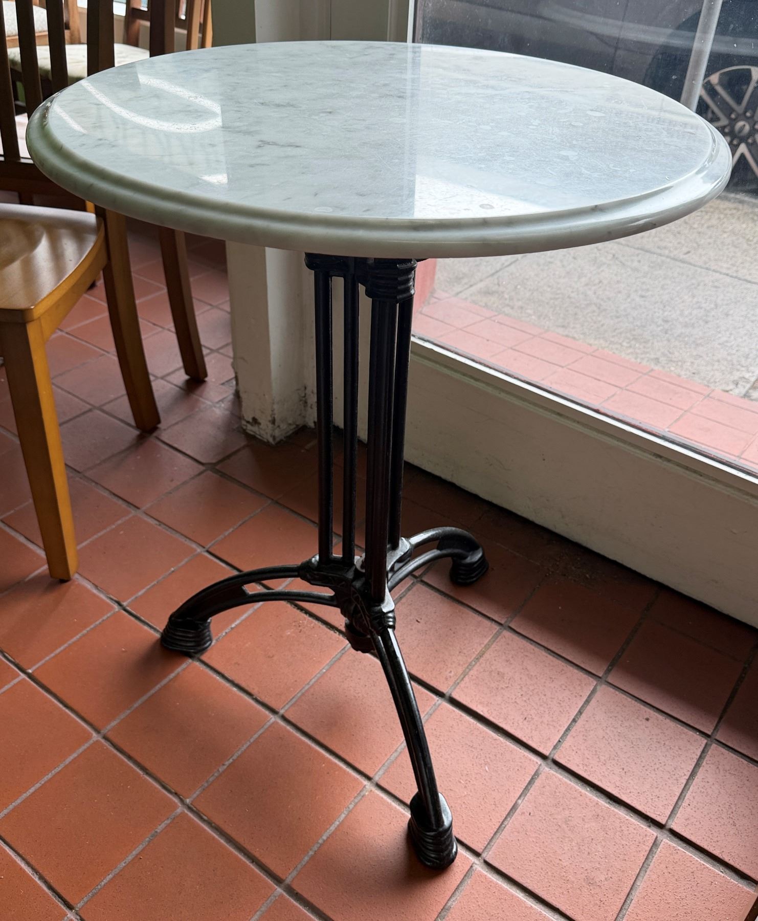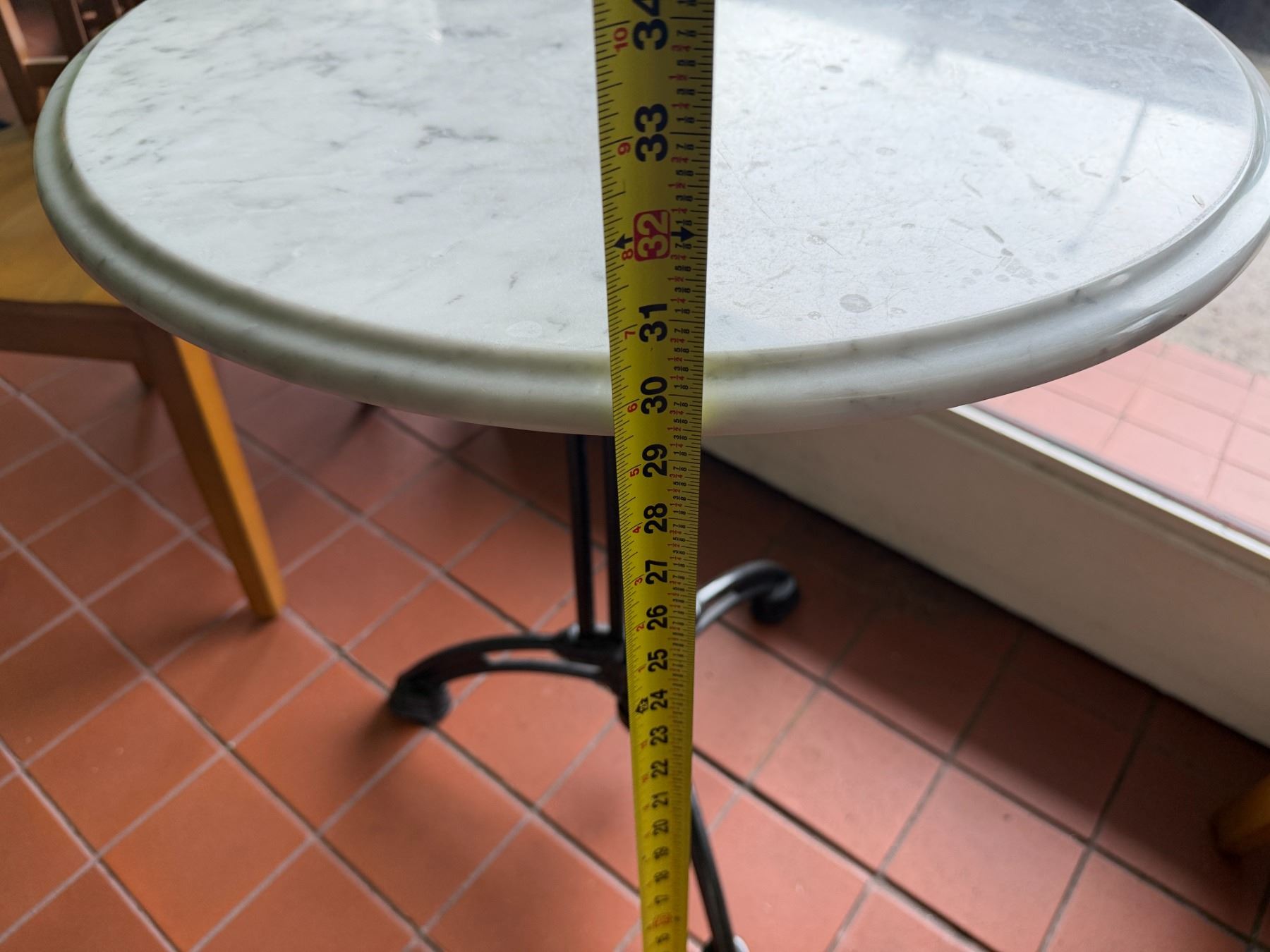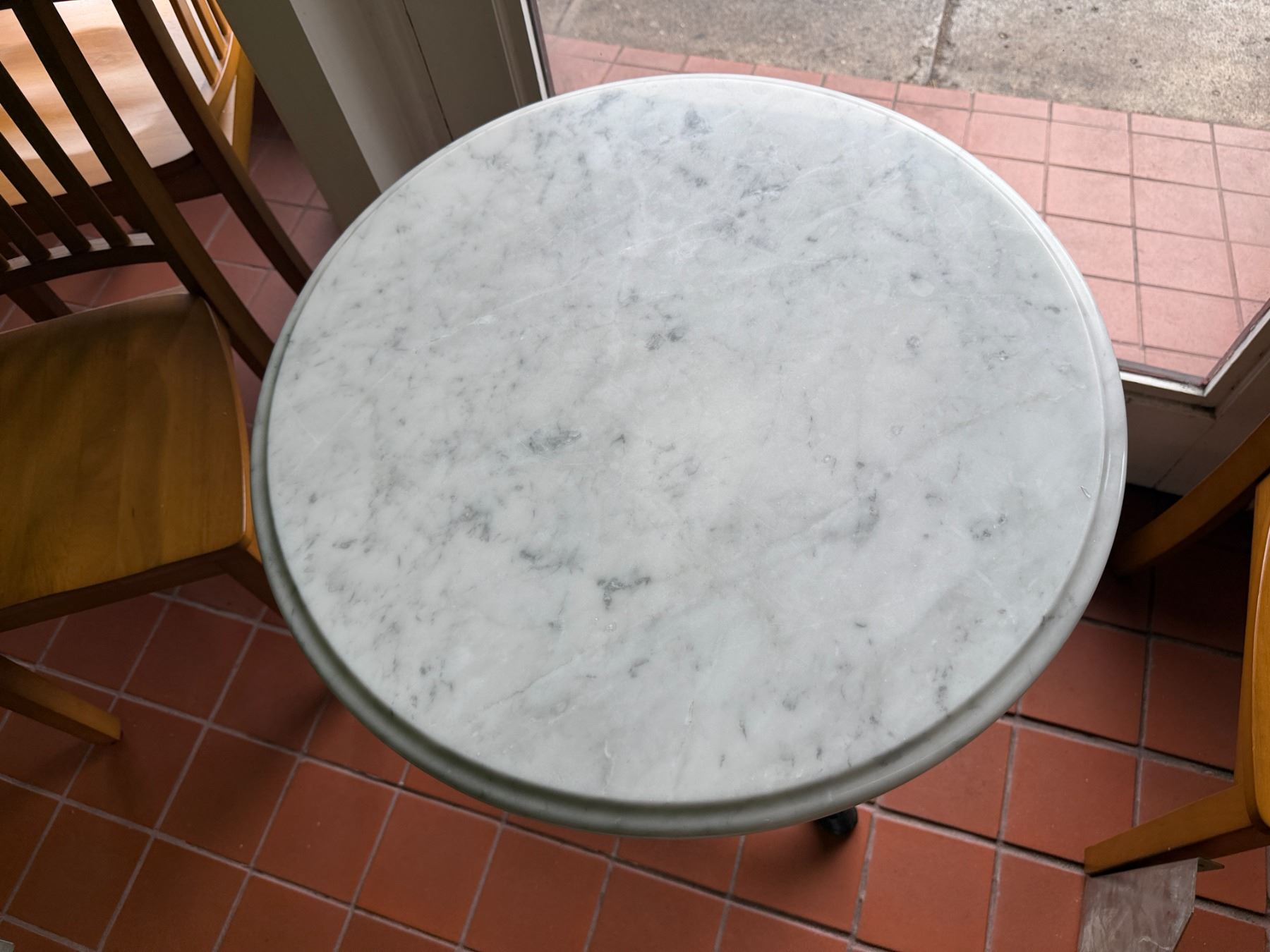 Carrara Marble Table w/ Bruni 3 Table Base 23.5" Dia, 30"H