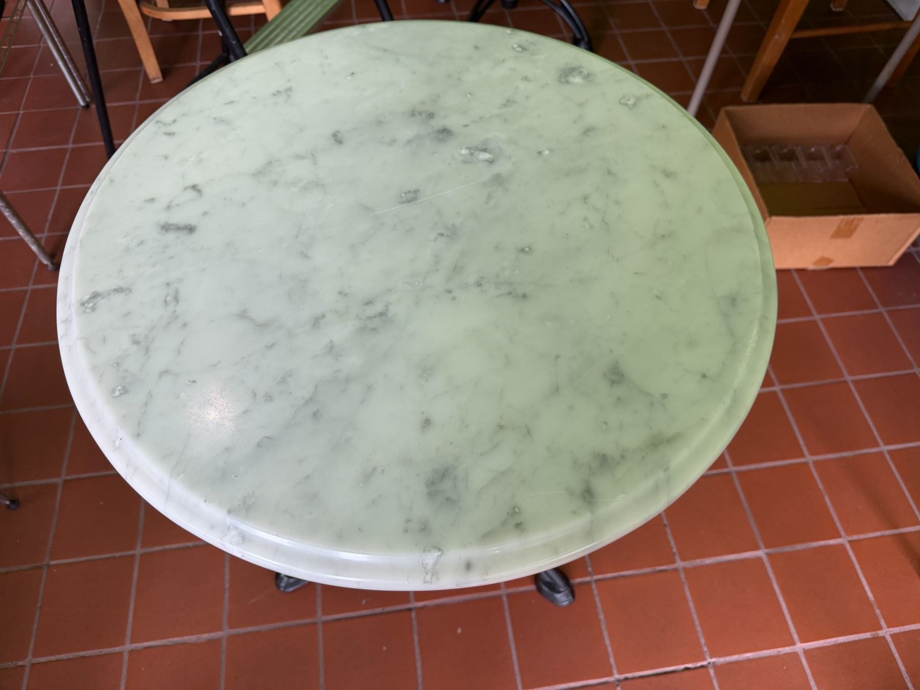 Carrara Marble Table w/ Bruni 3 Table Base 23.5" Dia, 30"H