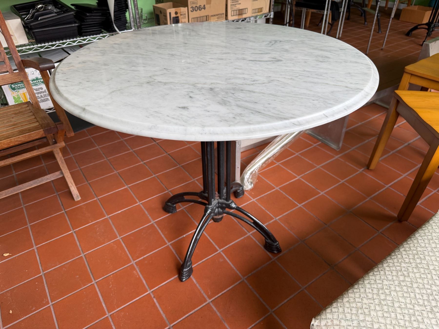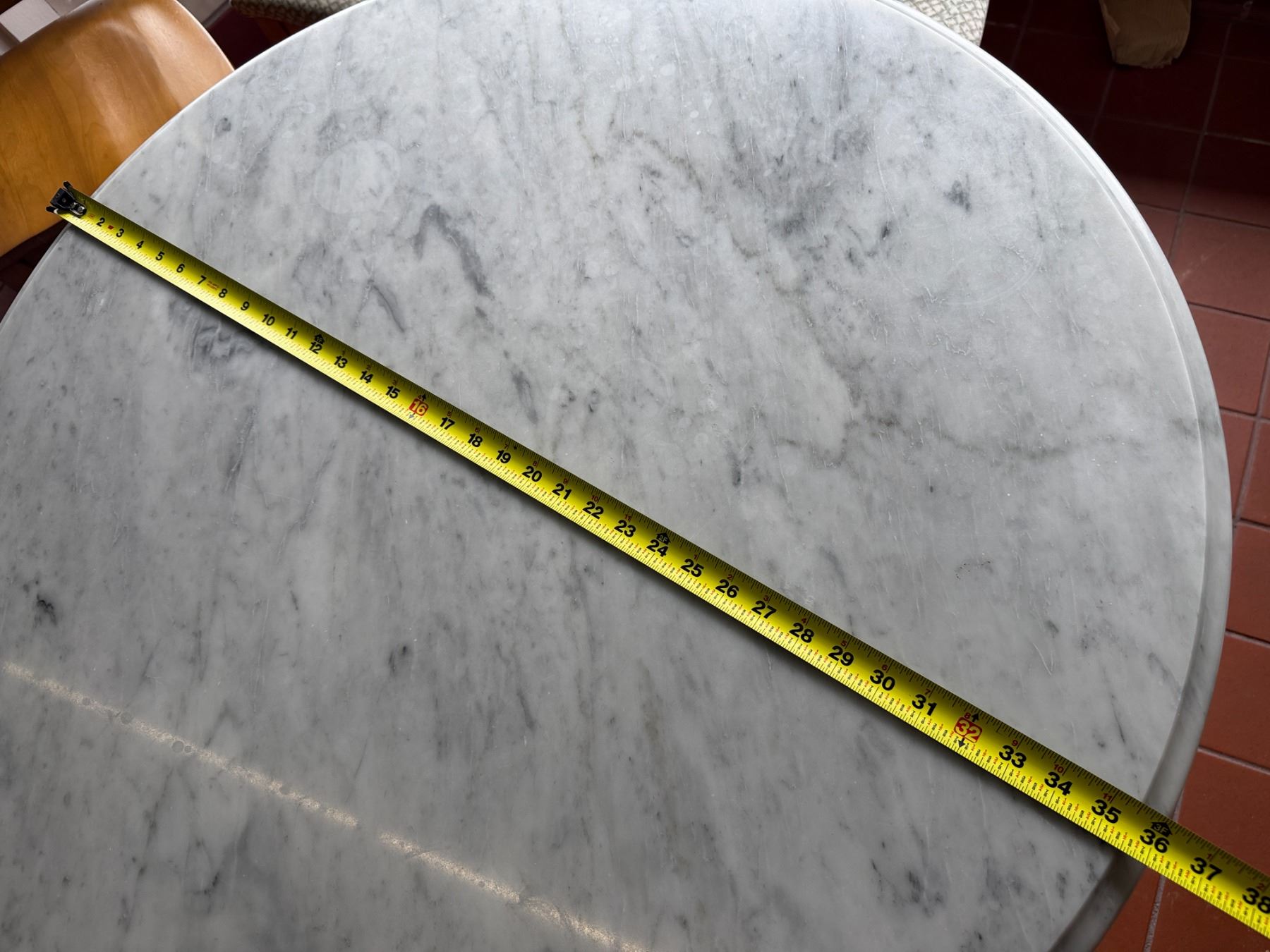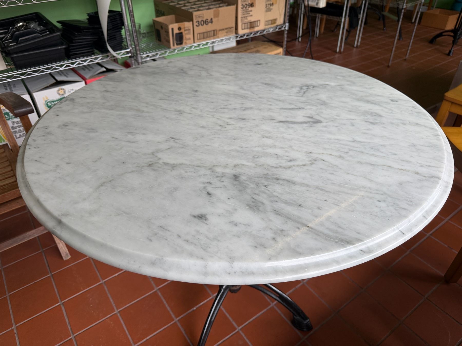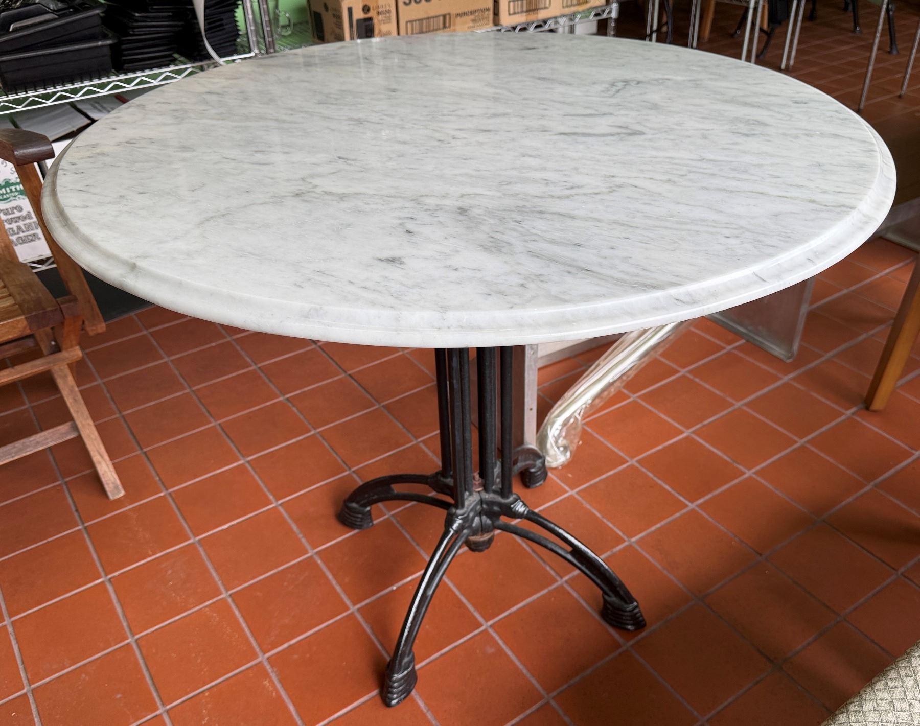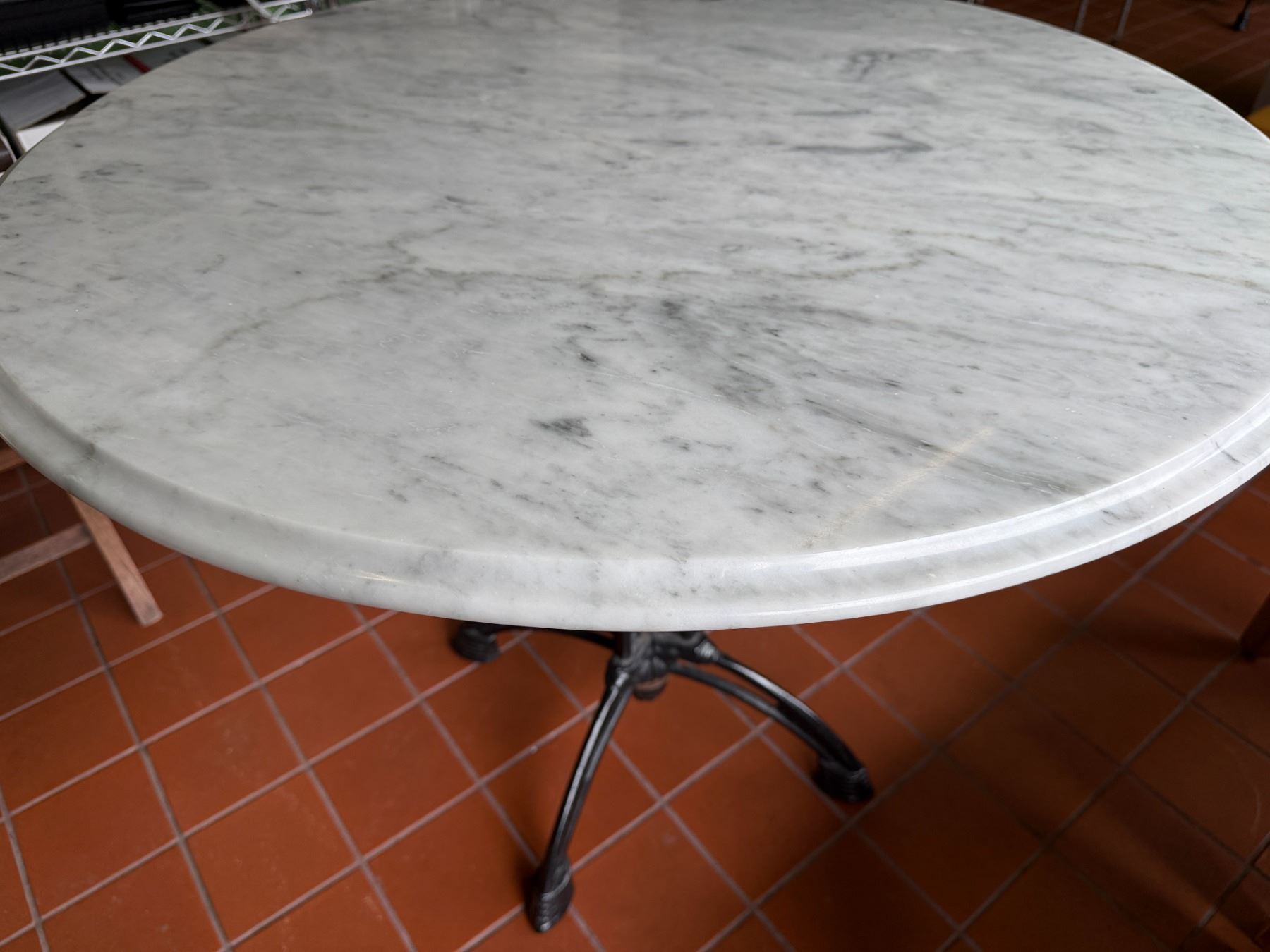 Carrara Marble Table w/ Bruni 3 Table Base 36" Dia, 30"H