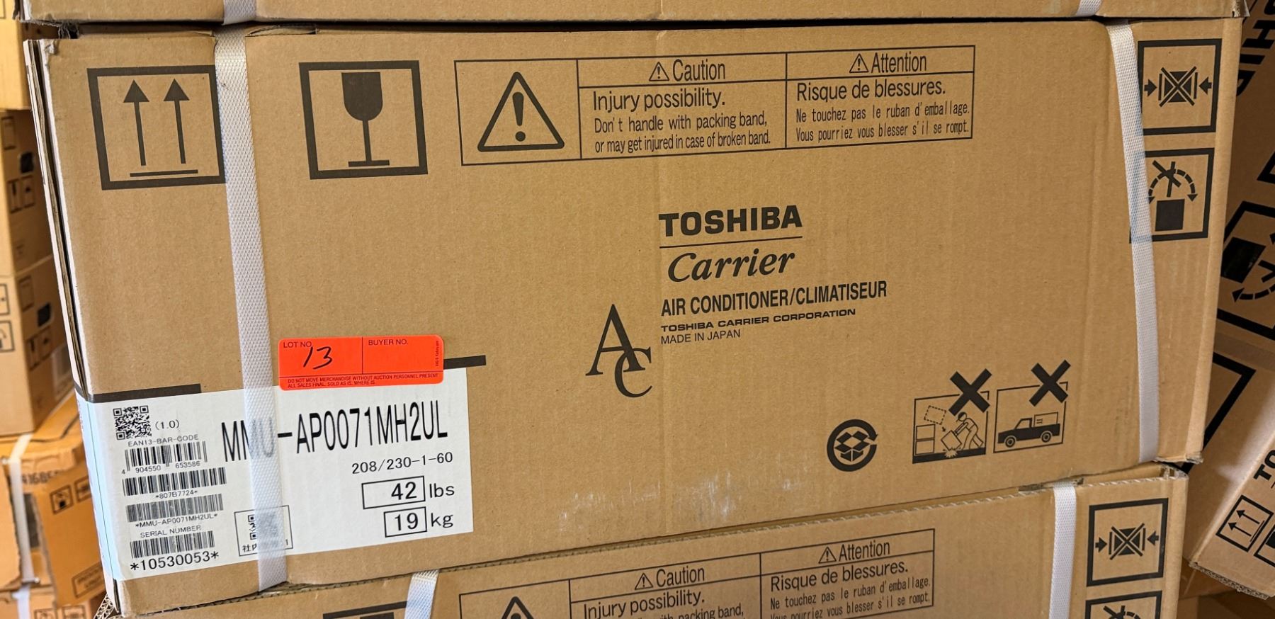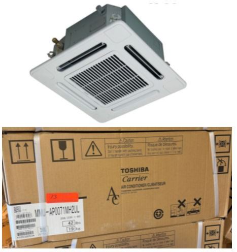 This is a stock photo representative of Unit. Carrier MMU-AP0071MH2UL Toshiba Compact 4-Way Cassette, 7.5/8.5 208/230-1-60 VRF System w/ RBC-AMS54E-UL Remote & RBC-UM11PG(W)-UL Grill (approx retail $1,000)