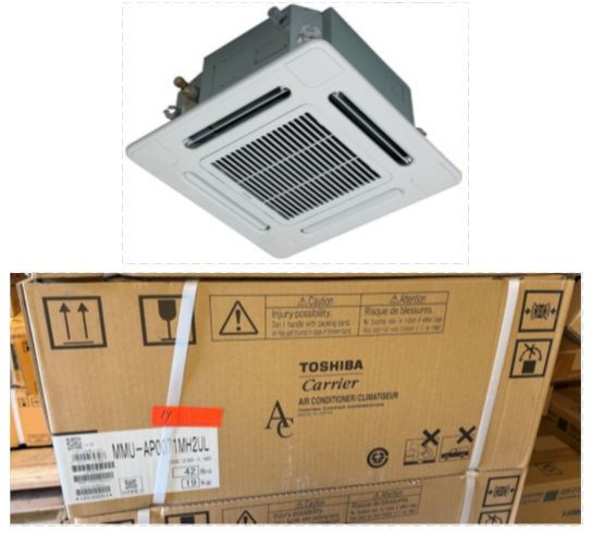 This is a stock photo representative of Unit. Carrier MMU-AP0071MH2UL Toshiba Compact 4-Way Cassette, 7.5/8.5 208/230-1-60 VRF System w/ RBC-AMS54E-UL Remote & RBC-UM11PG(W)-UL Grill (approx retail $1,000)