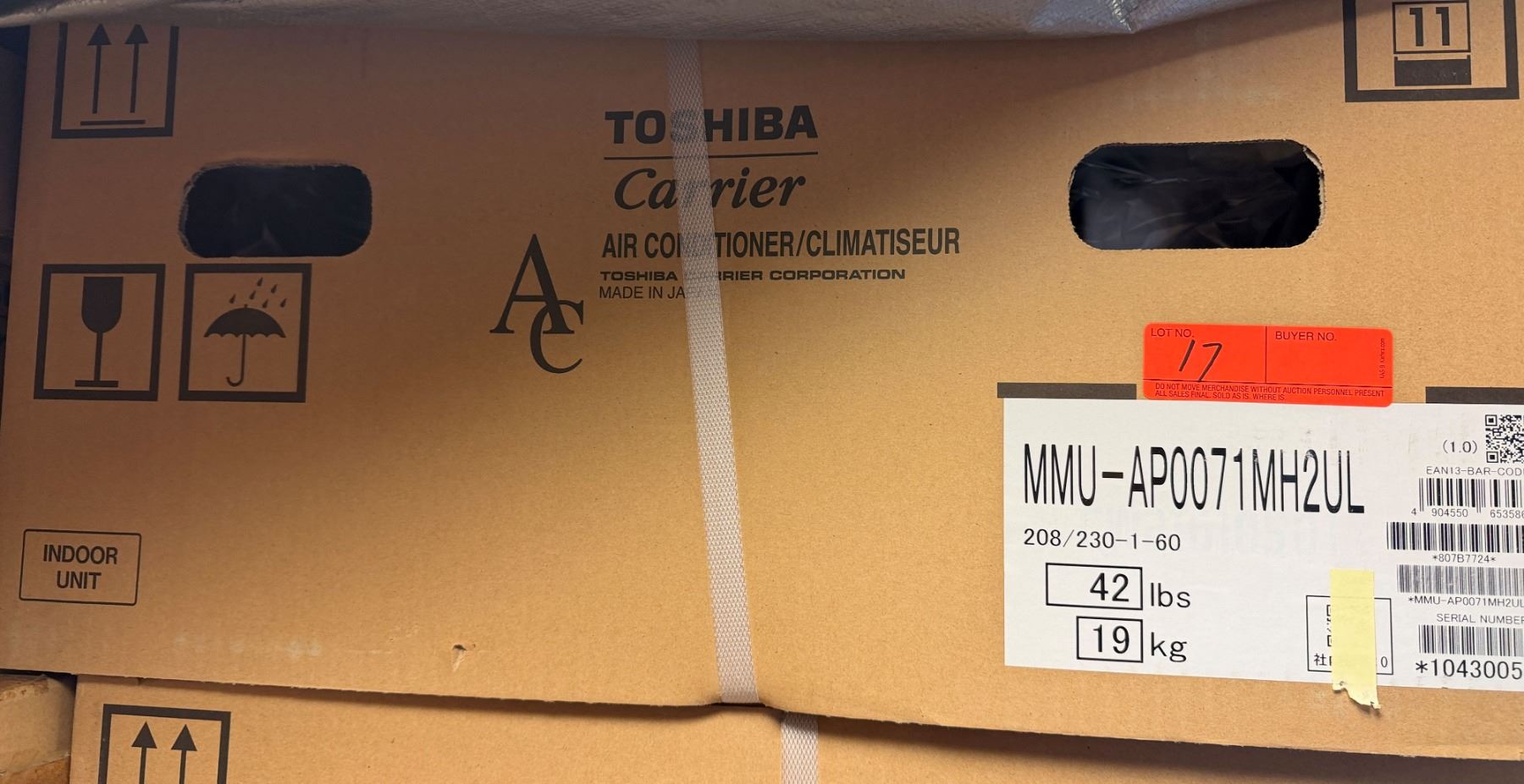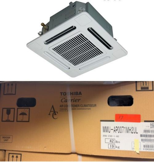 This is a stock photo representative of Unit. Carrier MMU-AP0071MH2UL Toshiba Compact 4-Way Cassette, 7.5/8.5 208/230-1-60 VRF System w/ RBC-AMS54E-UL Remote & RBC-UM11PG(W)-UL Grill (approx retail $1,000)