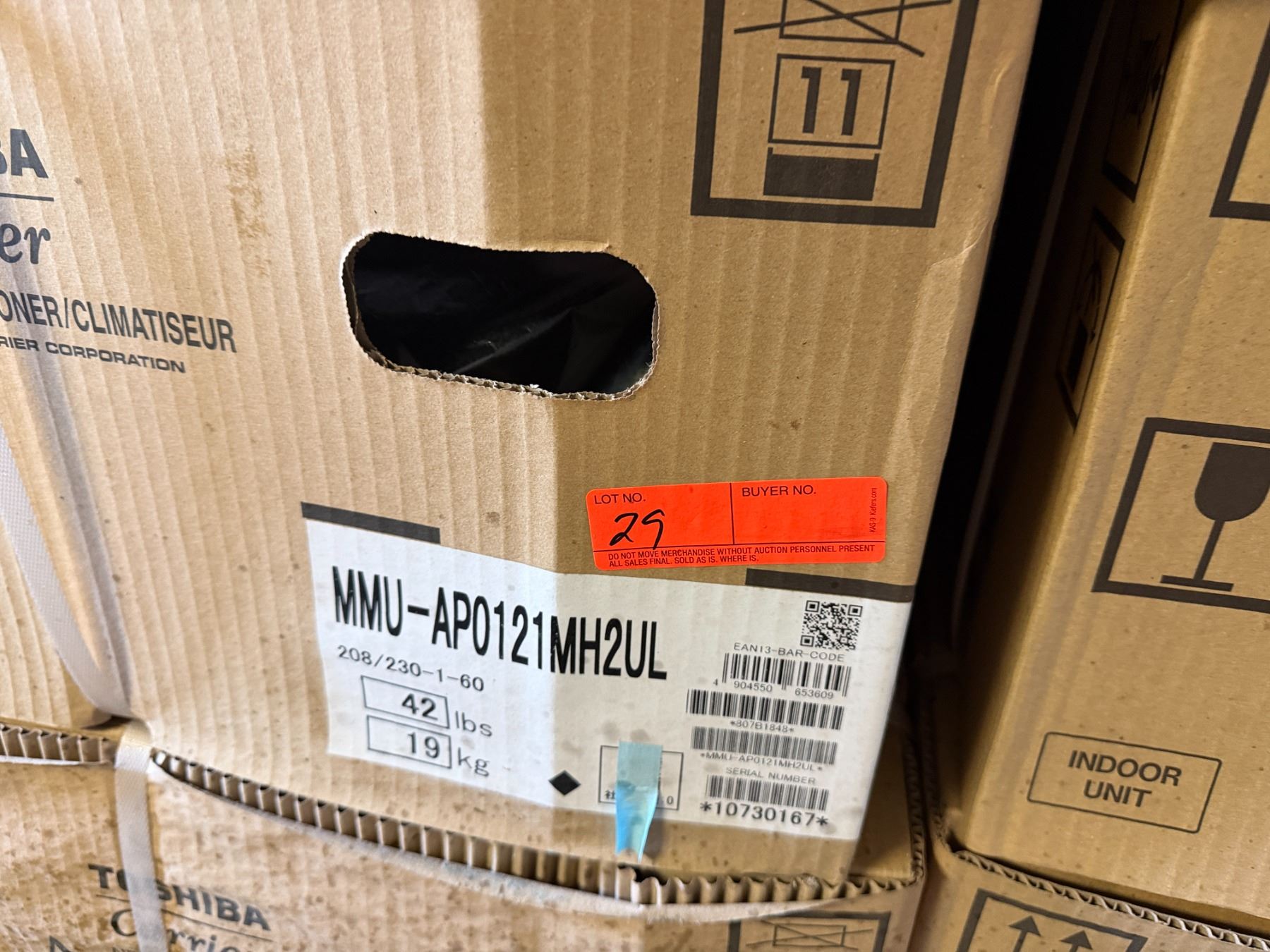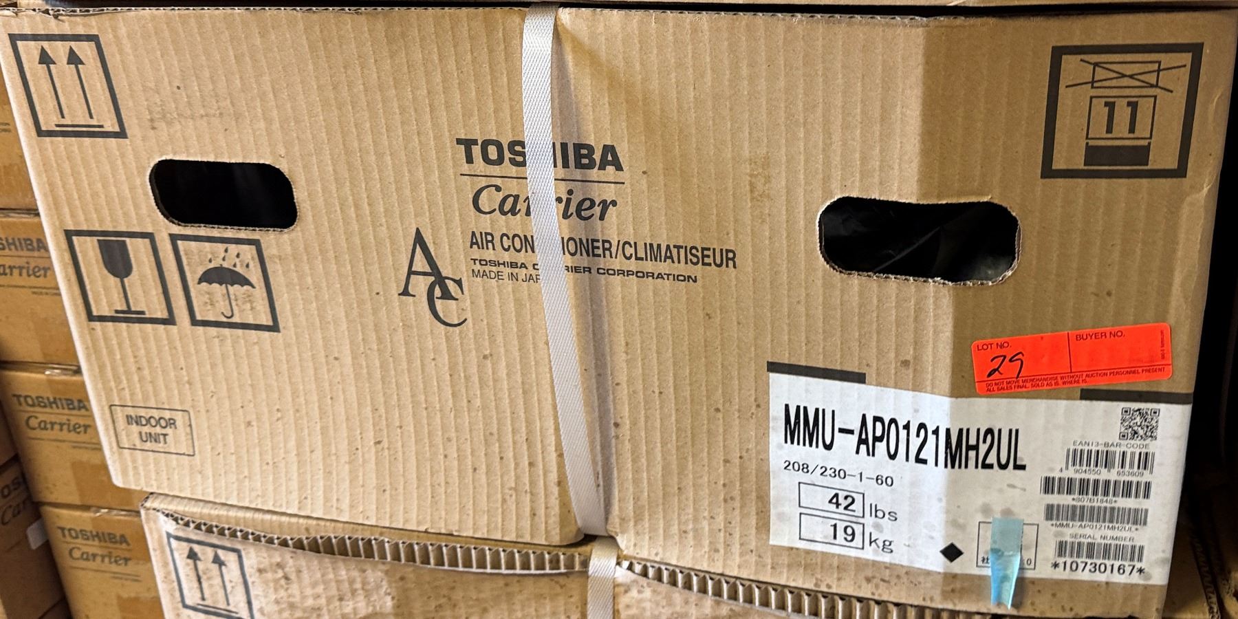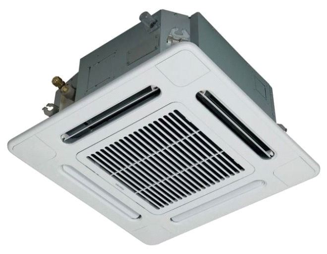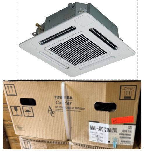This is a stock photo representative of Unit. Carrier MMU-AP0121MH2UL Toshiba Ductless Variable Flow (VRF) 12000 Btu Indoor Compact 4-Way Heat Pump Cassette Unit w/ RBC-AMS54E-UL Remote & RBC-UM11PG(W)-UL Grill (approx retail $1,500)