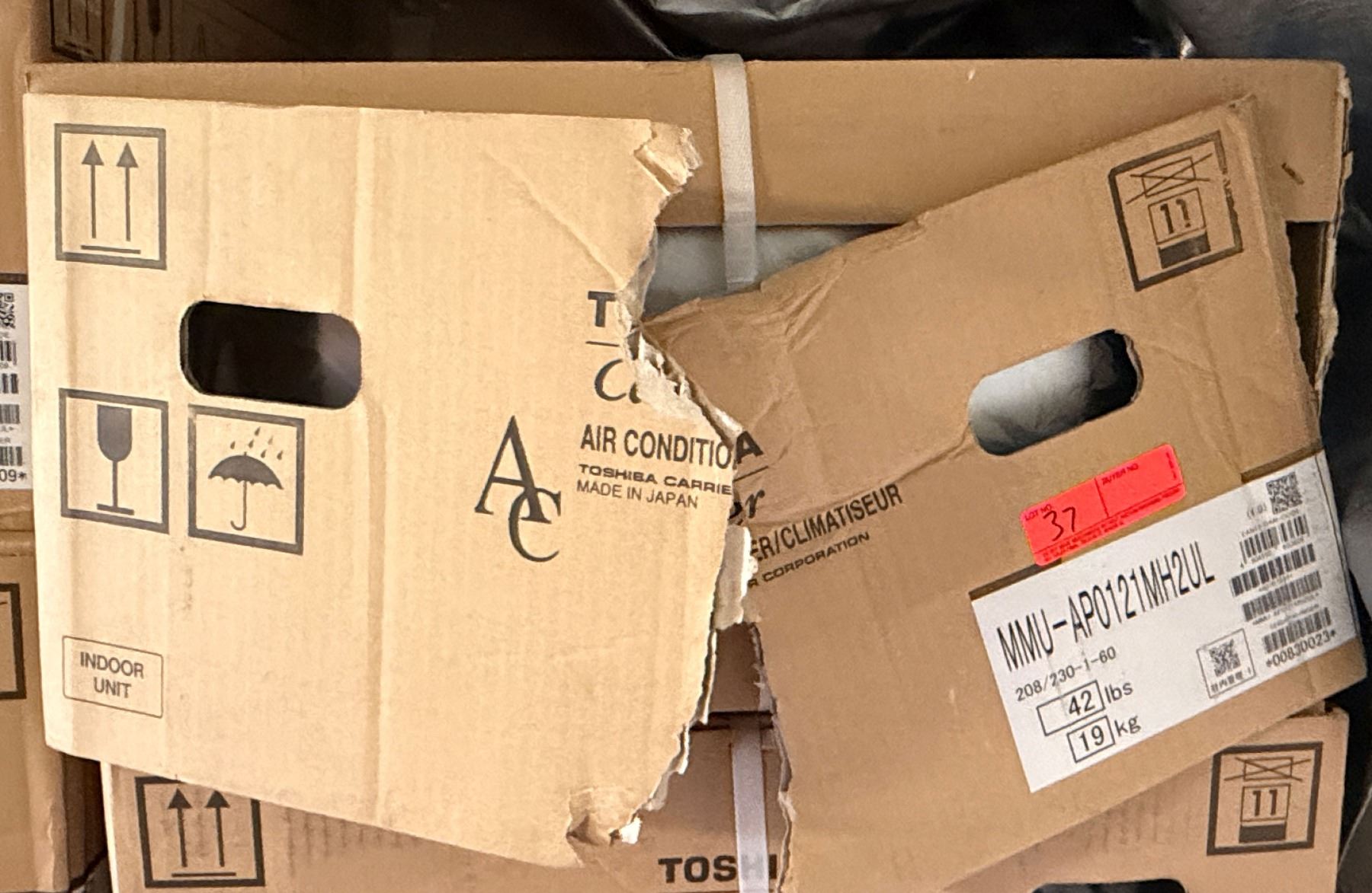 This is a stock photo representative of Unit. Carrier MMU-AP0121MH2UL Toshiba Ductless Variable Flow (VRF) 12000 Btu Indoor Compact 4-Way Heat Pump Cassette Unit w/ RBC-AMS54E-UL Remote & RBC-UM11PG(W)-UL Grill (approx retail $1,500)