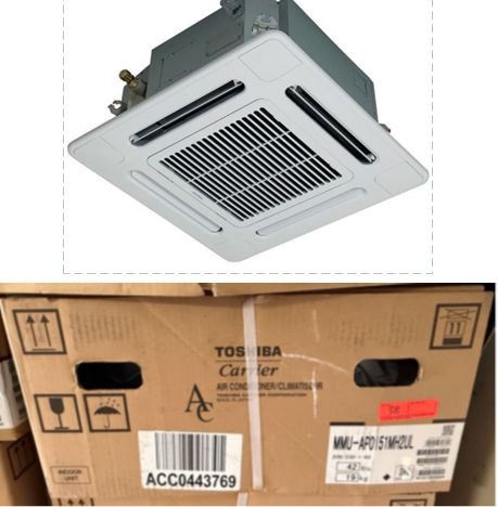 This is a stock photo representative of Unit. Carrier MMU-AP0151MH2UL Toshiba Ductless Variable Flow (VRF) 15400 Btu Indoor Compact 4-Way Heat Pump Cassette Unit w/ RBC-AMS54E-UL Remote (approx retail $1,500)
