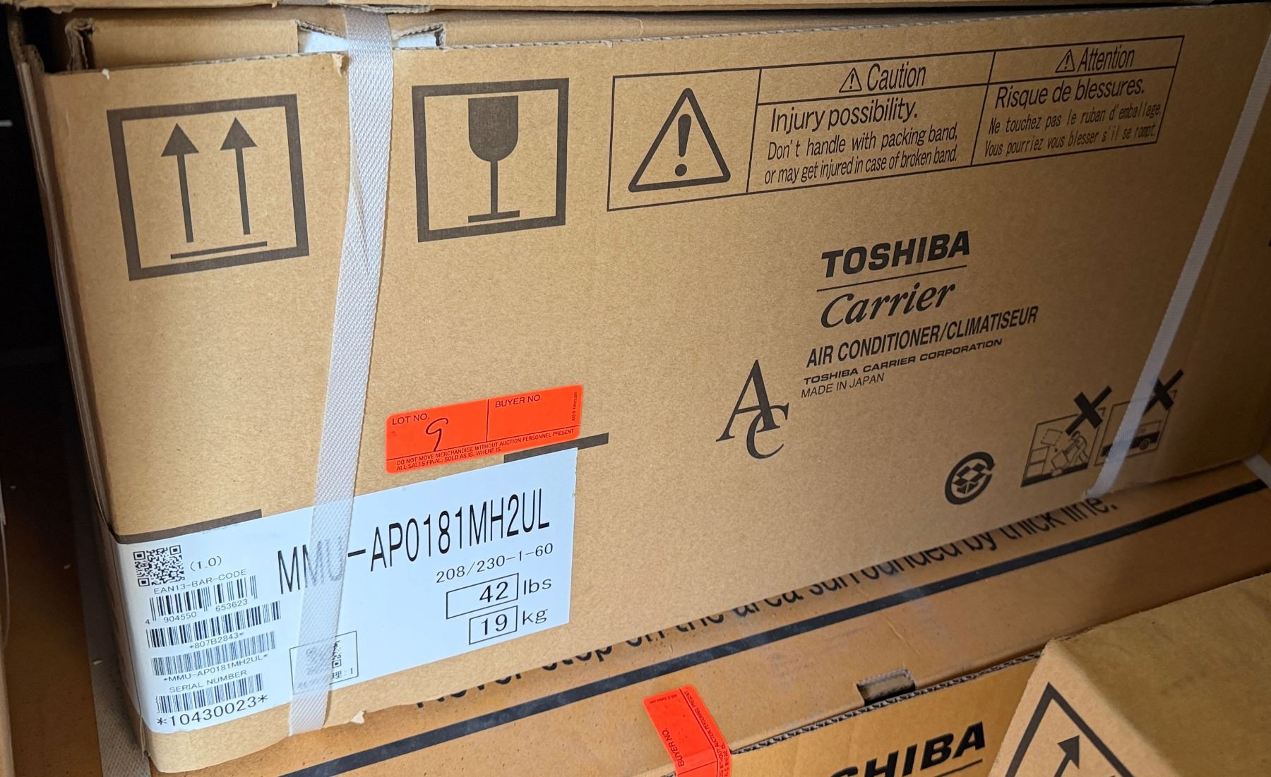 This is a stock photo representative of Unit. Carrier MMU-AP0184HPUL Toshiba Ductless Variable Flow (VRF) 18000 Btu Indoor Compact 4-Way Cassette Unit w/ RBC-AMS54E-UL Remote (approx retail $1,800)