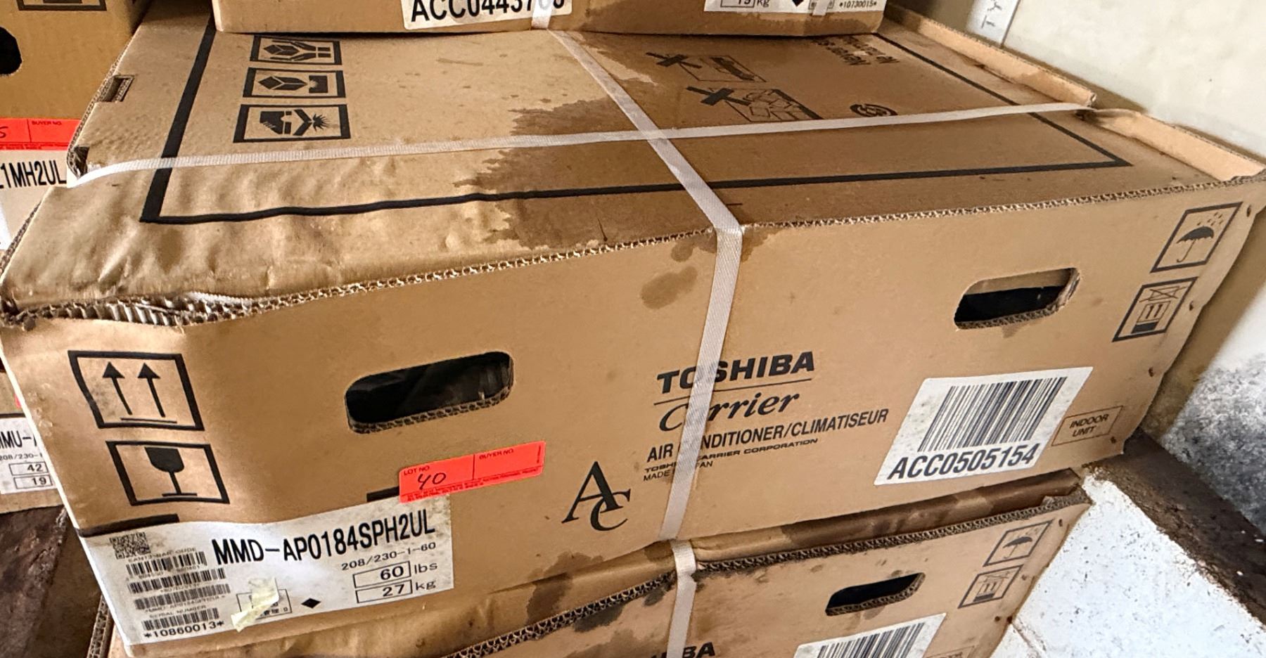 This is a stock photo representative of Unit. Carrier MMU-AP0184HP2UL Toshiba Ductless Variable Flow (VRF) 18000 Btu Indoor Compact 4-Way Cassette Unit w/ RBC-AMS54E-UL Remote (approx retail $1,000)