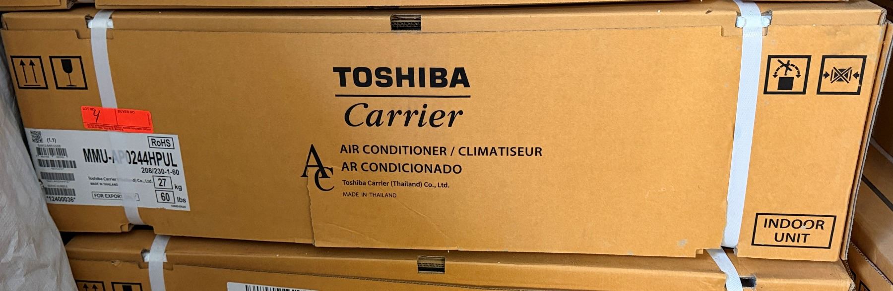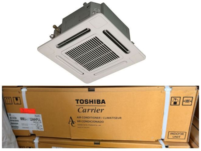 This is a stock photo representative of Unit. Carrier MMU-AP0244HPUL Toshiba Ductless Variable Flow (VRF) 24,000 Btu Indoor Heat Pump 4-Way Cassette Unit w/ RBC-AMS54E-UL Remote(approx retail $2,000)