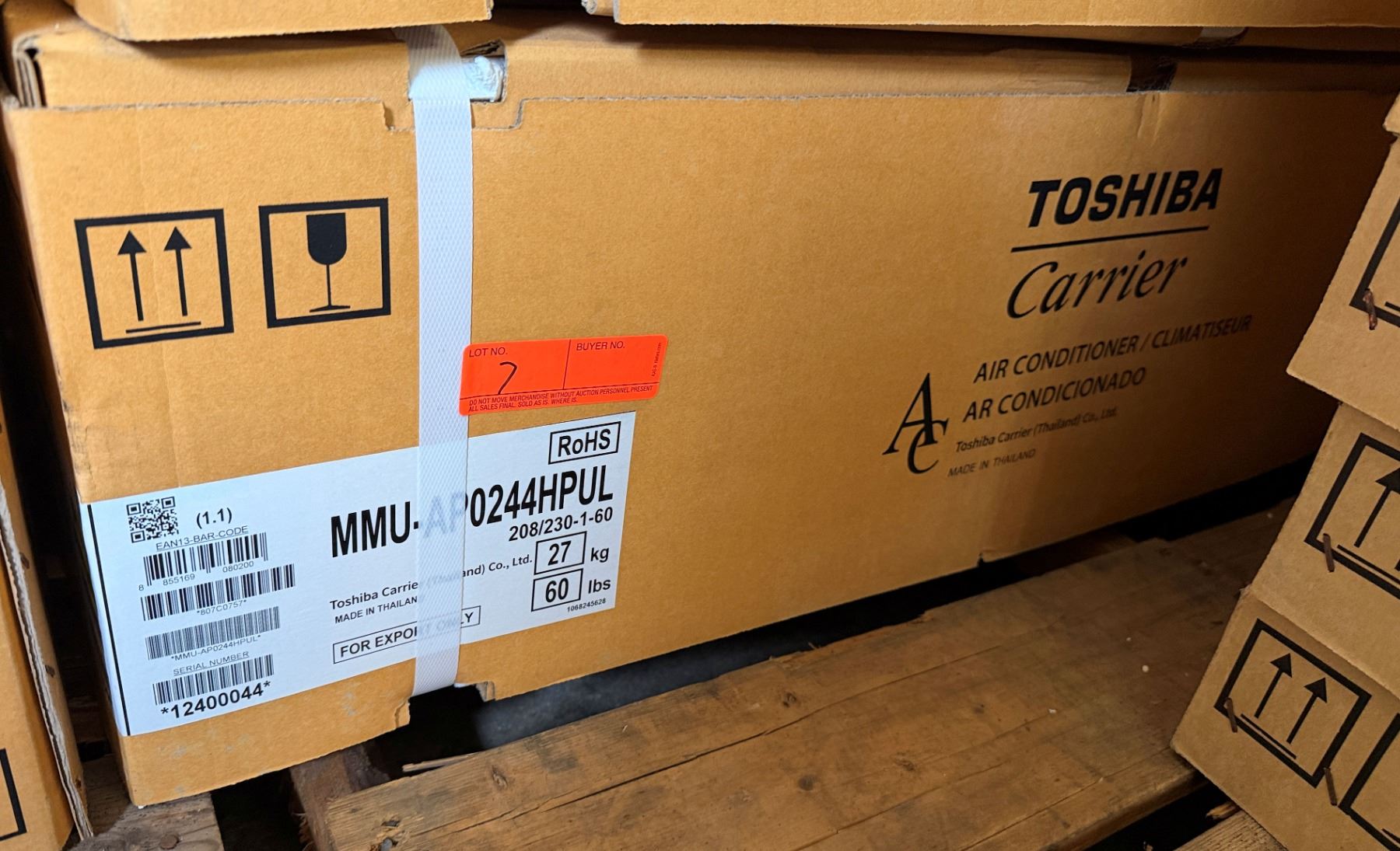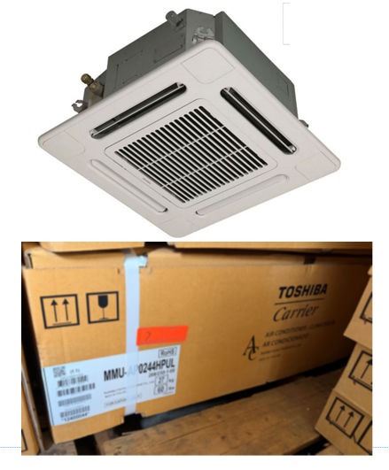 This is a stock photo representative of Unit. Carrier MMU-AP0244HPUL Toshiba Ductless Variable Flow (VRF) 24,000 Btu Indoor Heat Pump 4-Way Cassette Unit w/ RBC-AMS54E-UL Remote(approx retail $2,000)