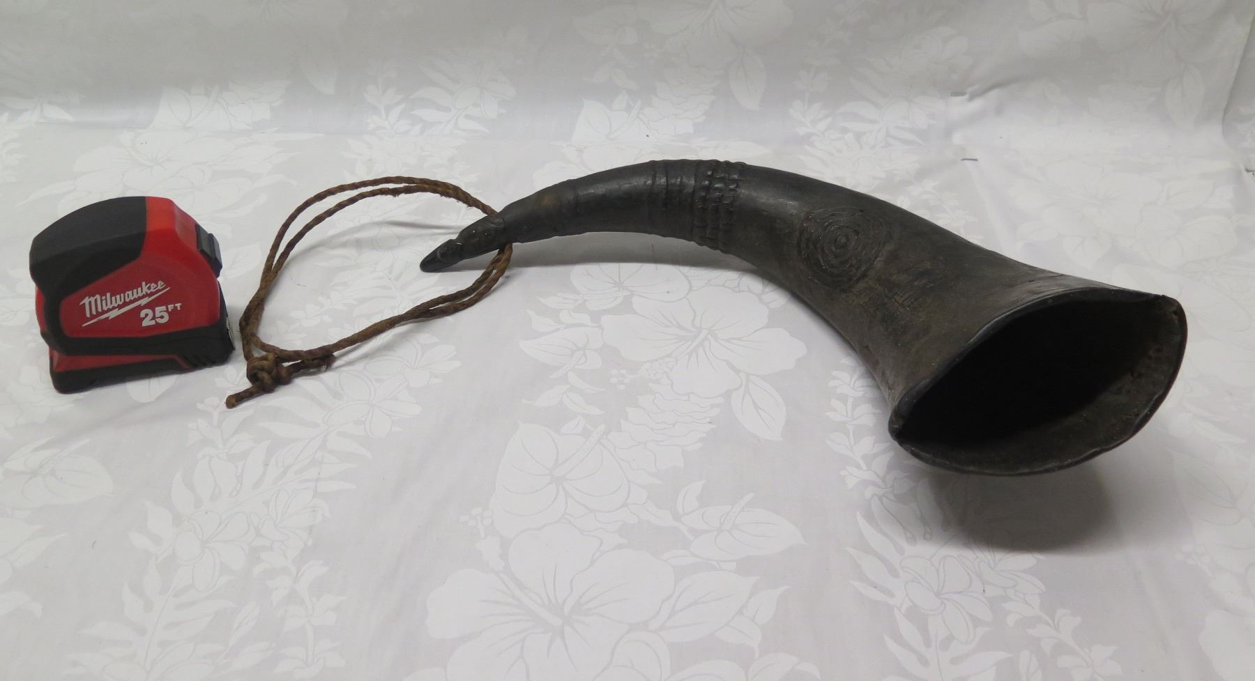 Carved Animal Horn Shaped Décor w/ Strap 14"L