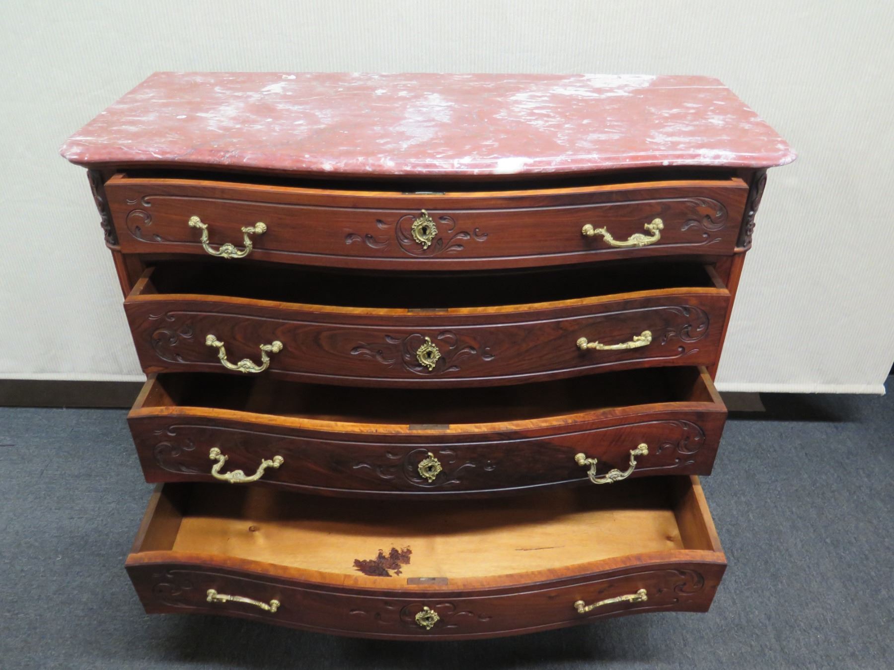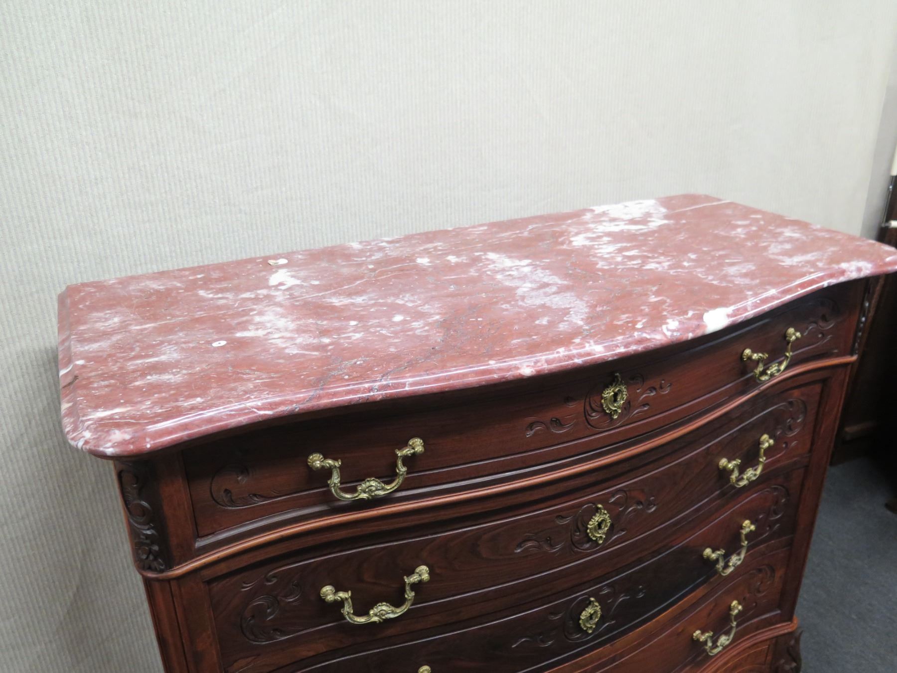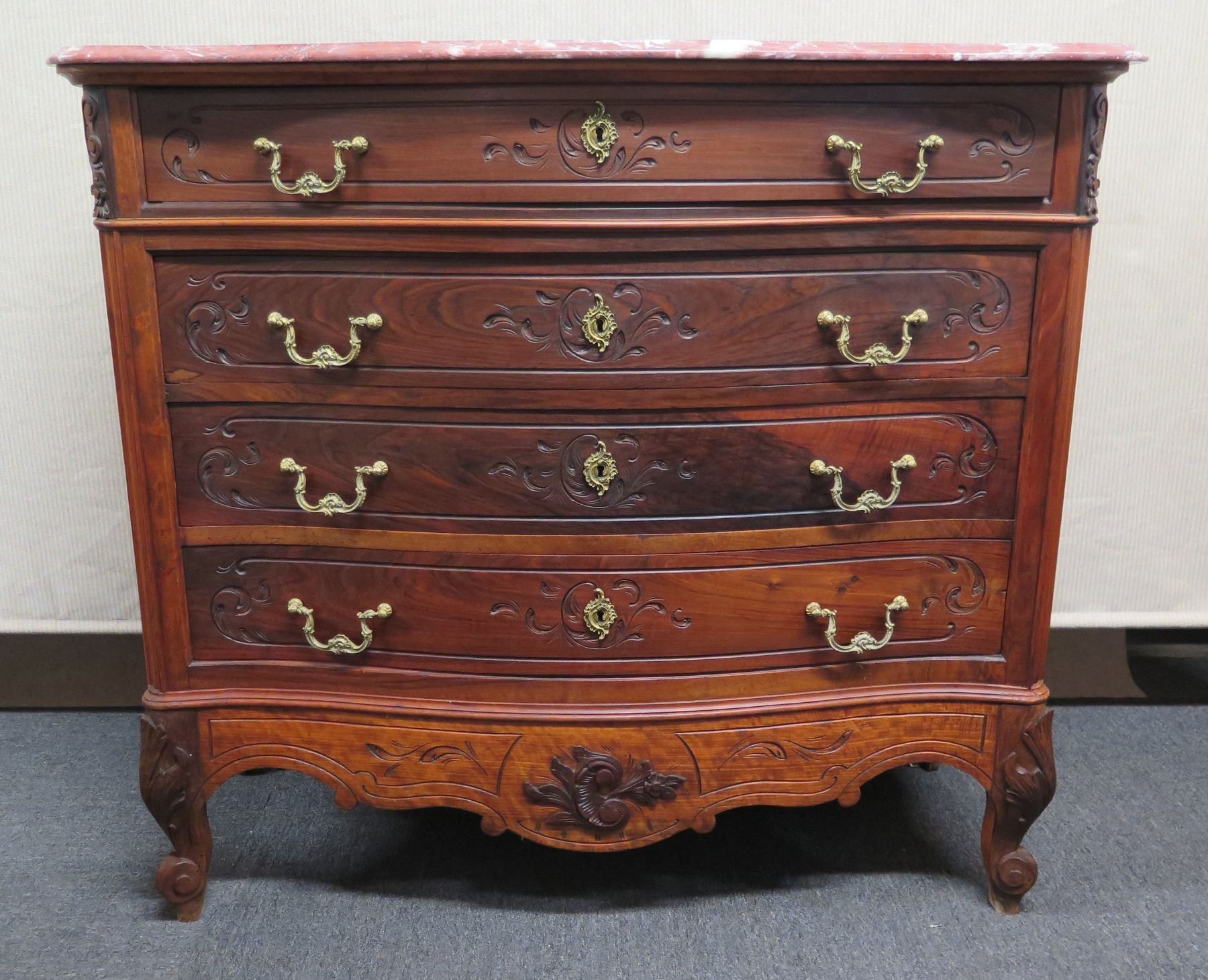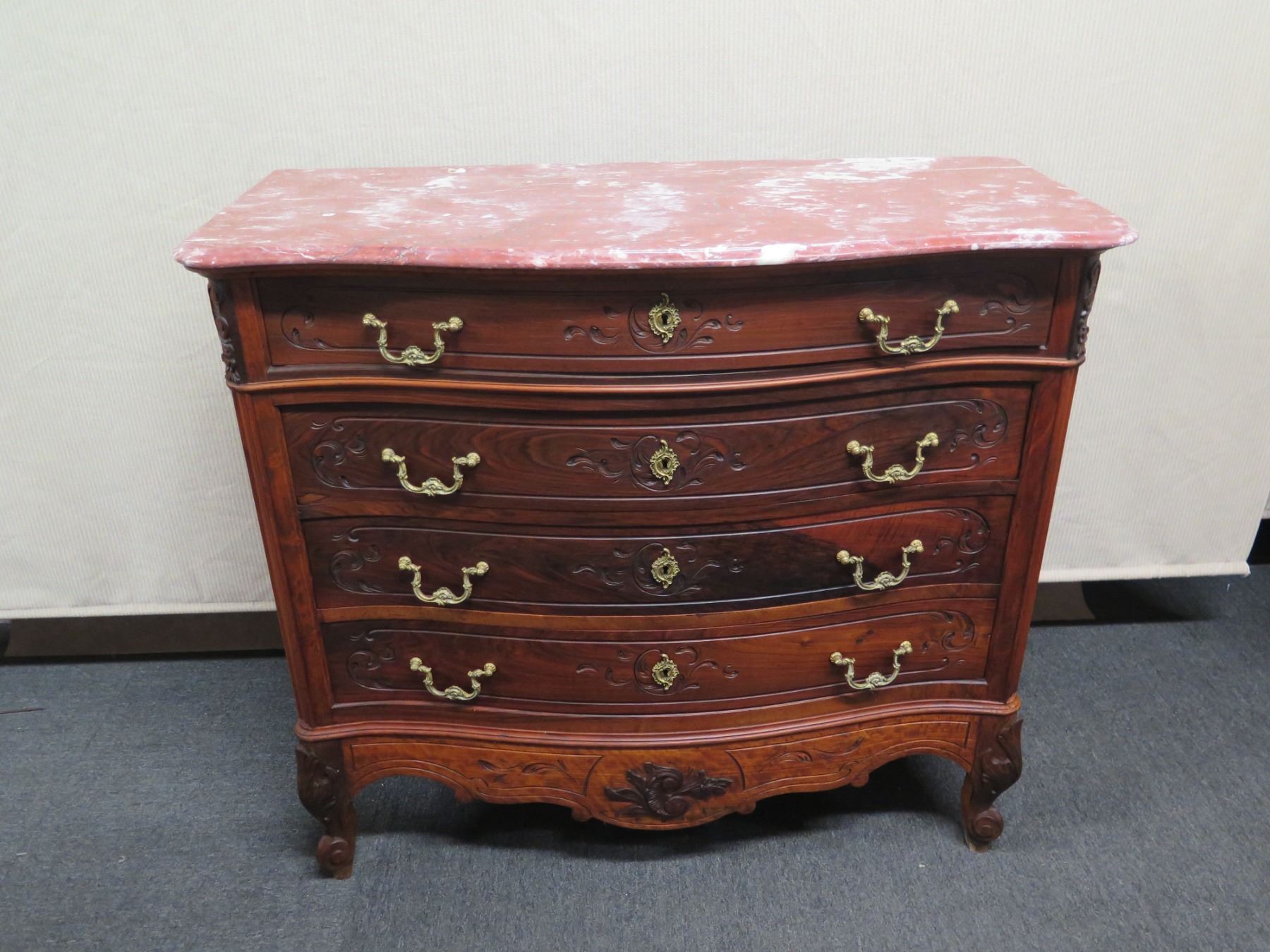 Carved Dresser w/ 4 Drawers & Stone Top 48" x 21" x 44"H