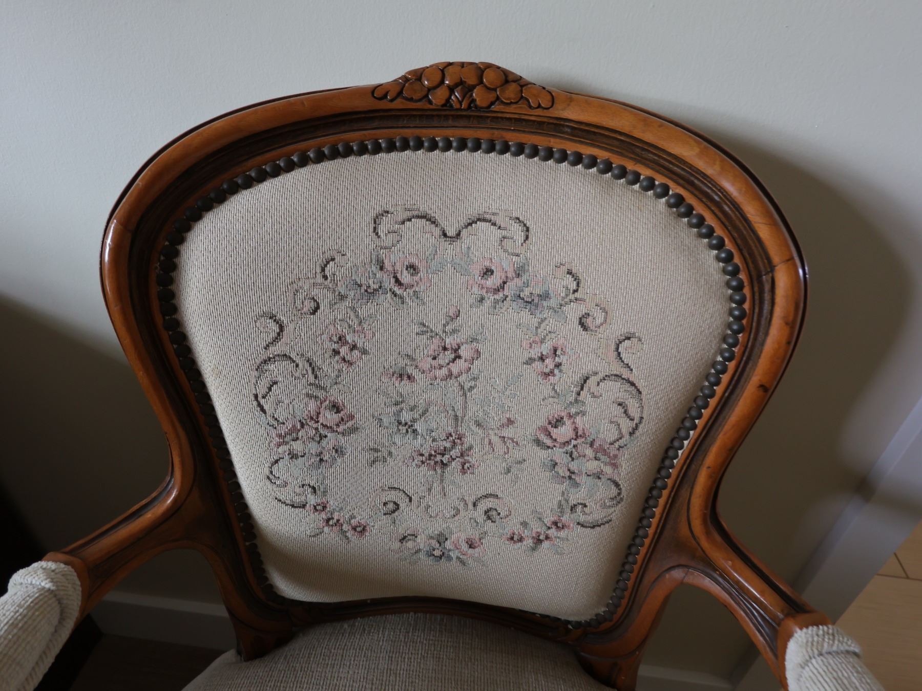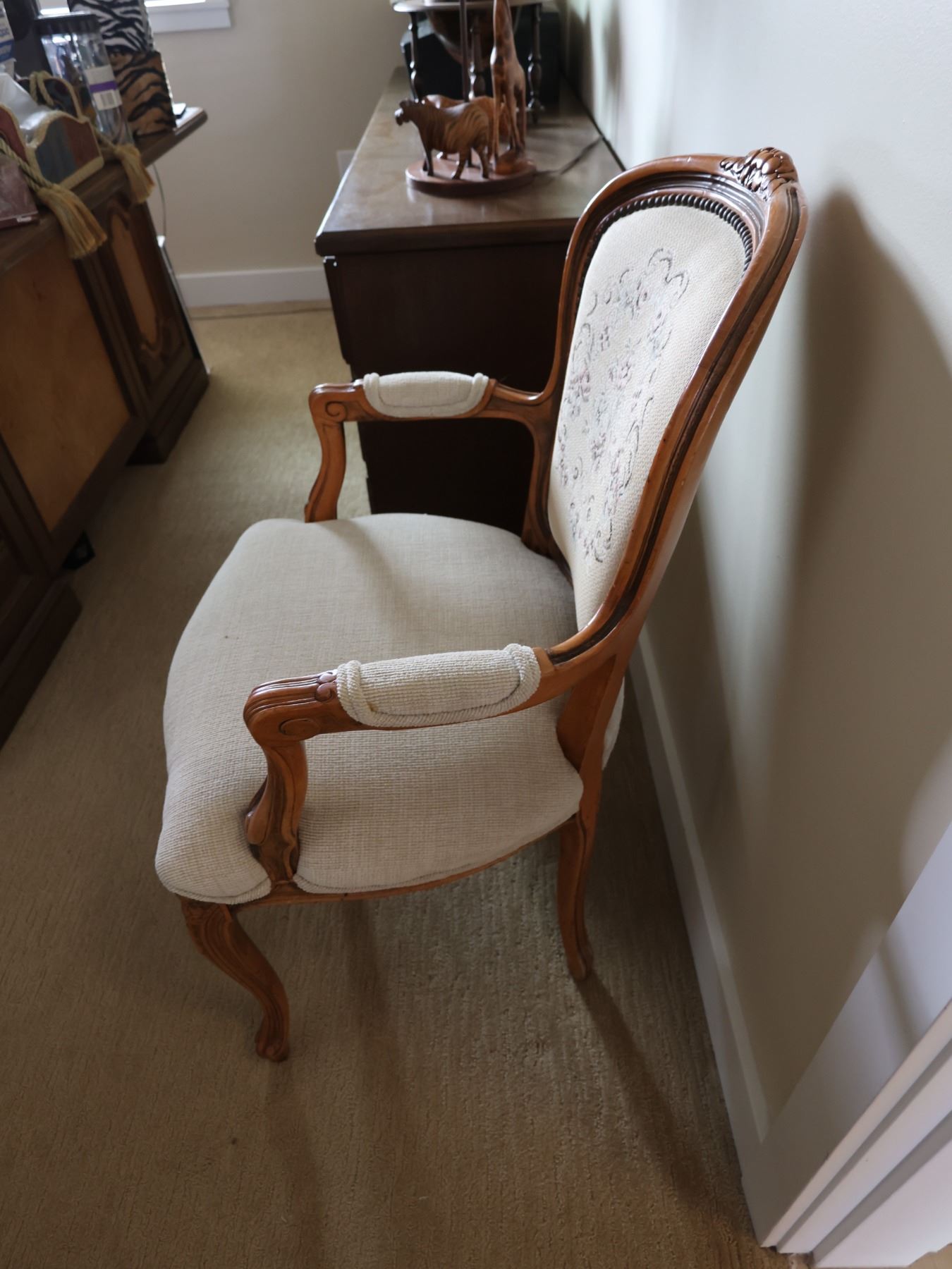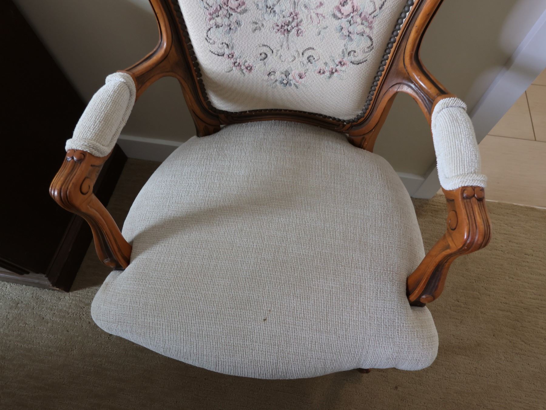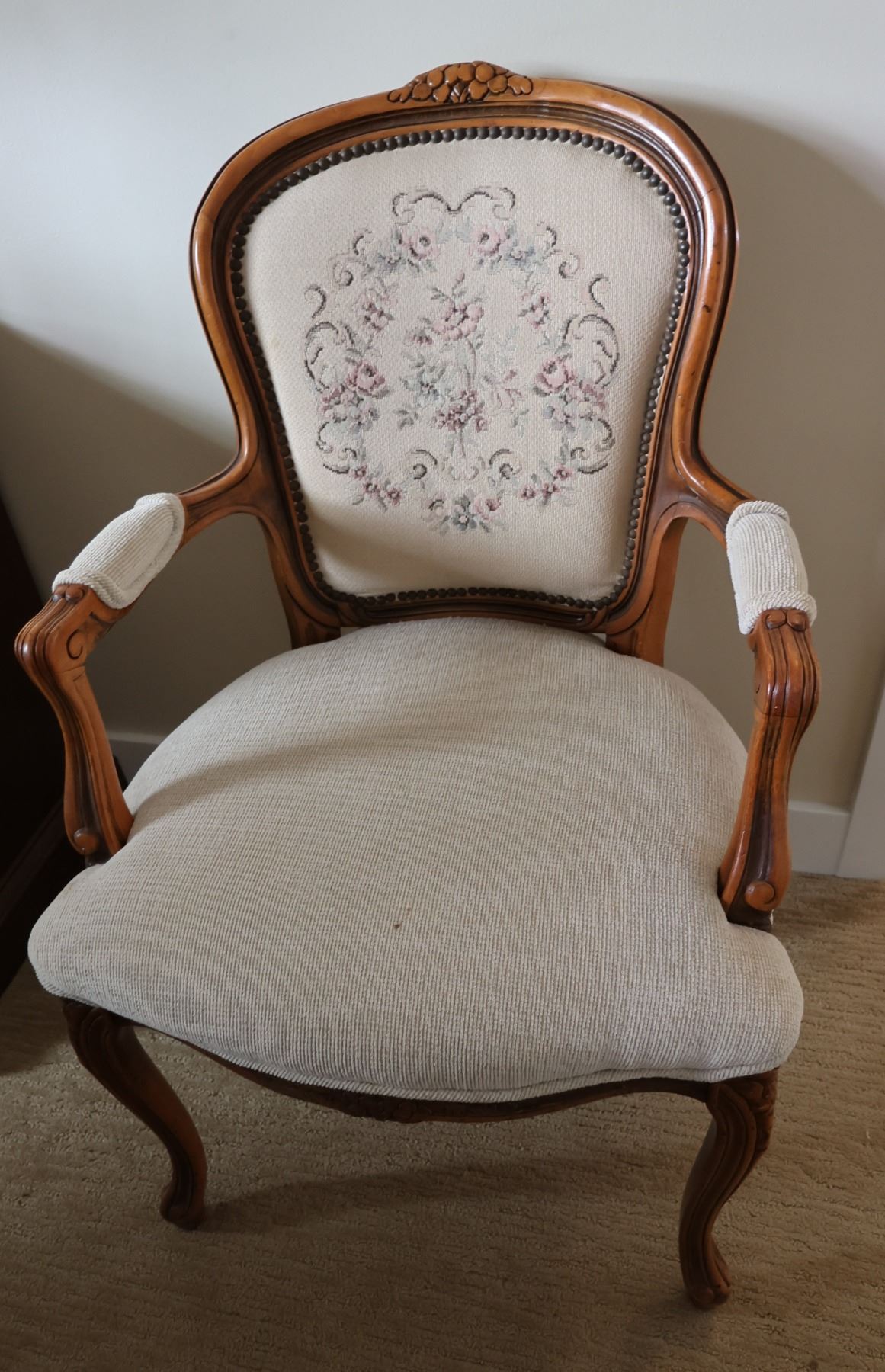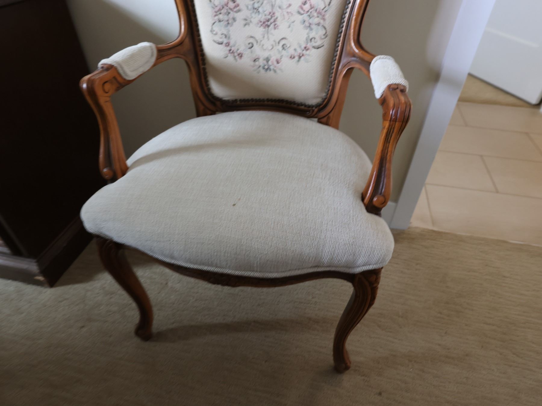 Carved French-Style Open Armchair w/ Cabriole Legs & Tapestry Floral Fabric 22" x 18" x 38"H