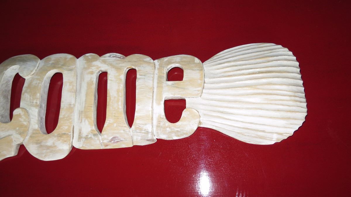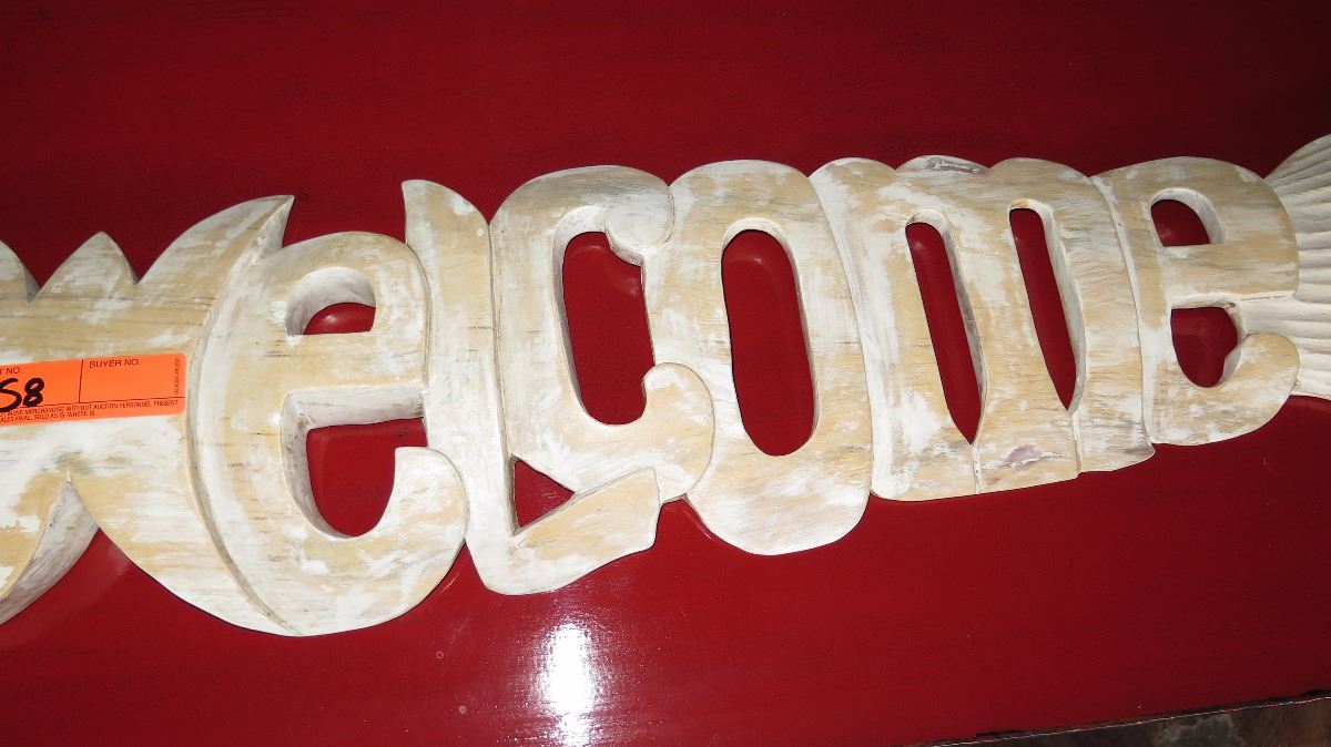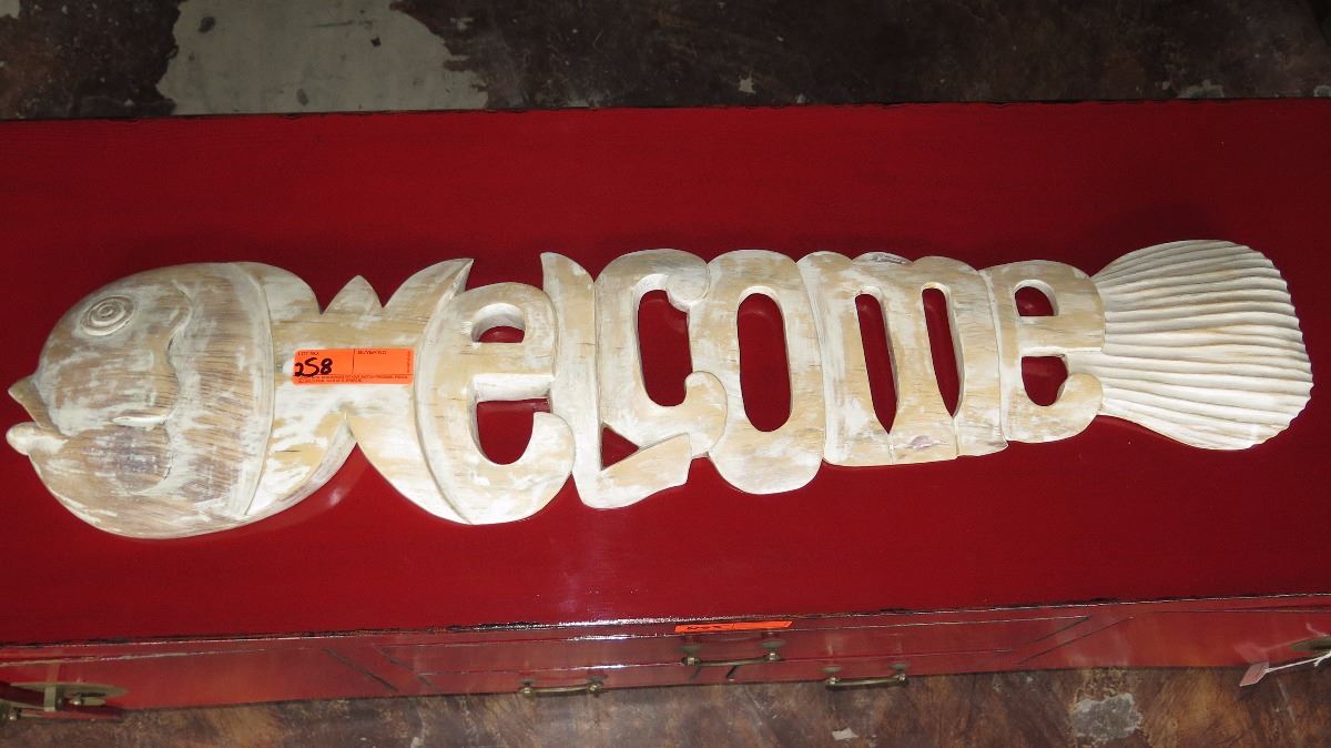 Carved Hardwood Fish Skeleton "Welcome" Accent - Lt. Wood, 40" L, 9" W (flat back)