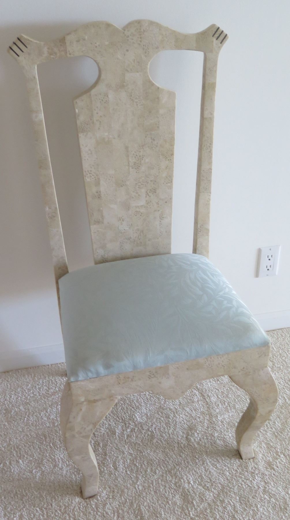 Carved High-Back Natural Stone Chair w/Upholstered Seat