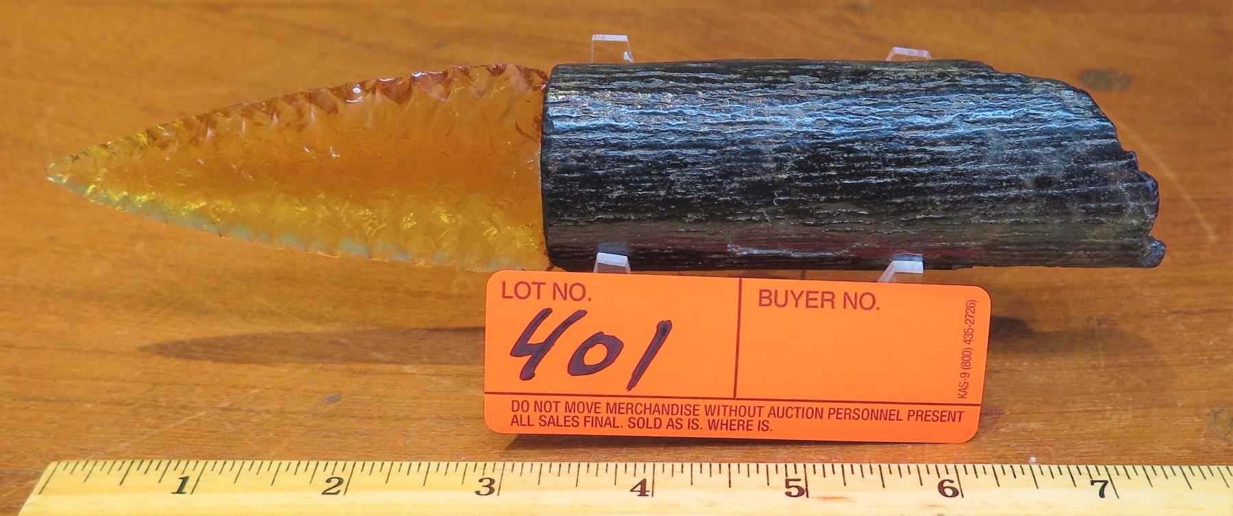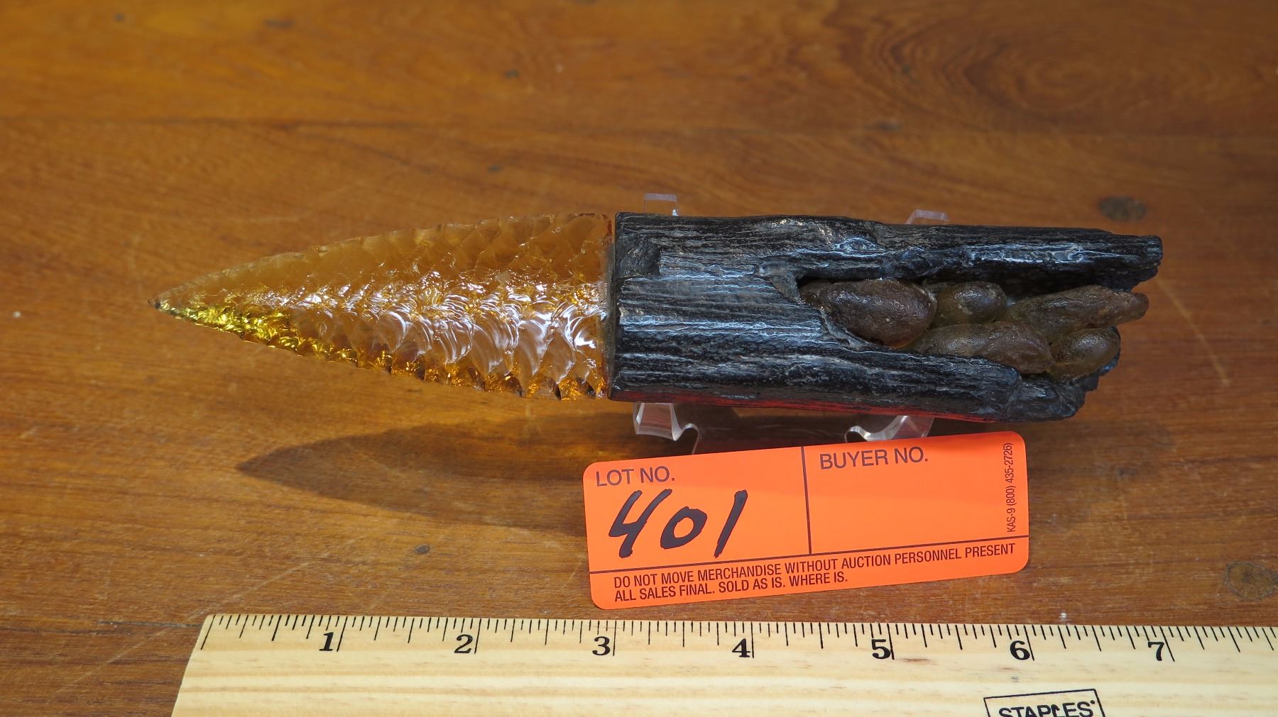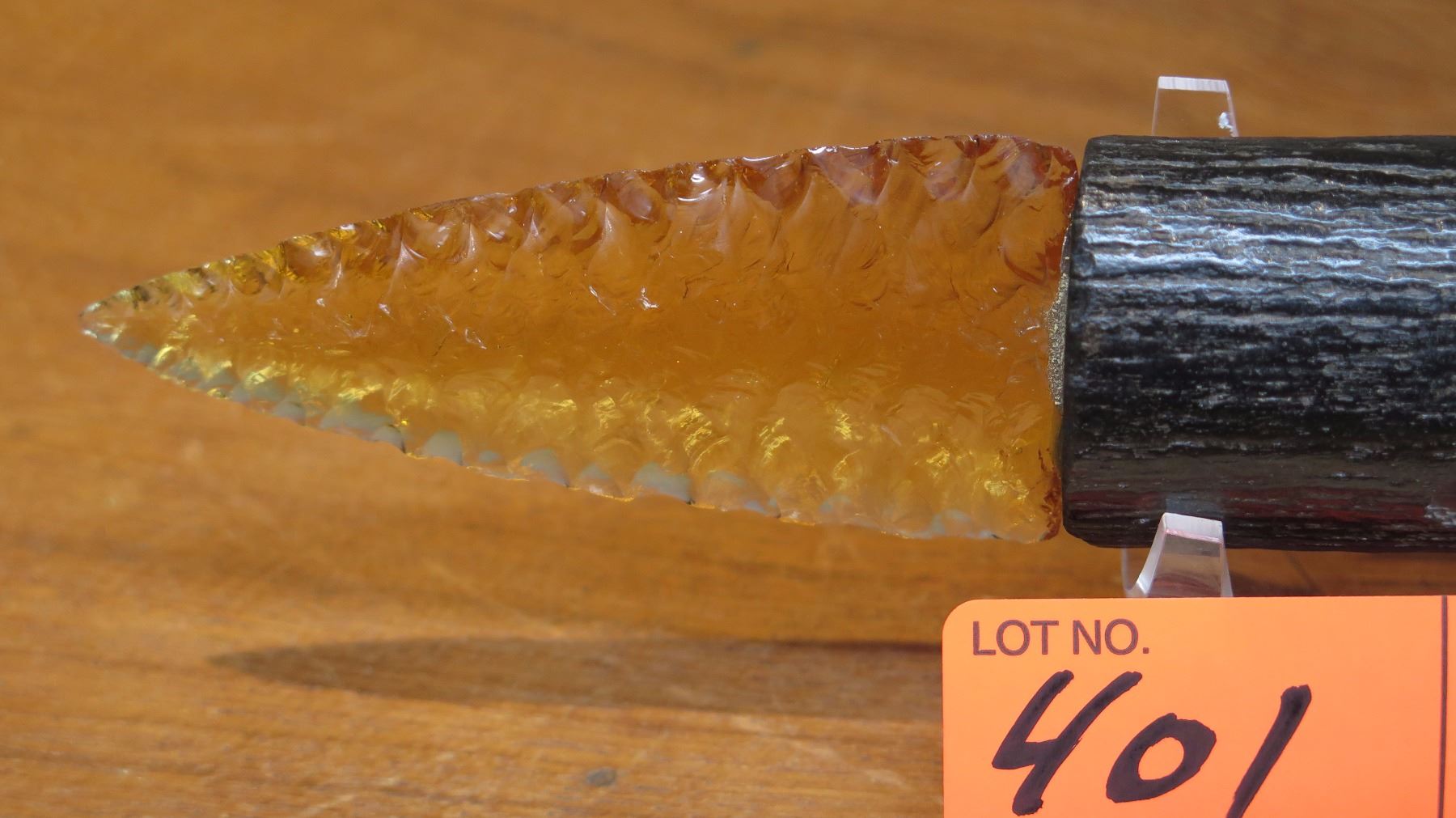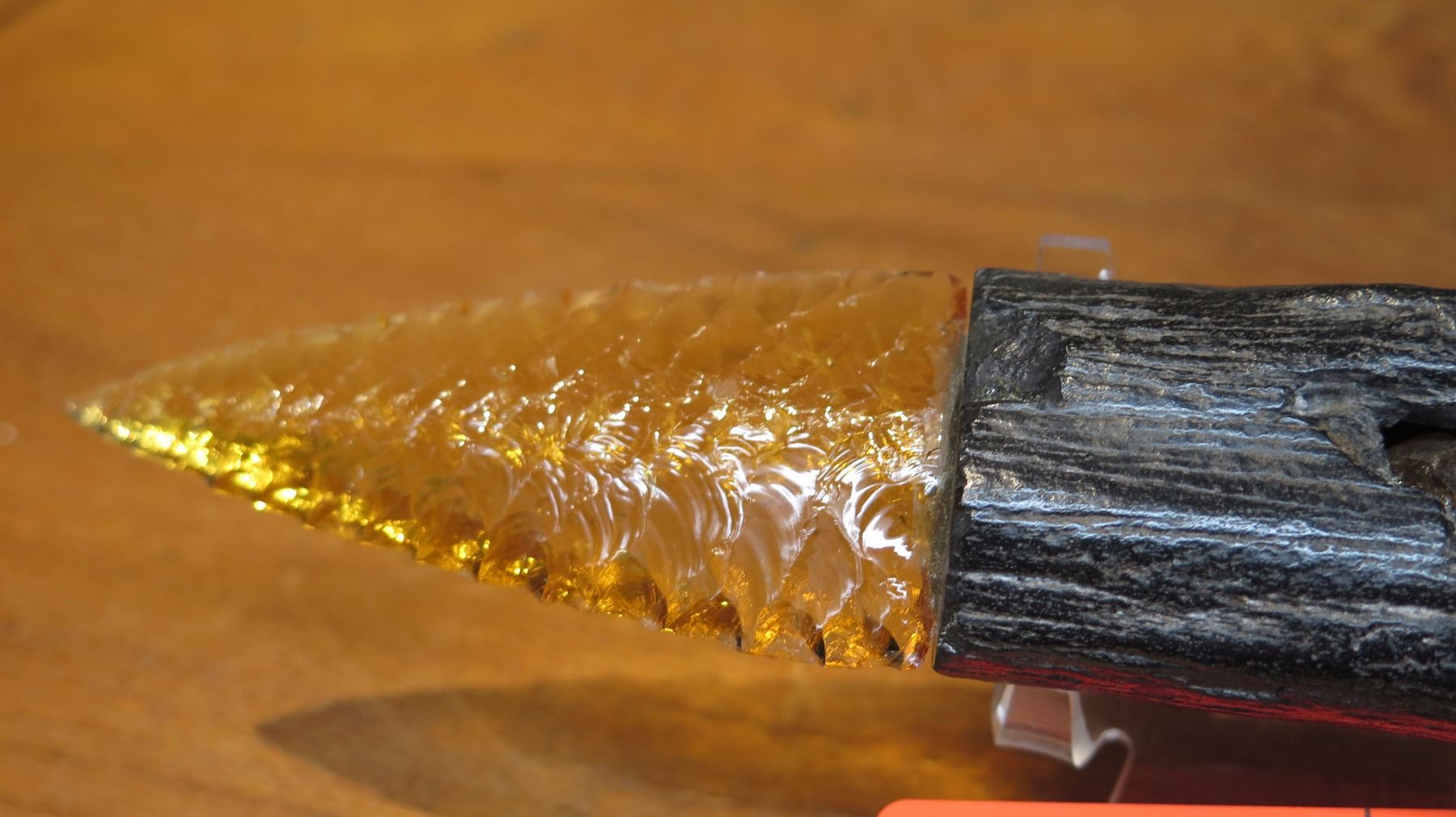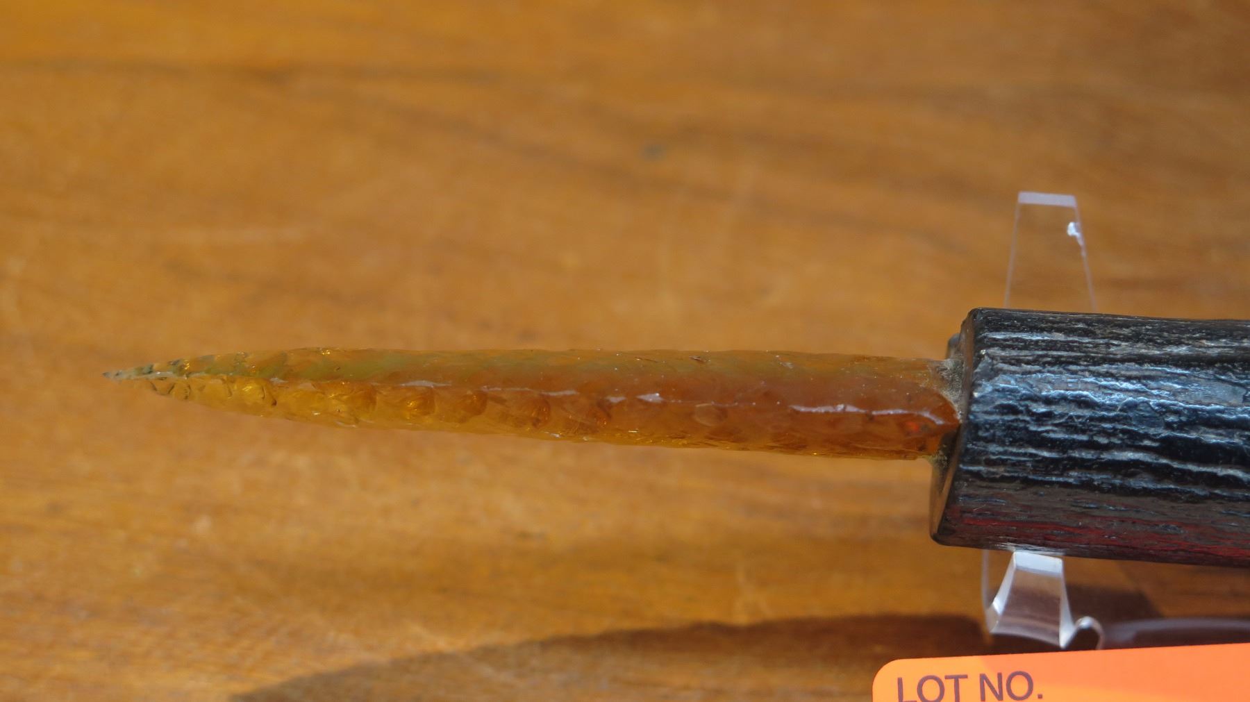 Carved Mineral (possibly glass?) Dagger - Arrowhead w/Petrified Wood Handle