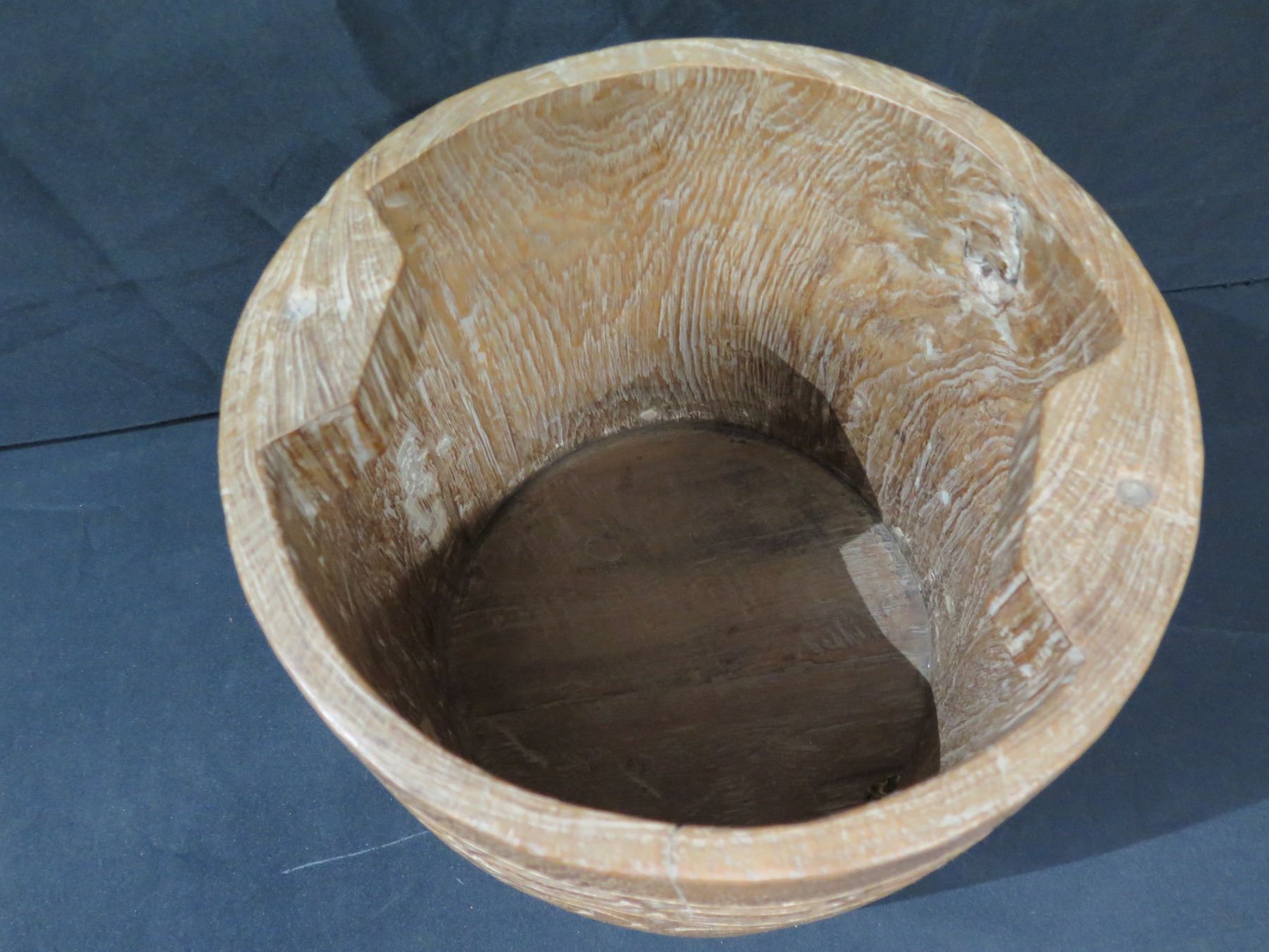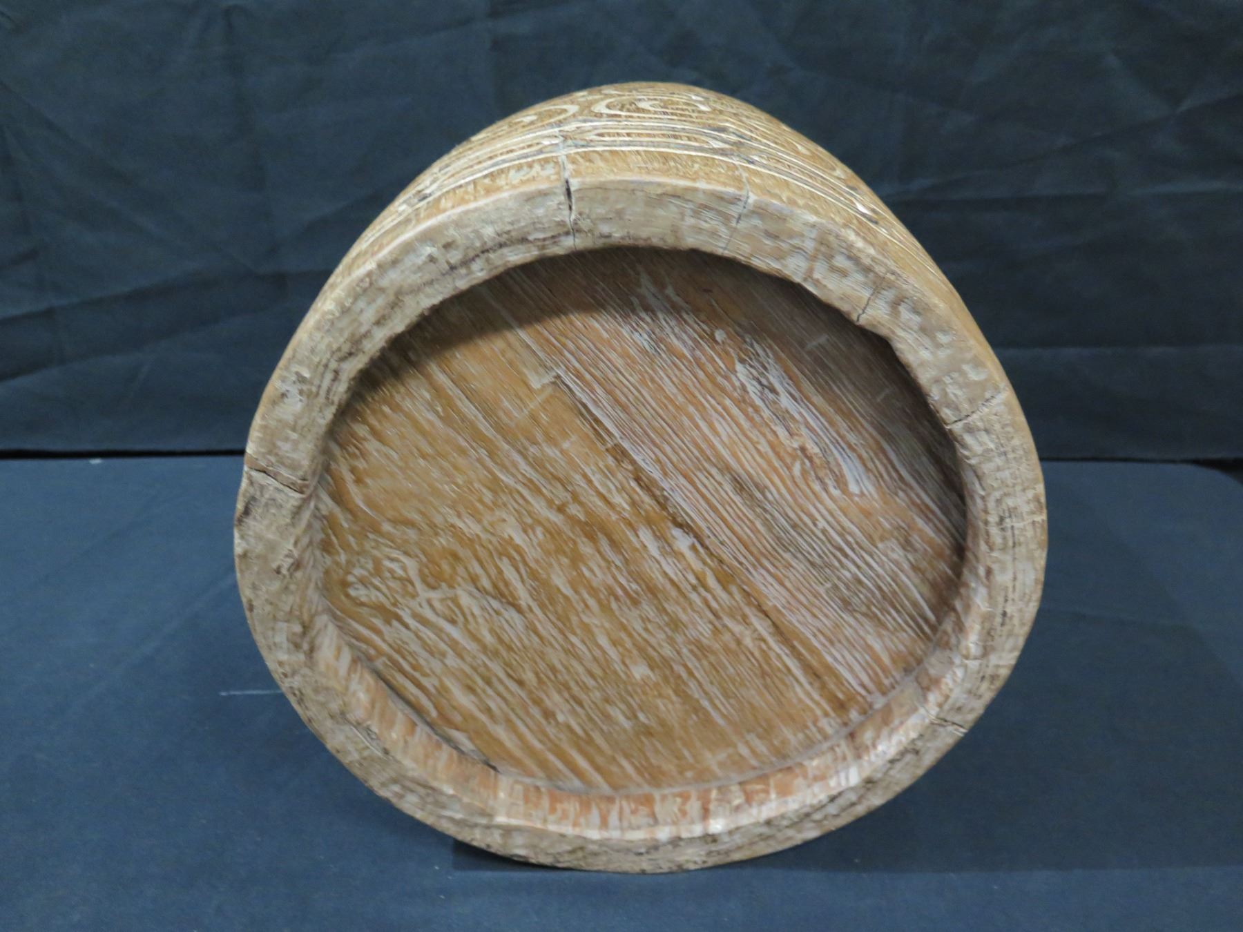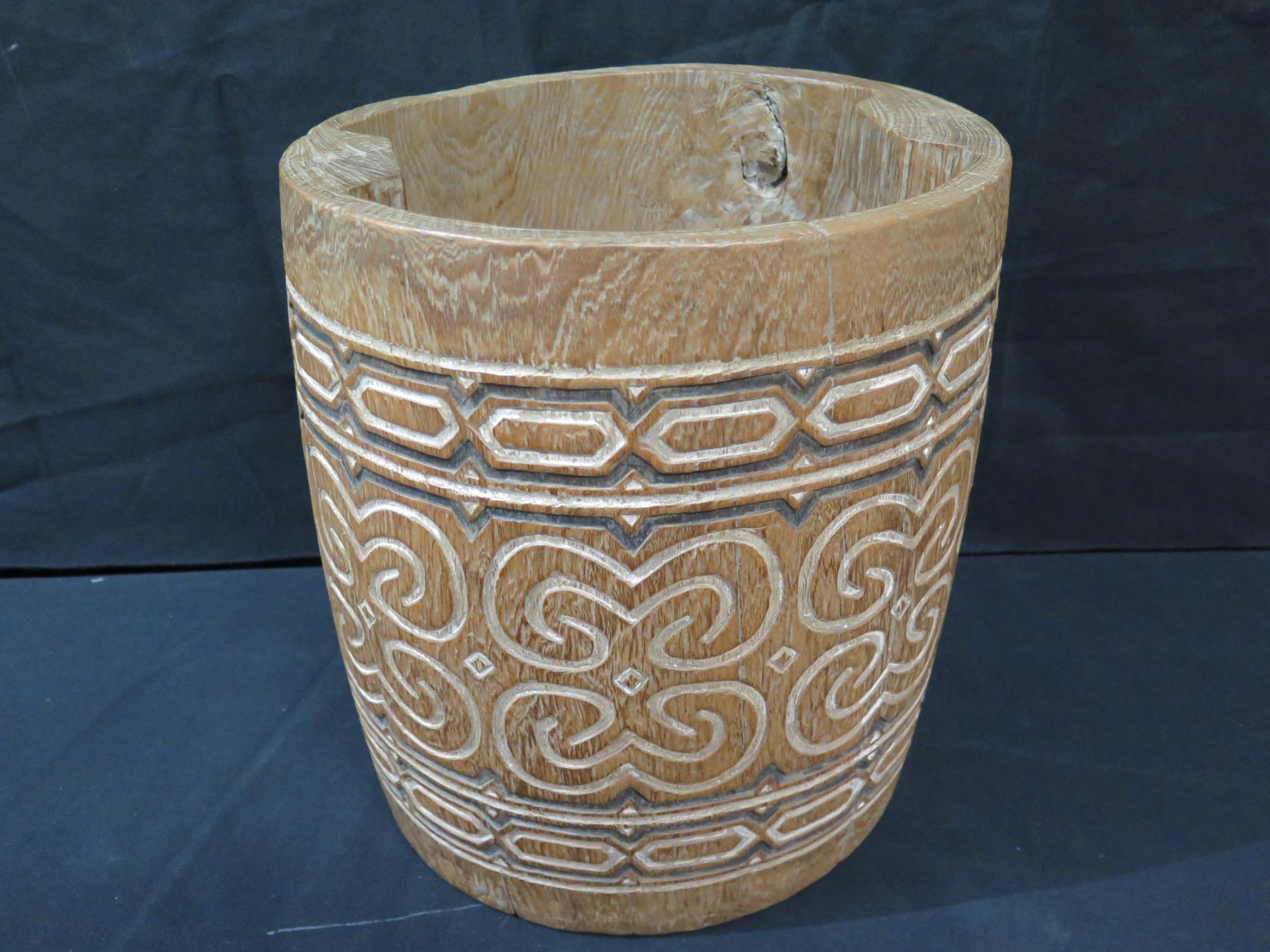 Carved Solid Wood Vessel w/ Etched Patterns, 15.5" H, 13" Dia.