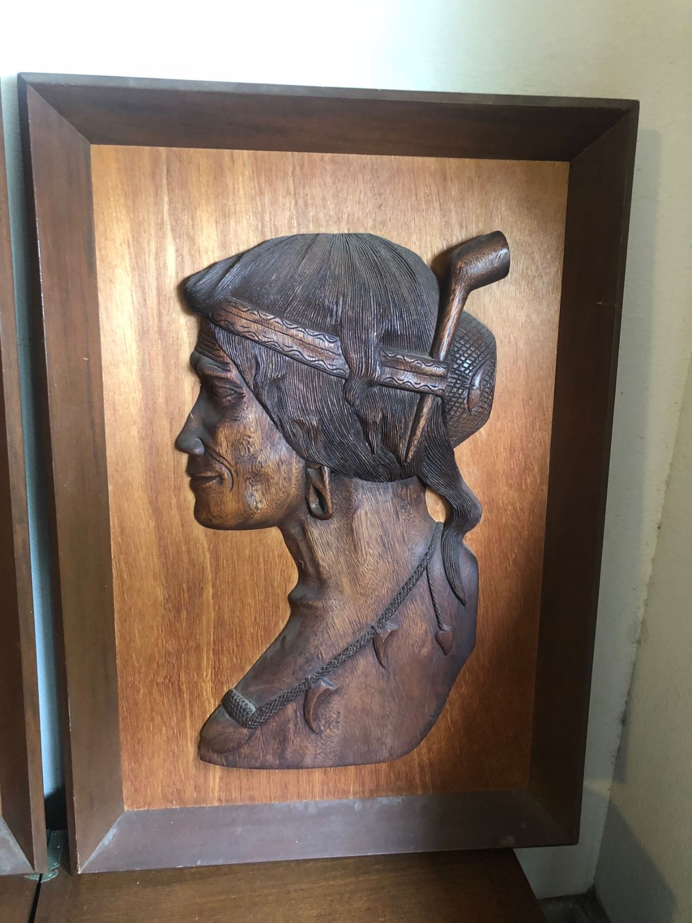Carved Wall Art, Bas Relief Carving, Primitive Man & Woman 24x34