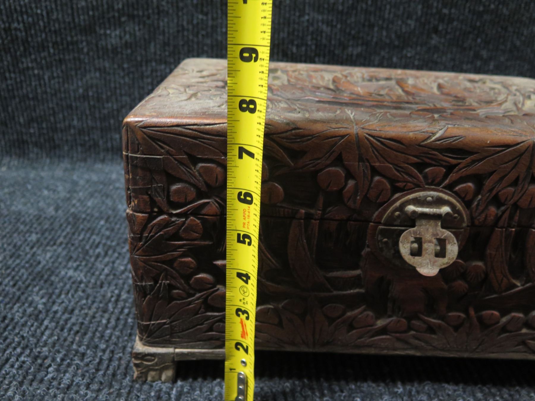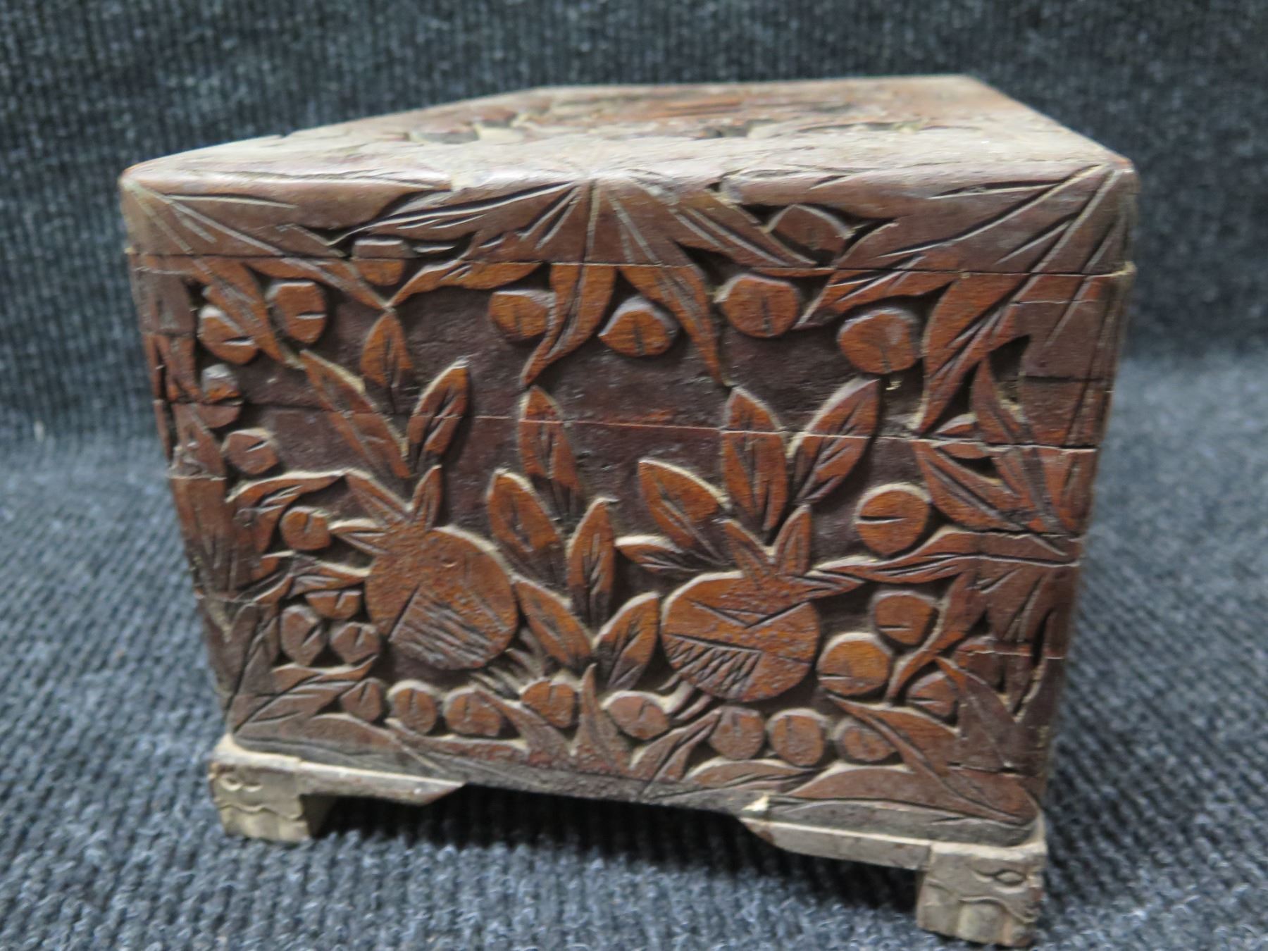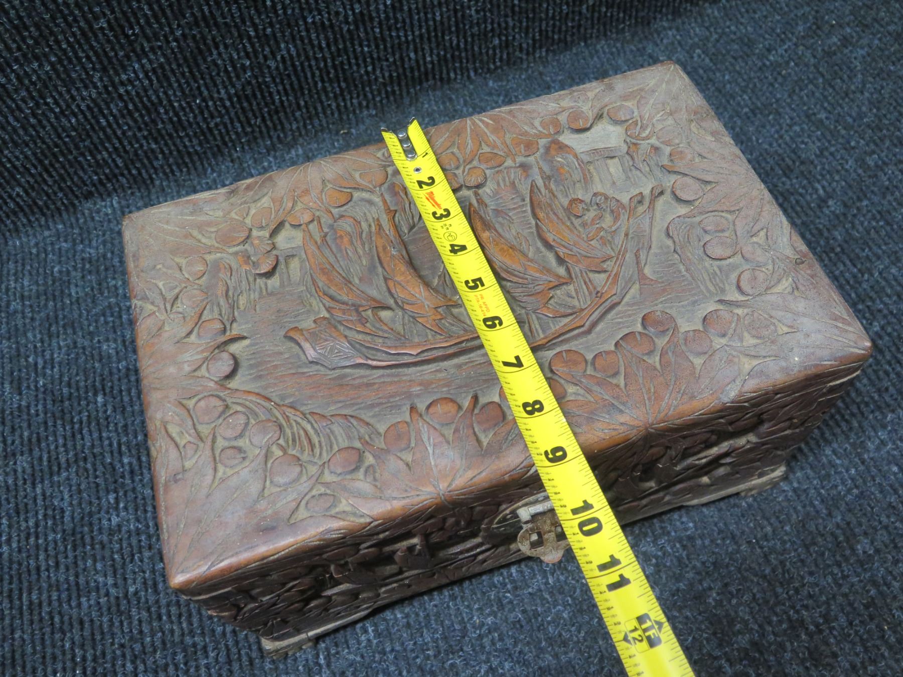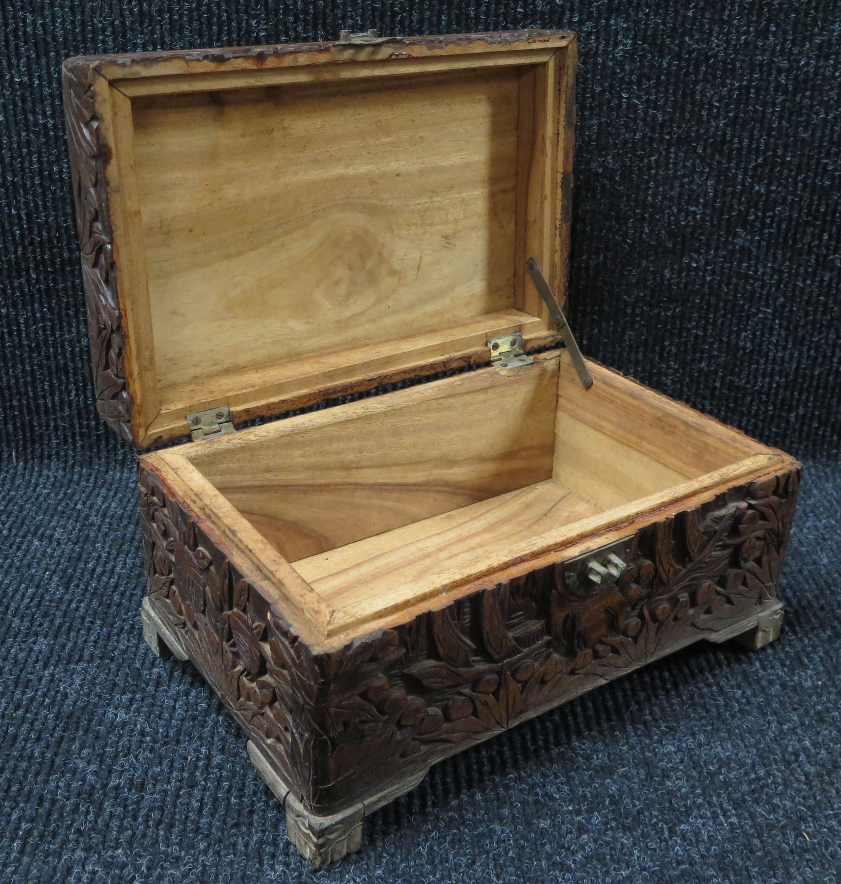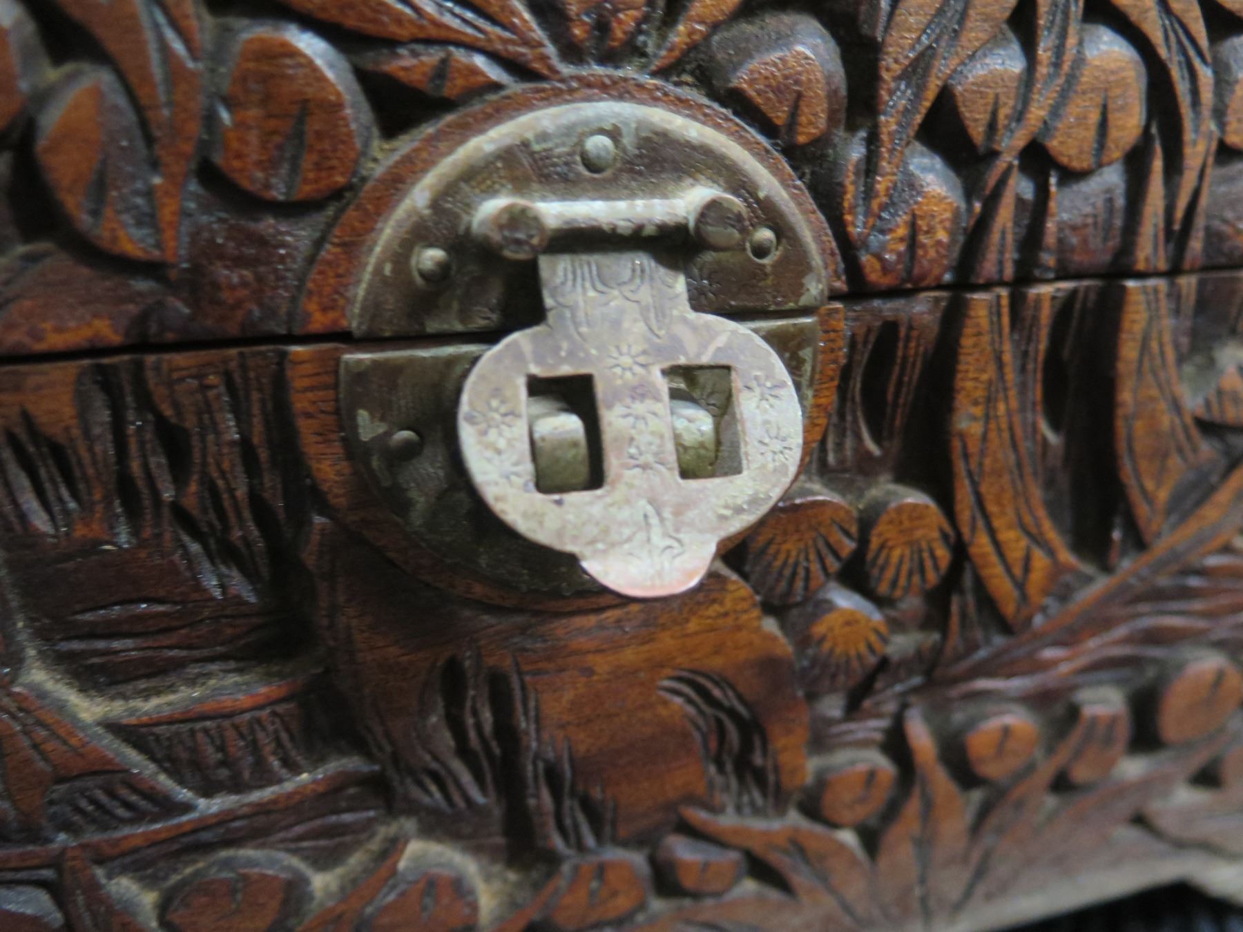 Carved Wooden Box w/ Metal Hardware 13"x9"x7.5"H