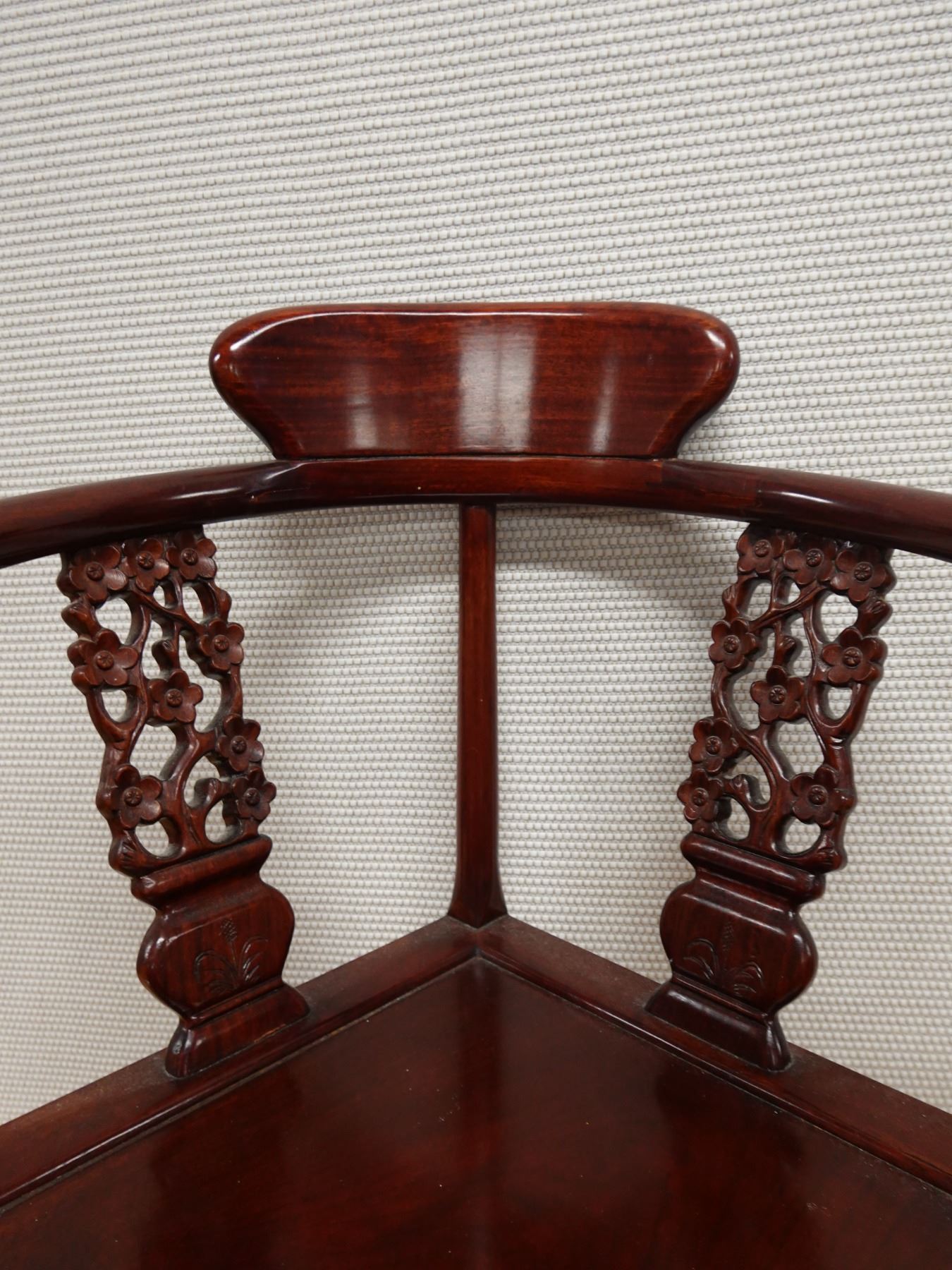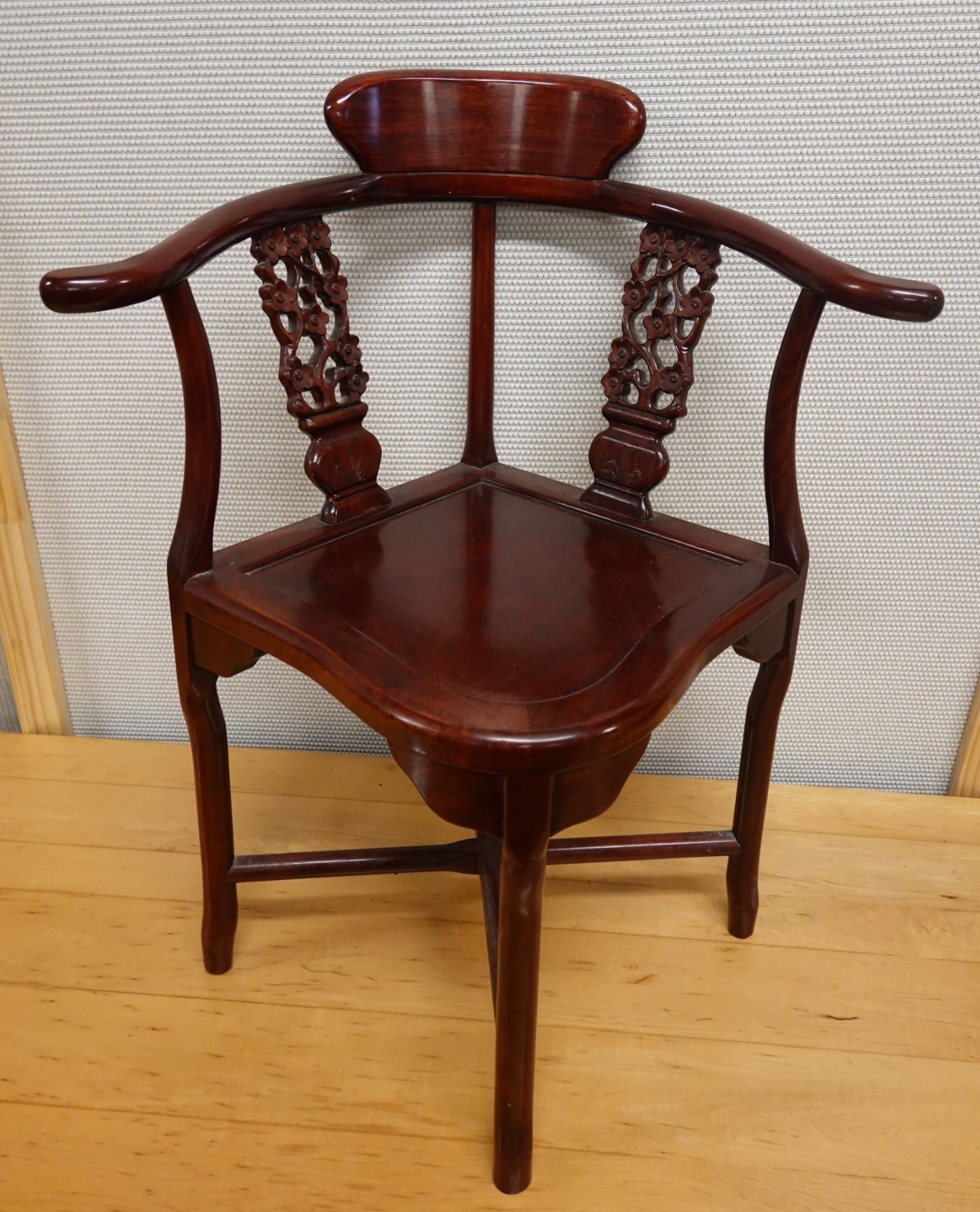 Carved Wooden Chinese Corner Chair 21" x 20" x 33"H