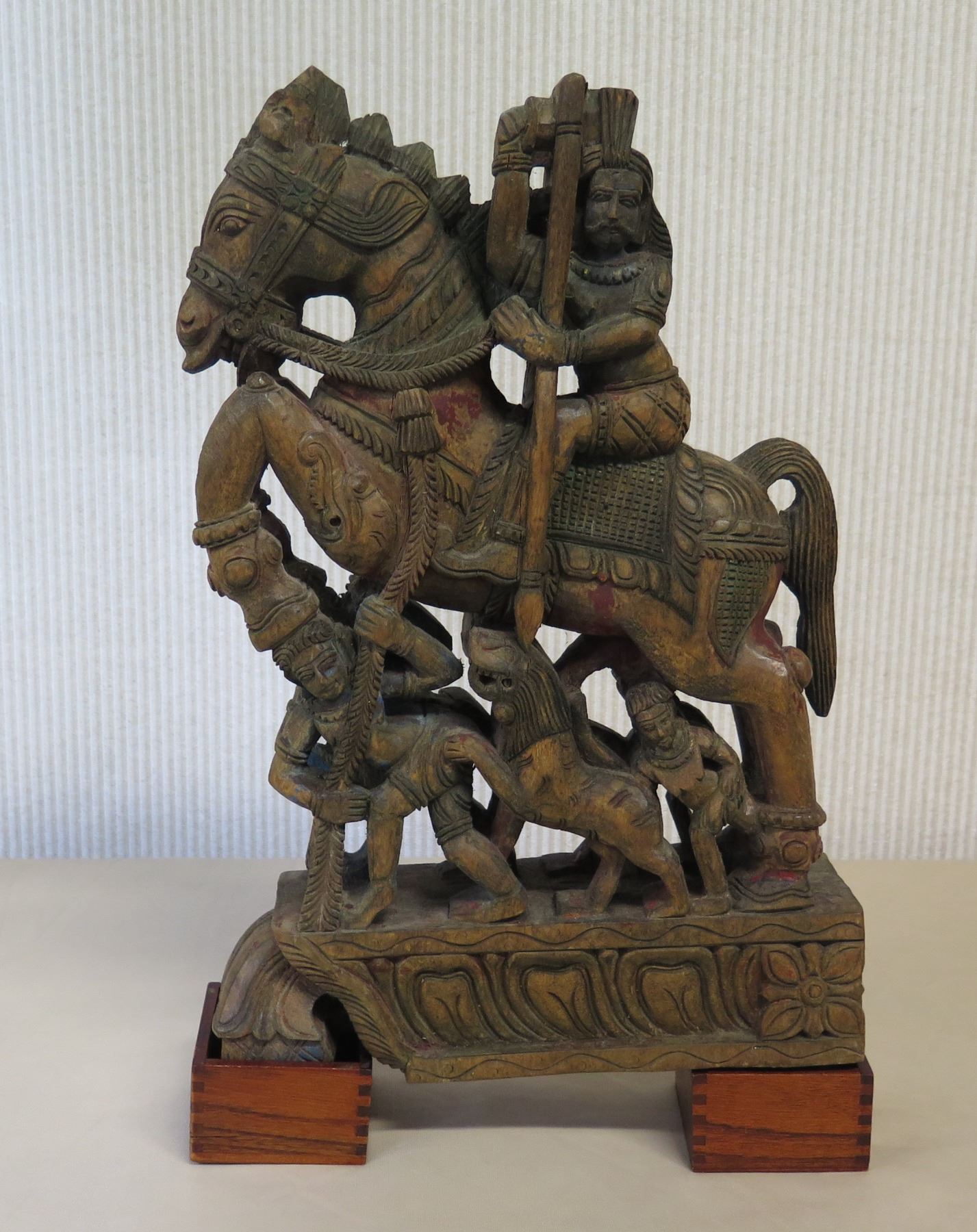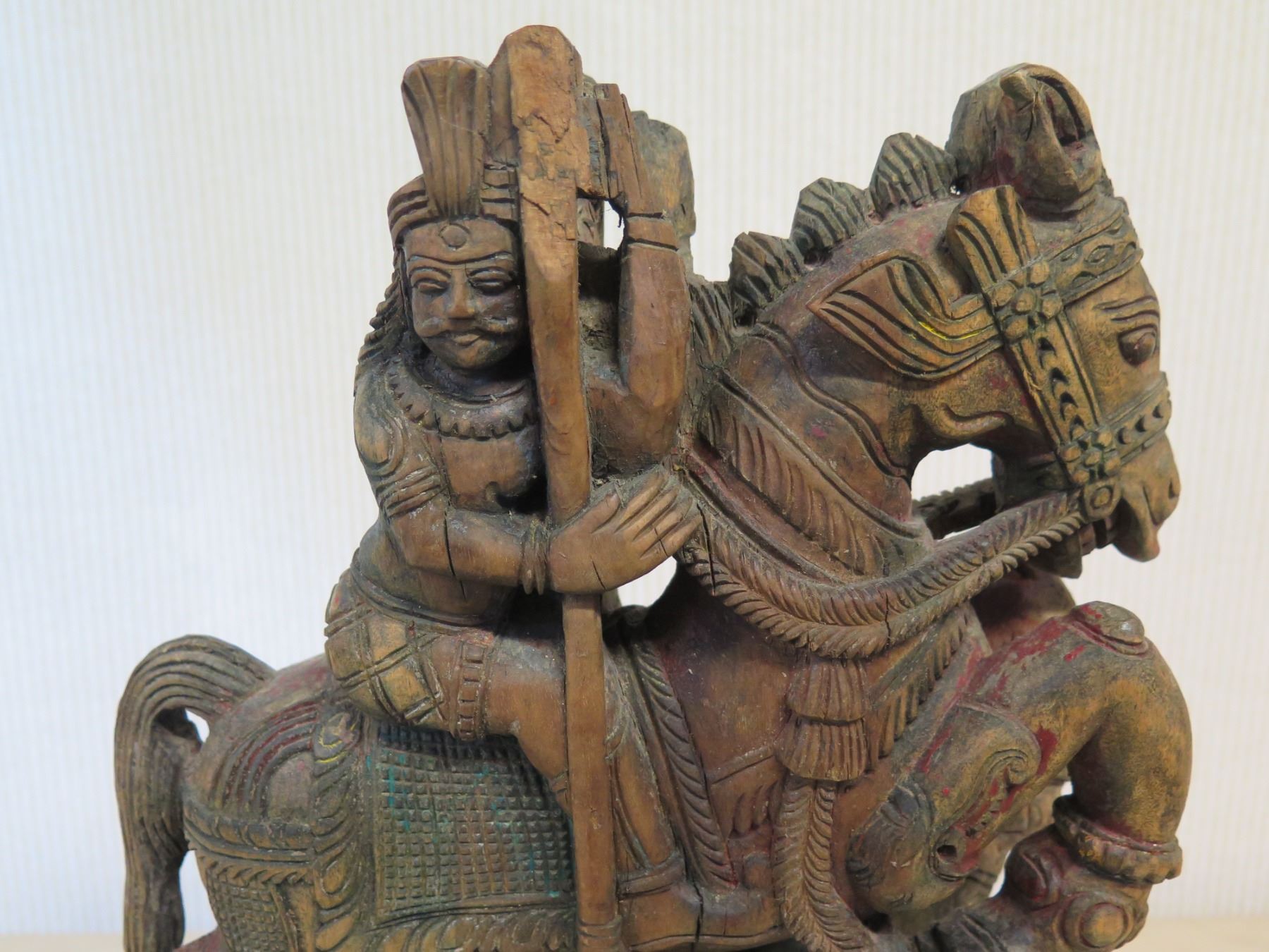 Carved Wooden Horse w/ Rider & Maker's Mark 12" x 3" x 19"H