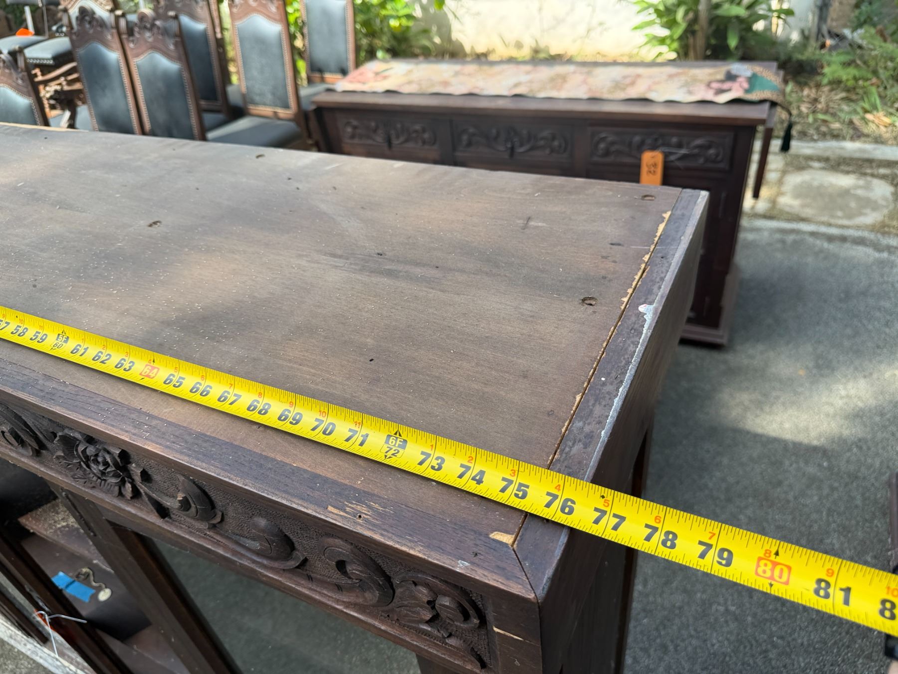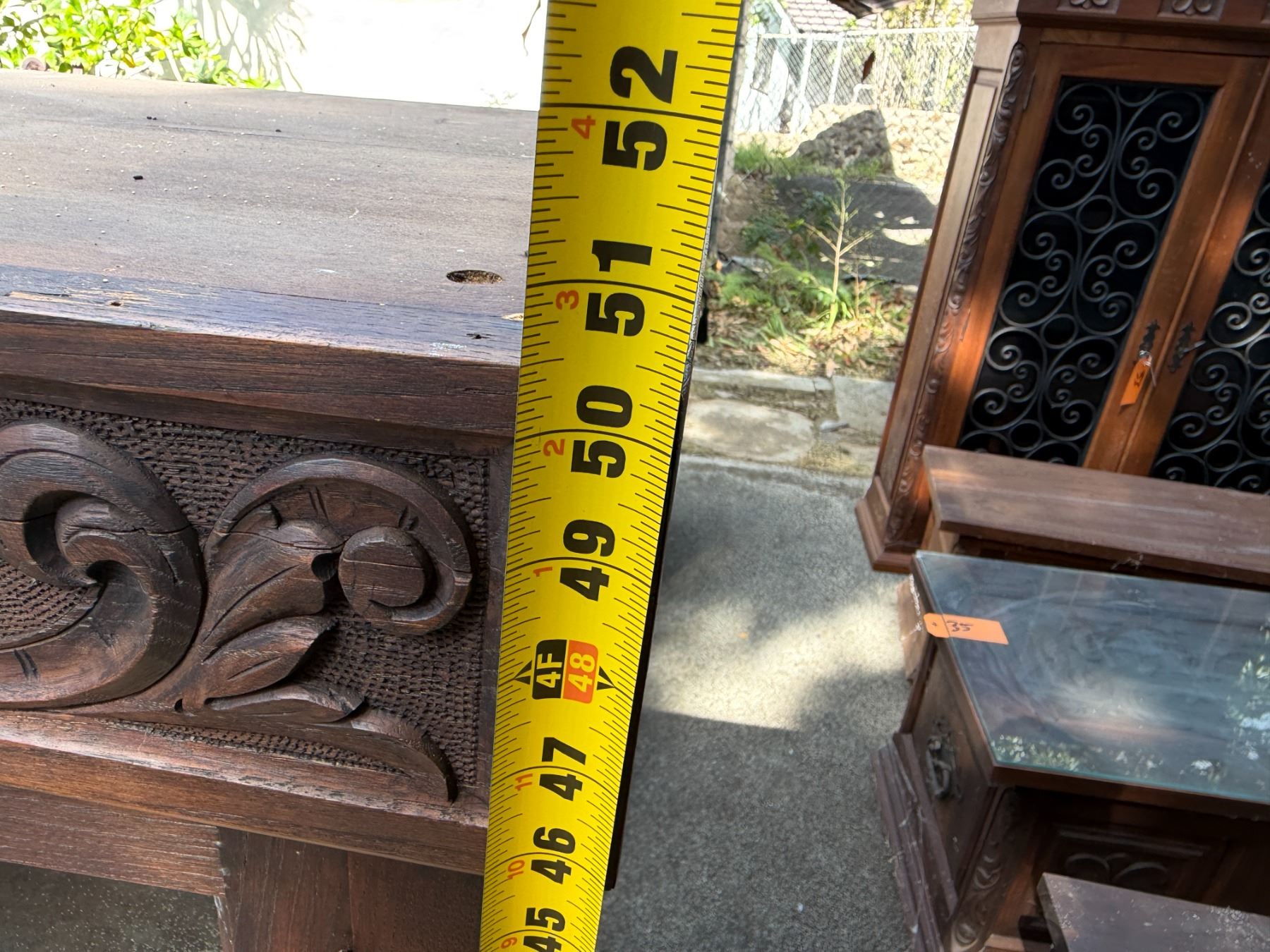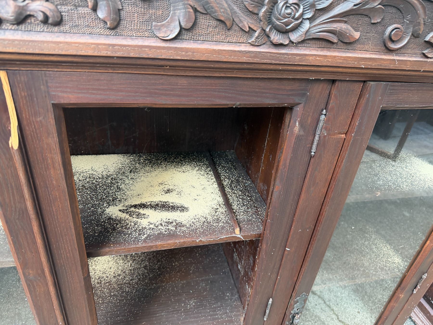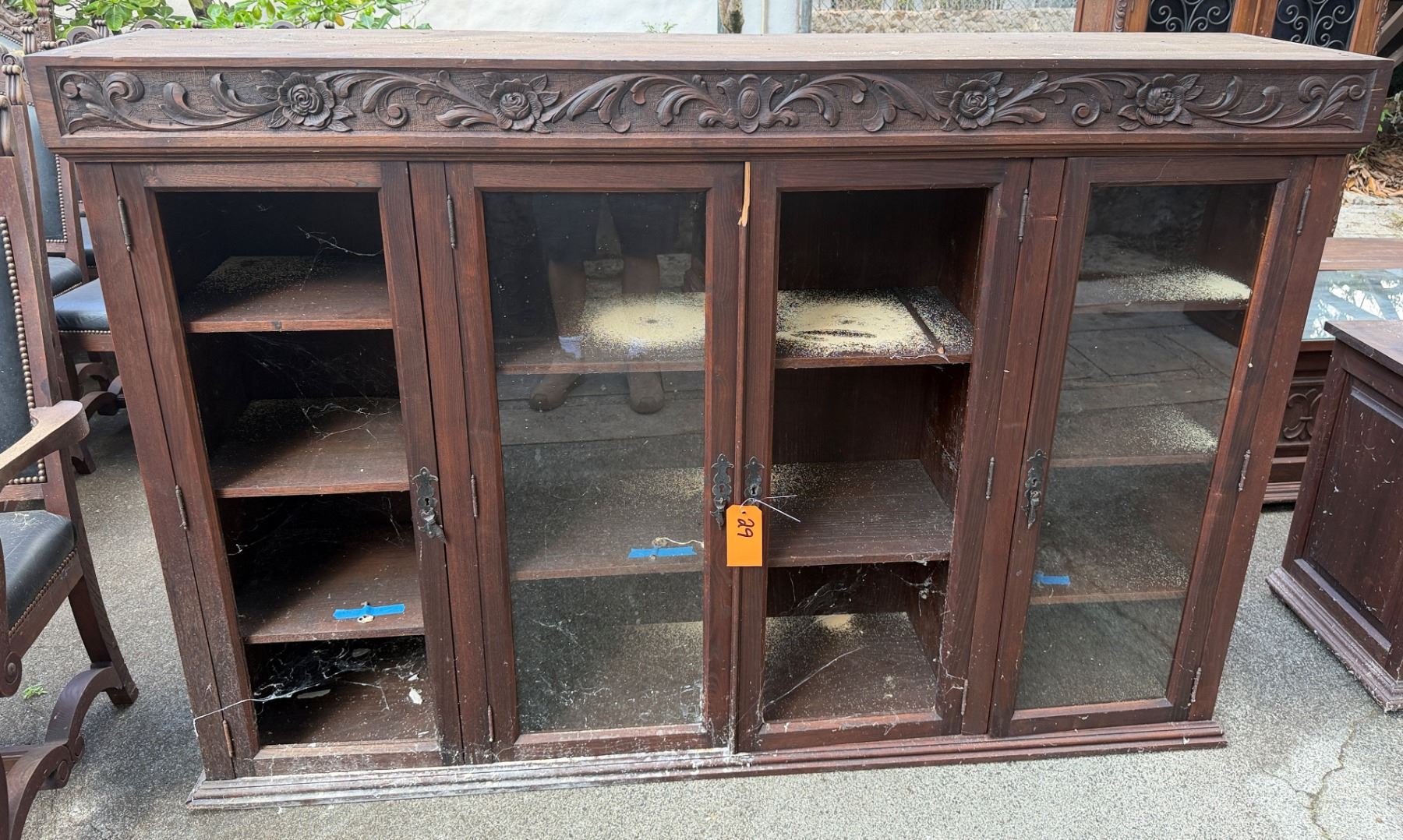 Carved Wooden Hutch Cabinet w/ Glass Doors & Inside Shelving 76" x 17" x 50"H