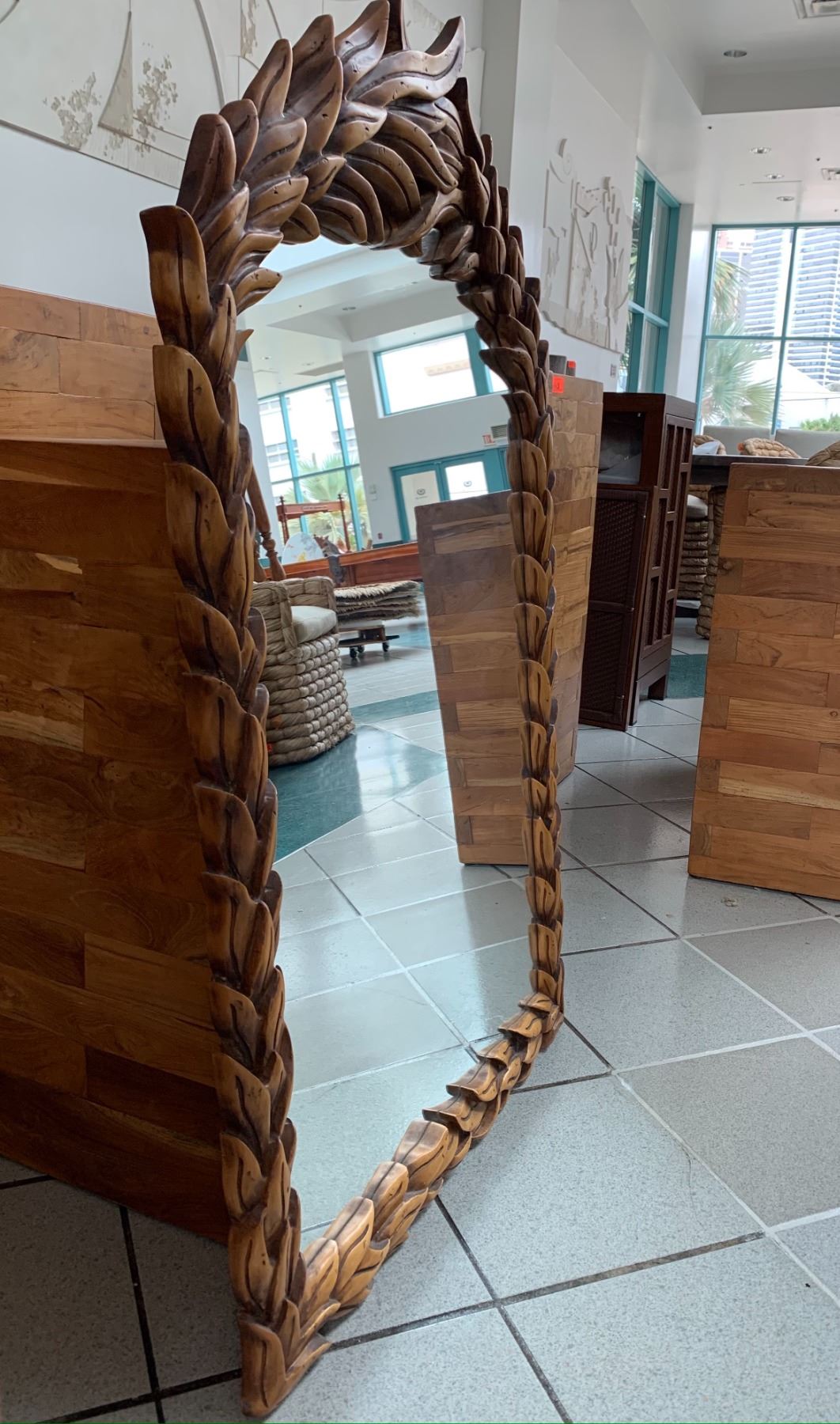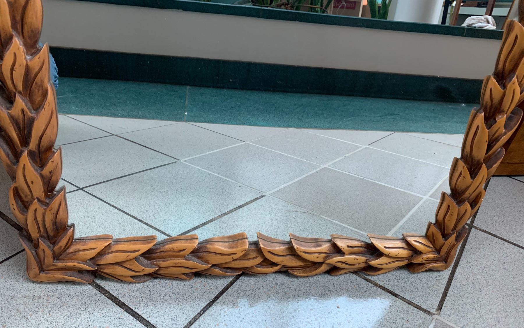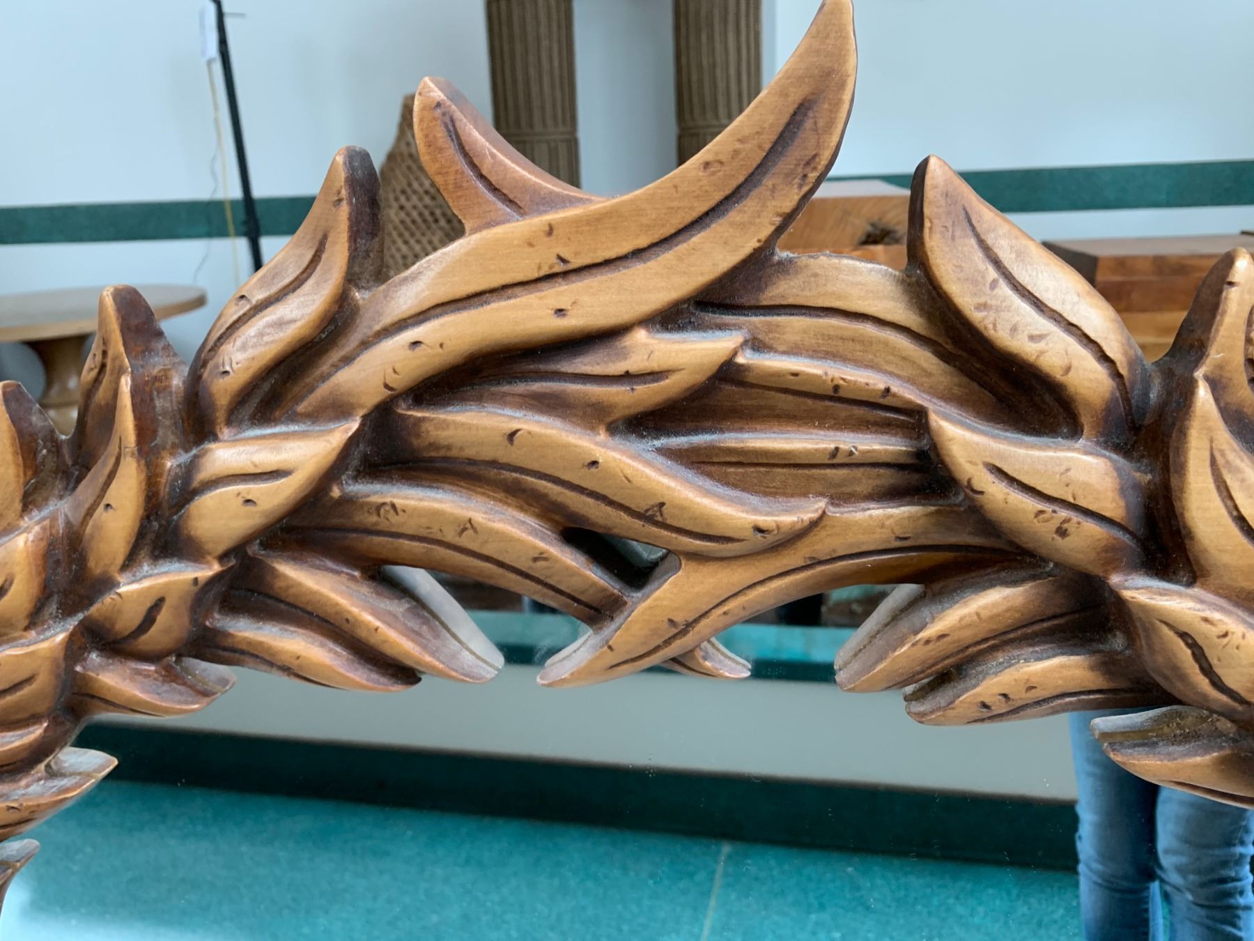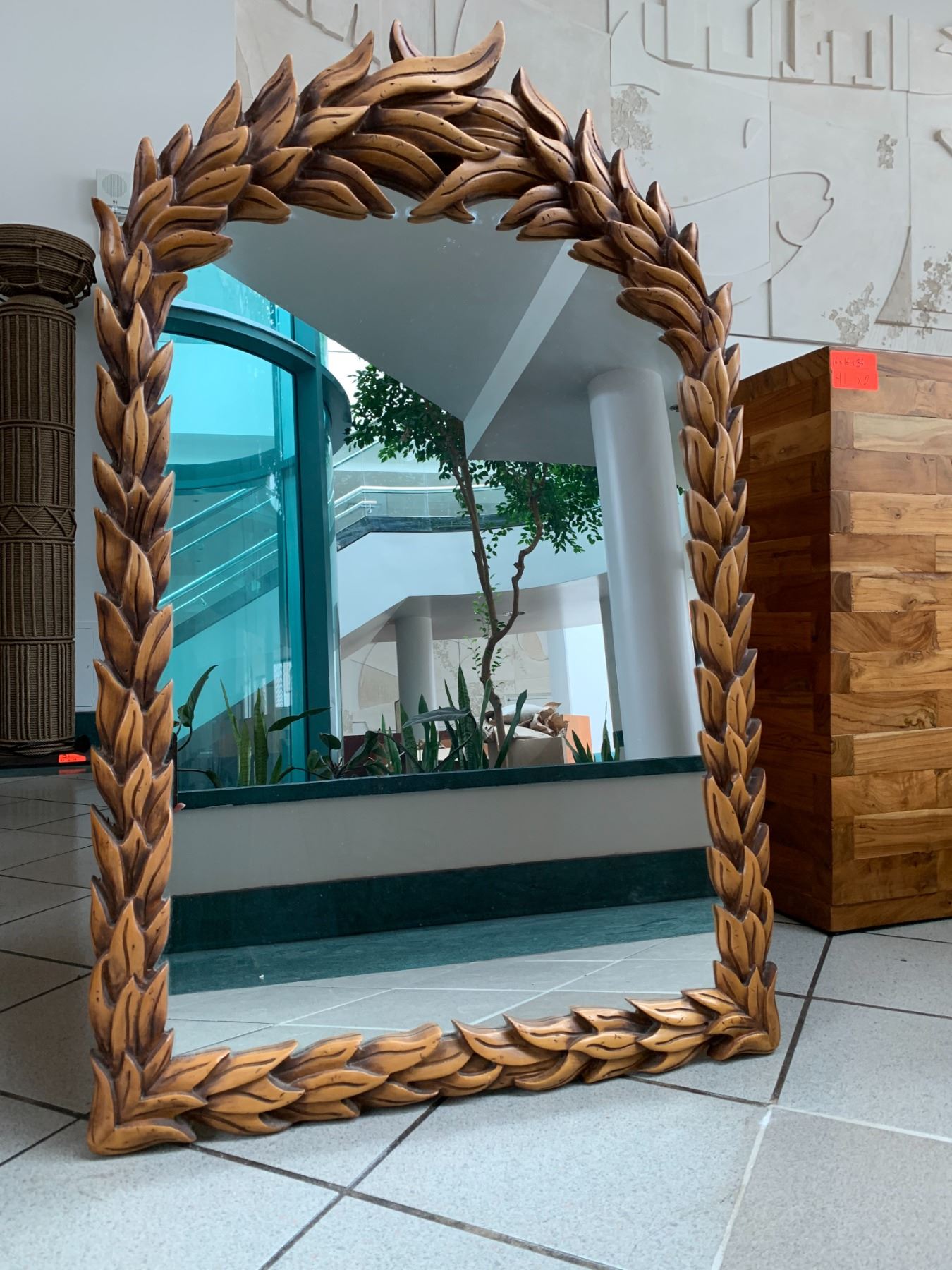 Carved Wooden Mirror, Leaf Pattern, 28.5" x 45.5"